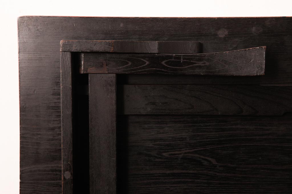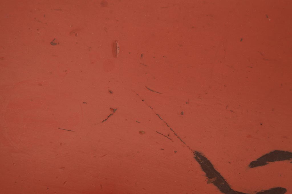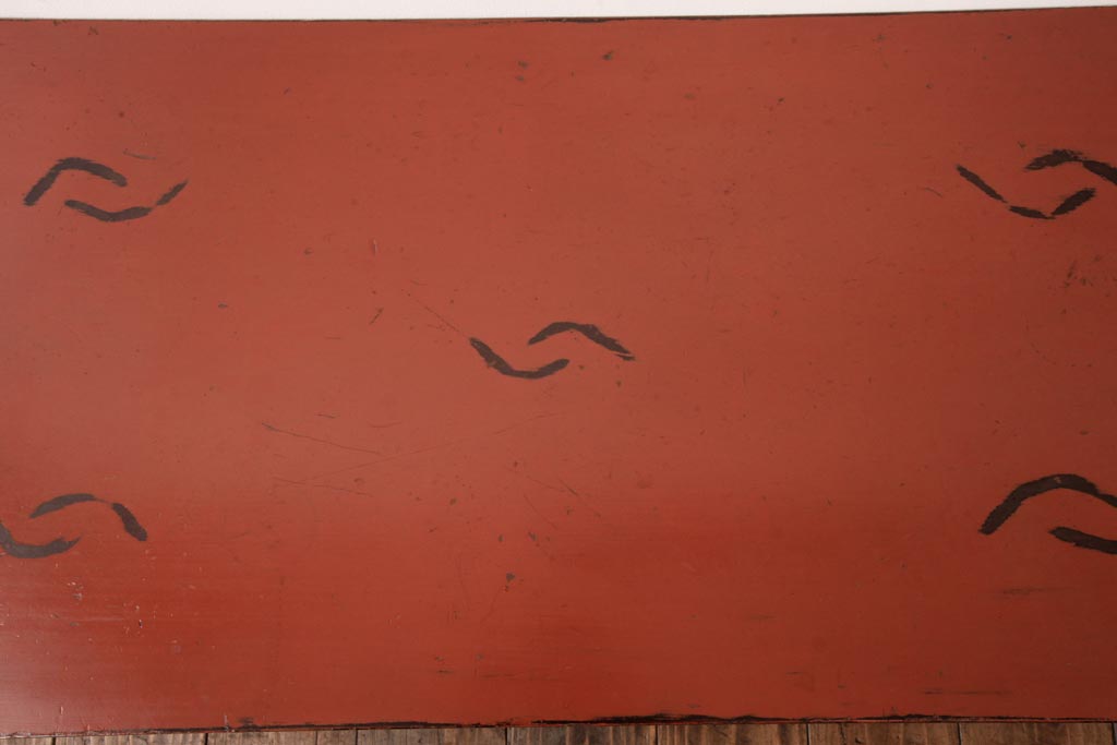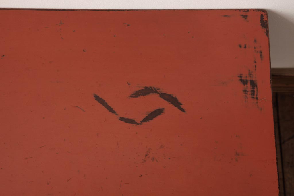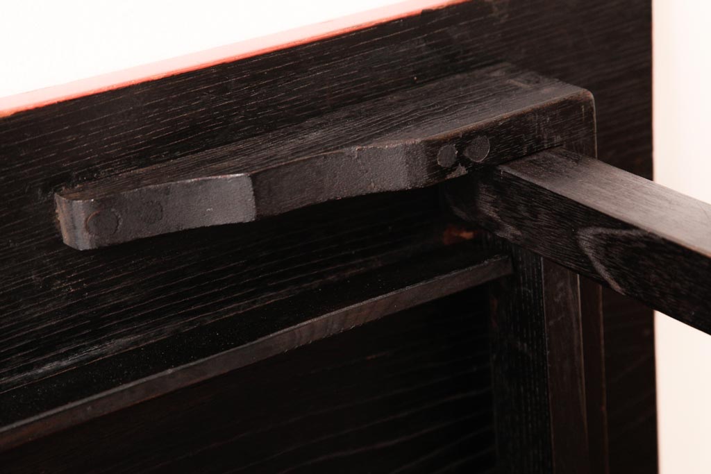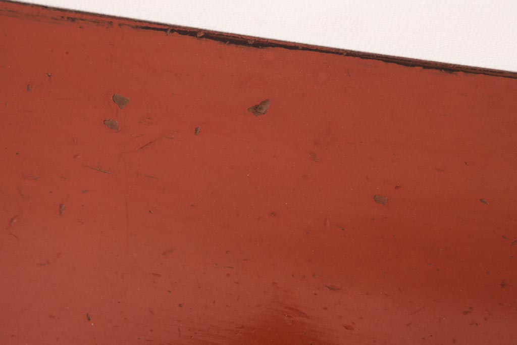 天板に黒漆の上に朱漆を重ねて模様を付けた
