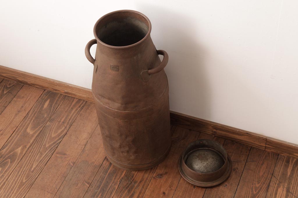アンティーク雑貨 昭和期 レトロシャビーな雰囲気がお洒落なミルク缶(牛乳缶、ディスプレイ)