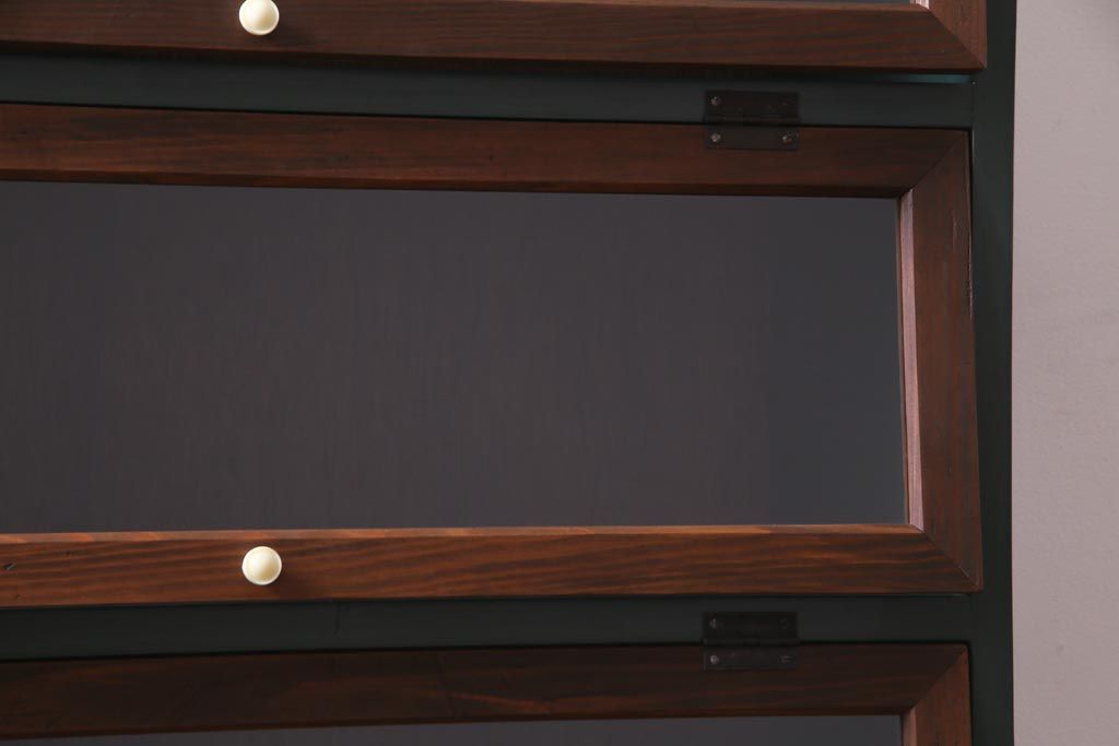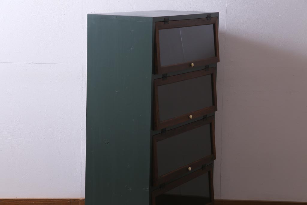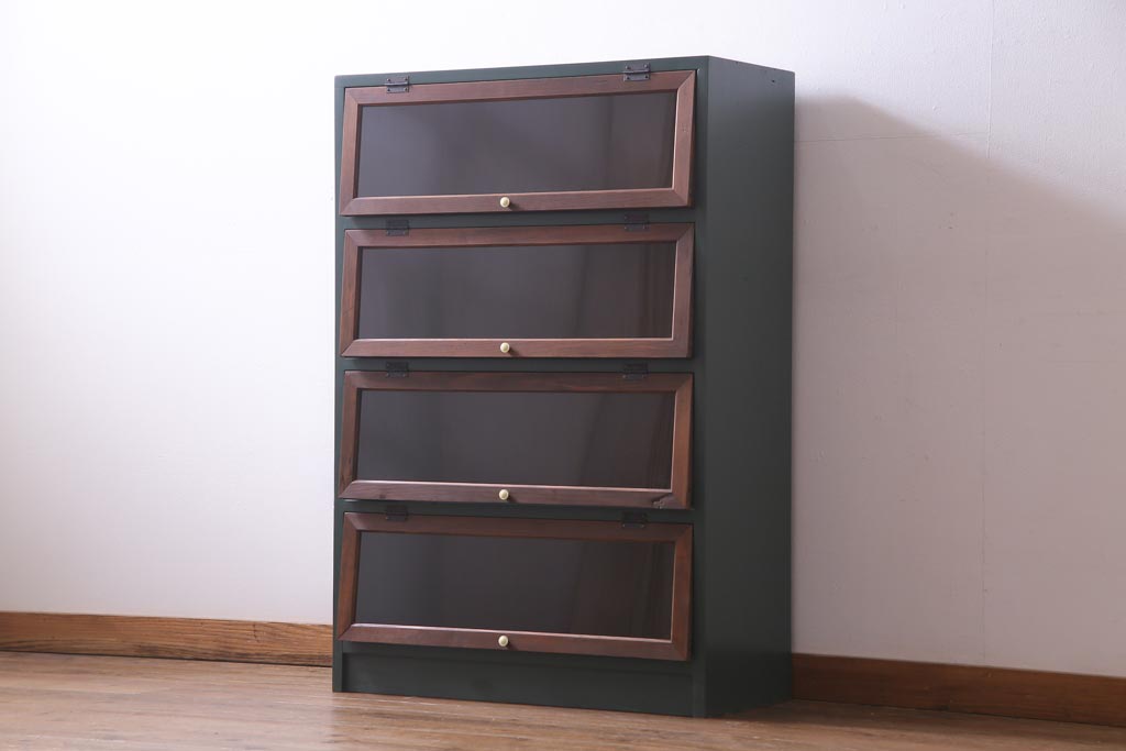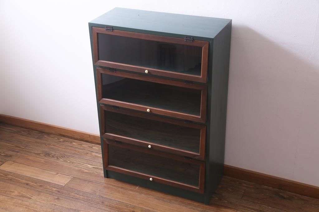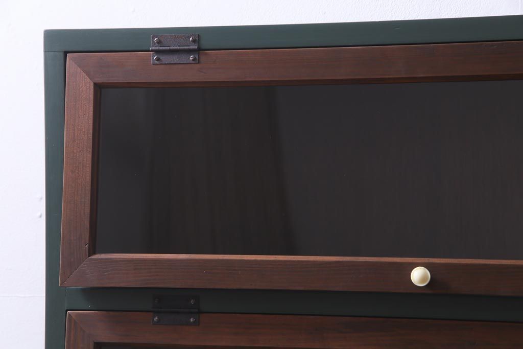 ラフジュ工房オリジナル ペイント バイカラーのガラス入りパタパタ扉の収納棚(4段タイプ)(戸棚、下駄箱)
