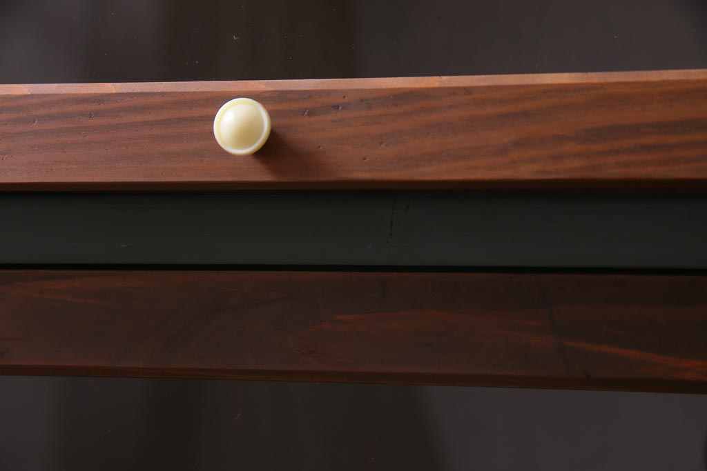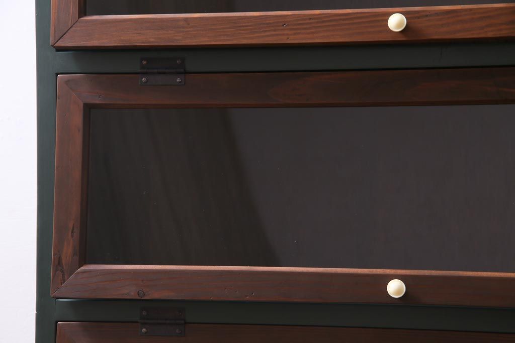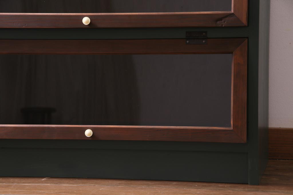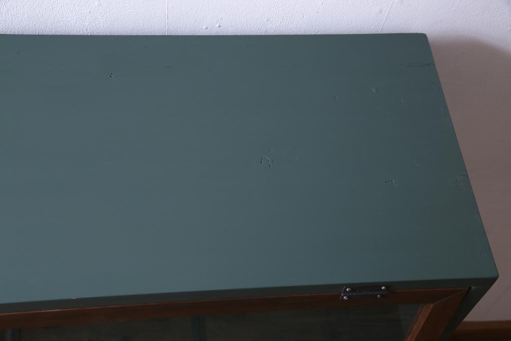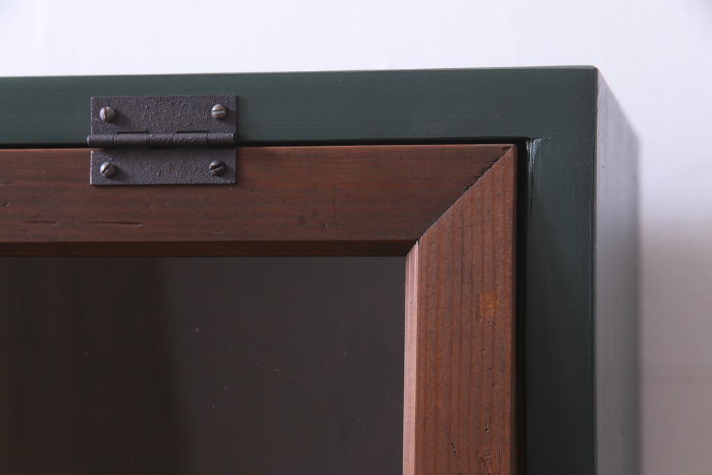ラフジュ工房オリジナル ペイント バイカラーのガラス入りパタパタ扉の収納棚(4段タイプ)(戸棚、下駄箱)です。