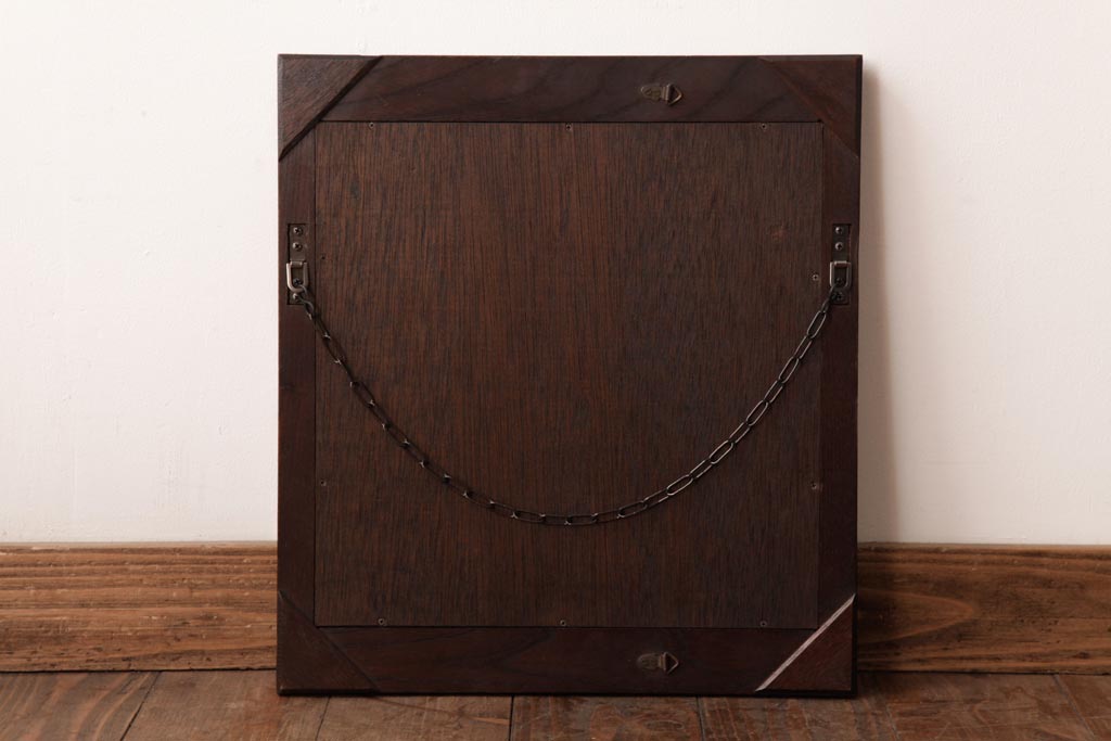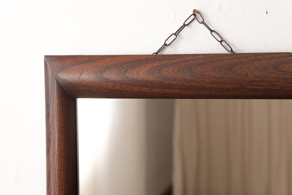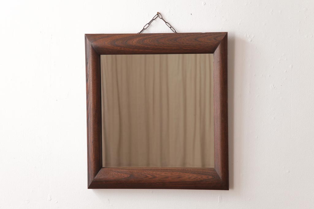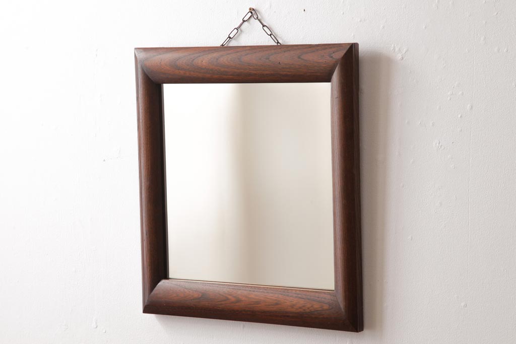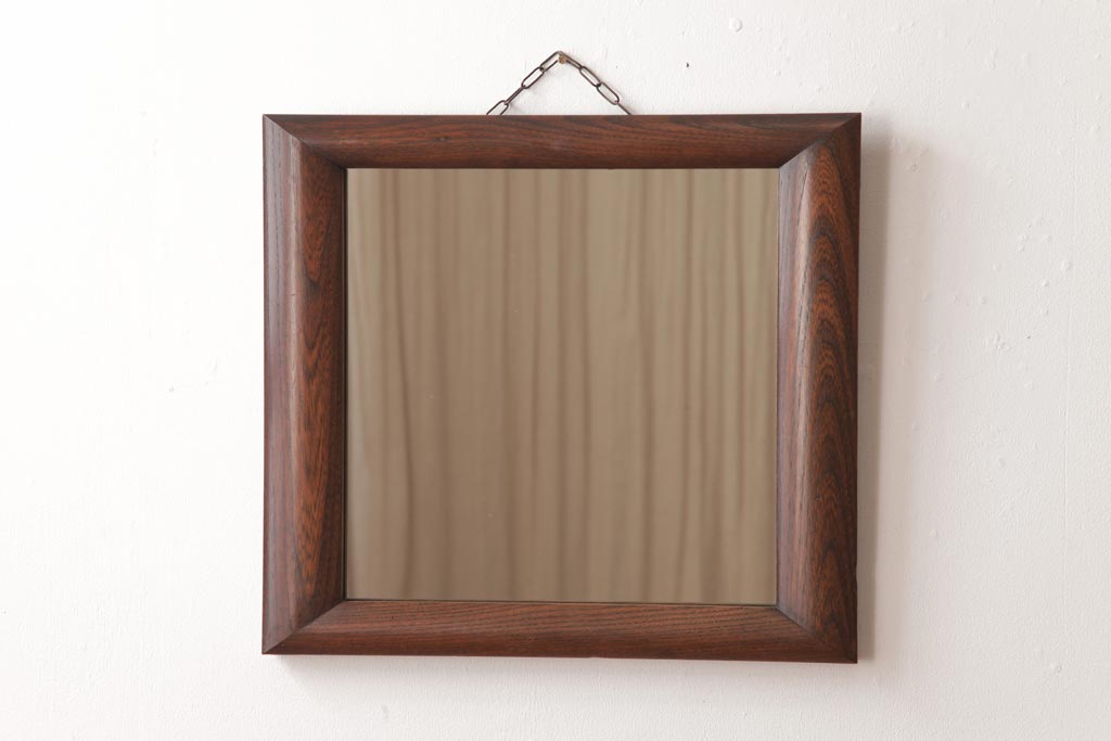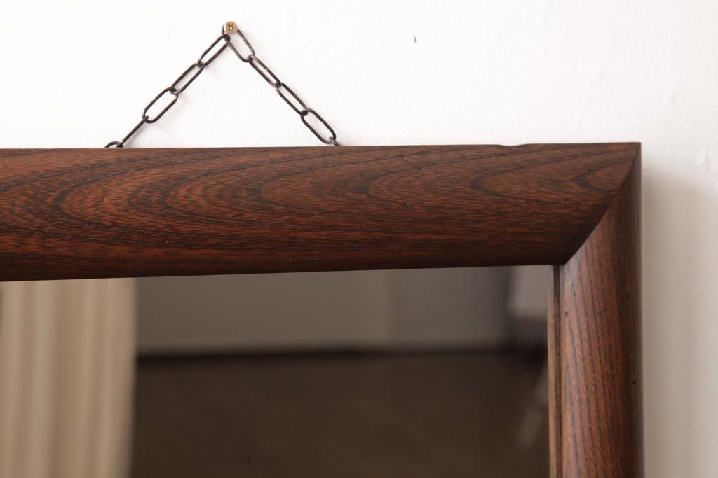 ラフジュ工房> 鏡> 壁掛け鏡 > アンティーク雑貨 ビンテージ シンプルで味のあるケヤキ材枠のウォールミラー(壁掛け鏡)
