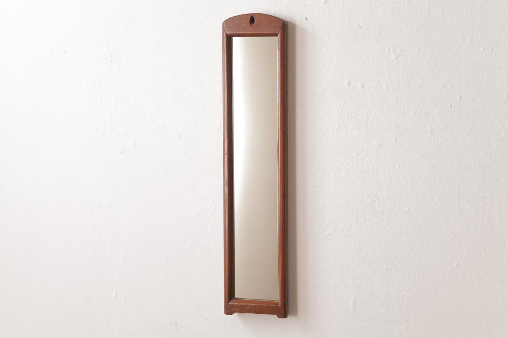 アンティーク雑貨 和製アンティーク 木製枠がレトロな細身のウォールミラー(壁掛け鏡)