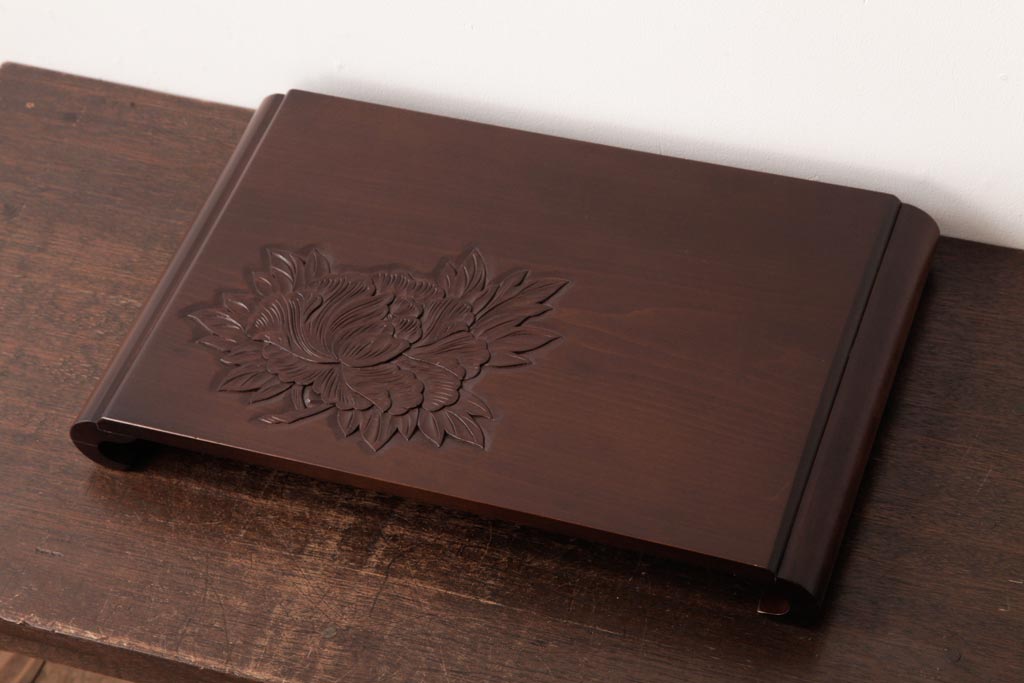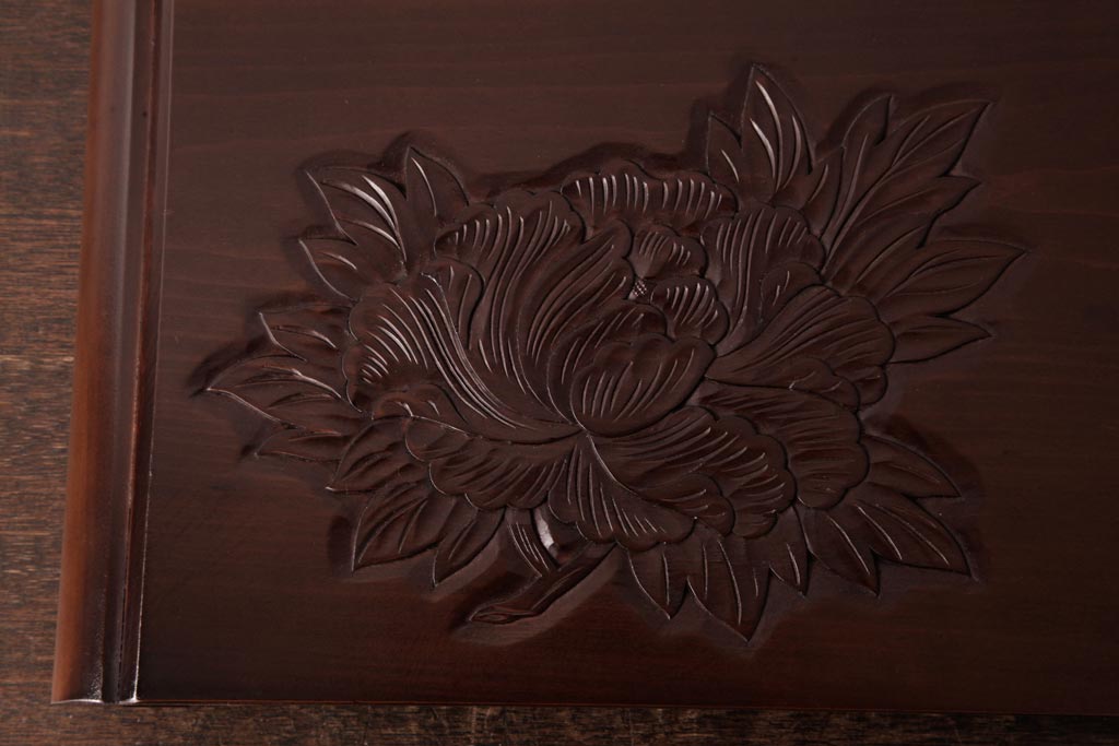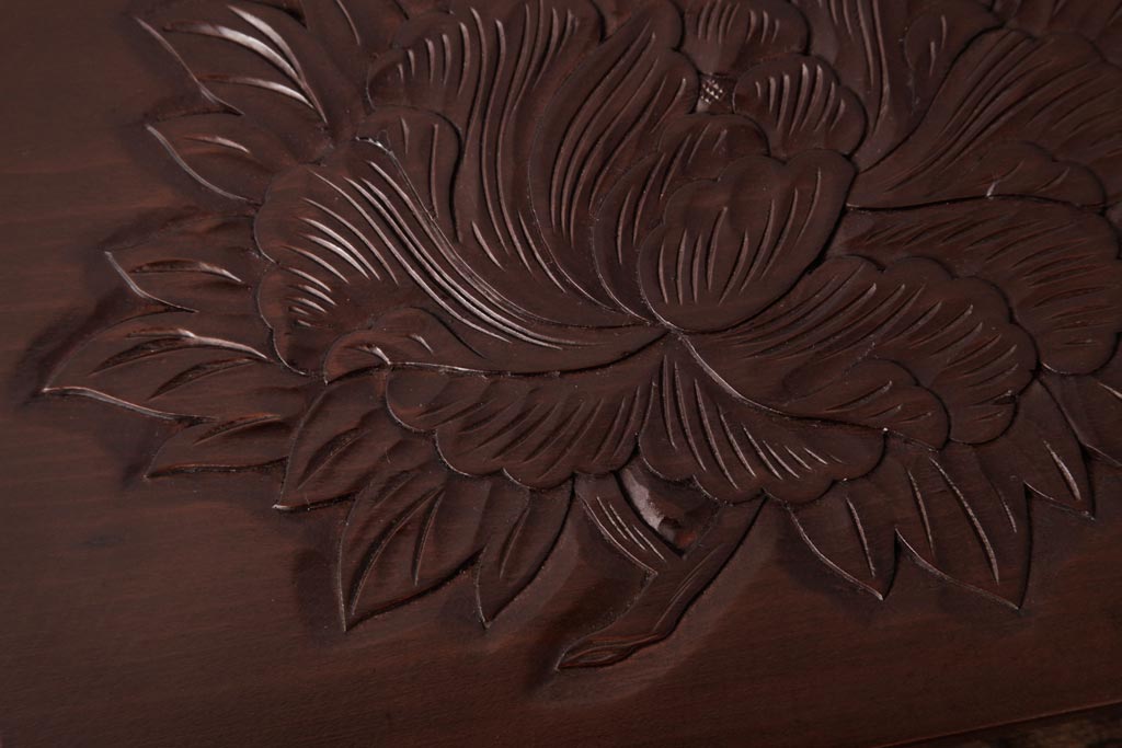 民芸家具 > アンティーク雑貨 中古 伝統工芸 日光彫り 上品な雰囲気を醸し出すデザインの花台(飾り台)
