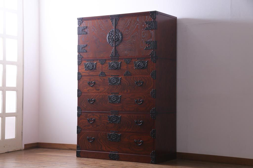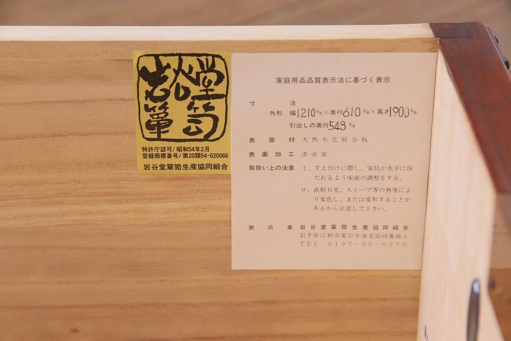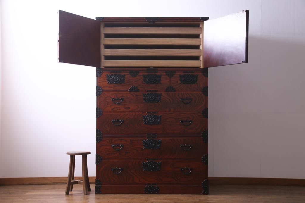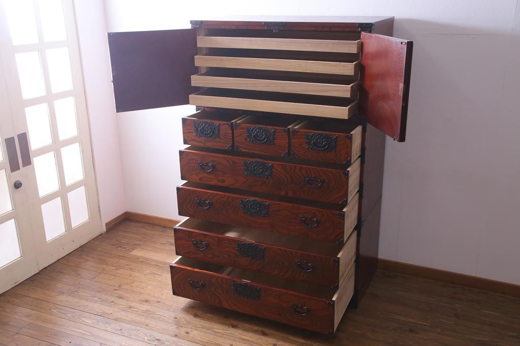 中古 伝統工芸 岩谷堂箪笥 漆塗り 和の雰囲気を盛り上げる特注の名工整理タンス(衣装箪笥)です。