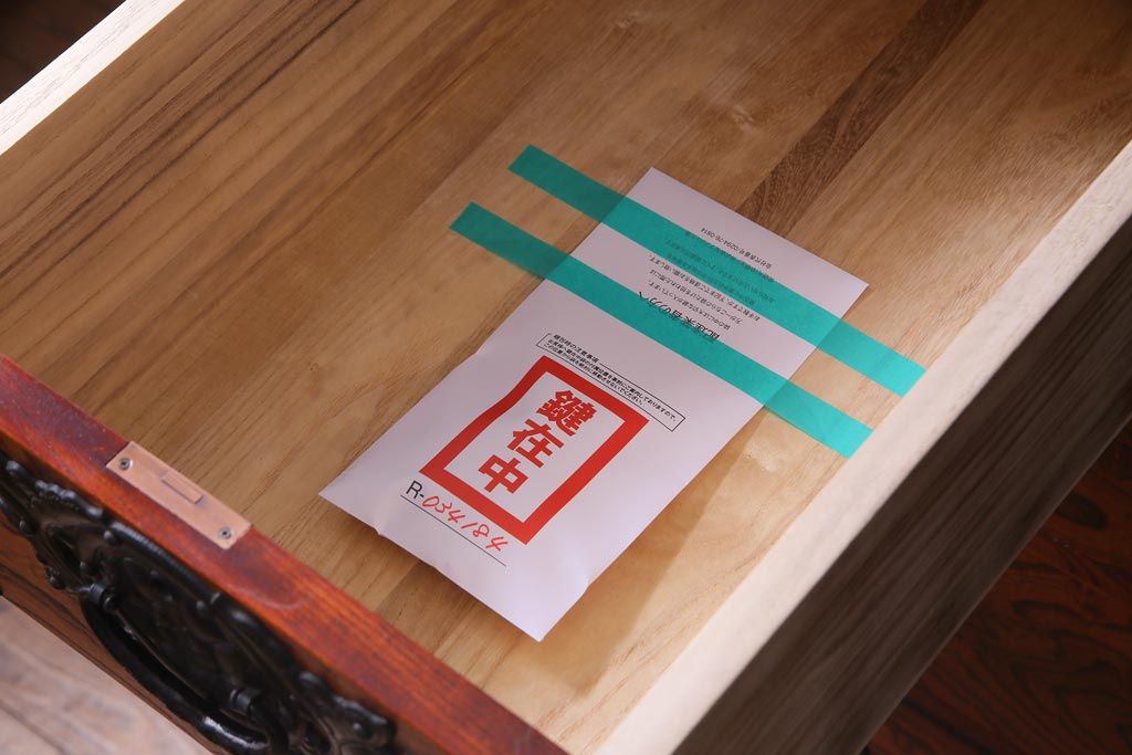鍵は付属します。画像にありますように、袋に入れお付けします。スムーズに動くように調整していますが、あくまでも古いものや中古品ですので、長期の使用保証は出来かねます。ご購入後不具合が発生した場合は、当店でサポートさせていただきますので、お気軽にご相談くださいませ。