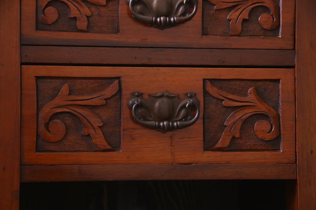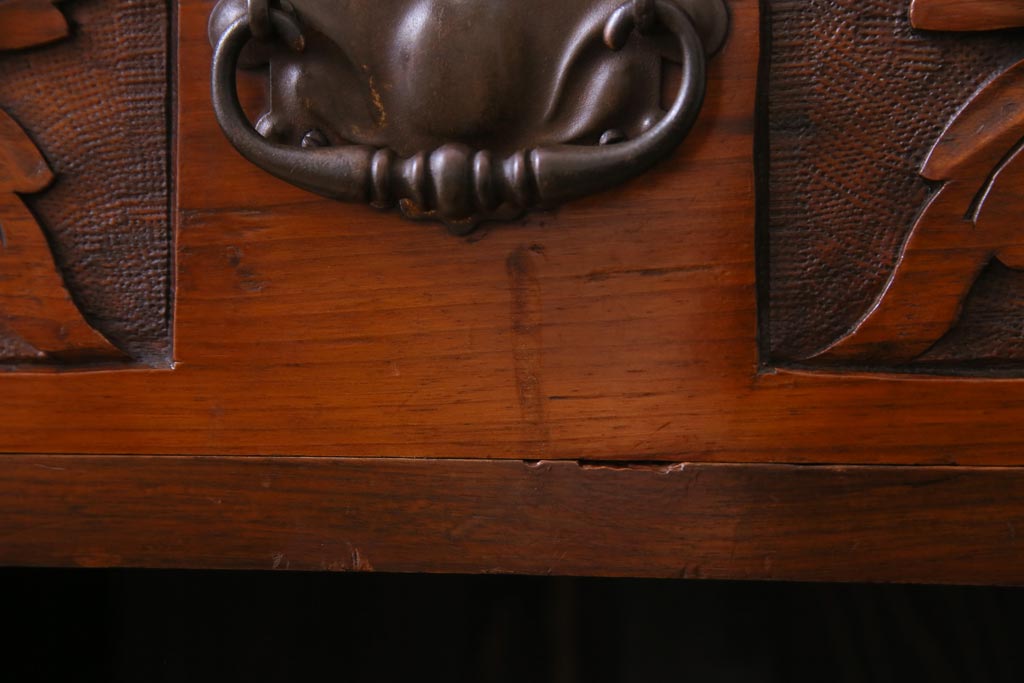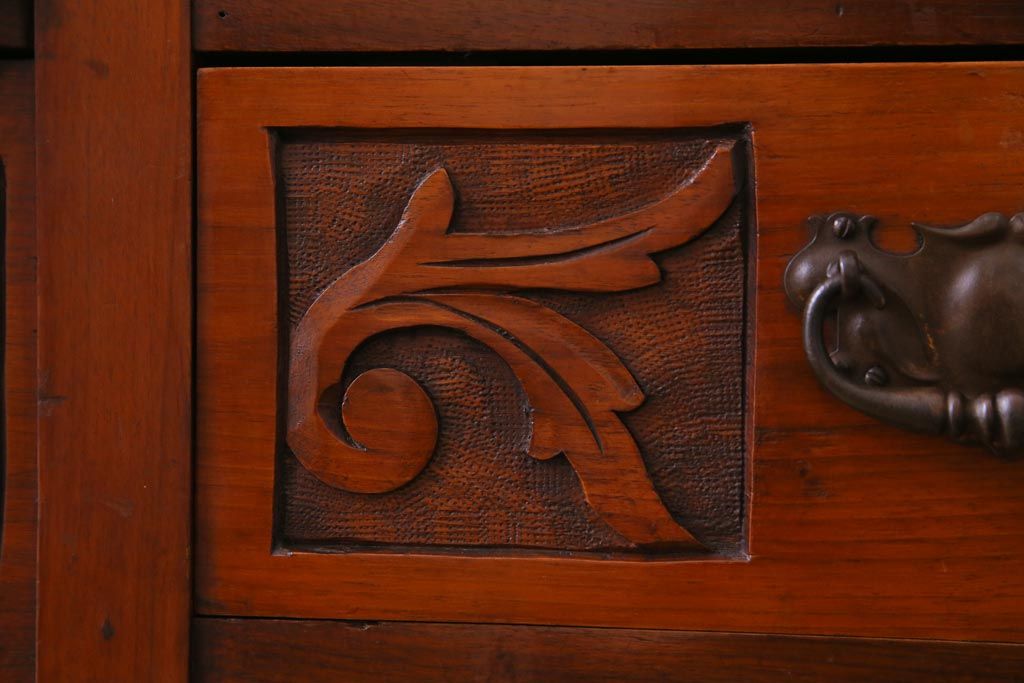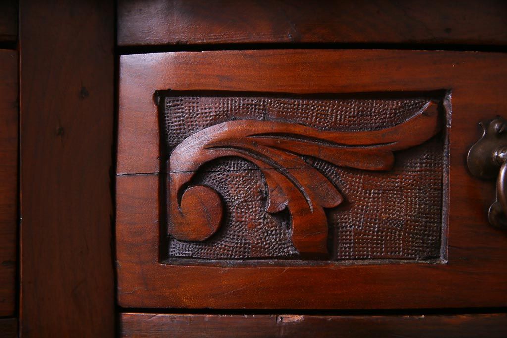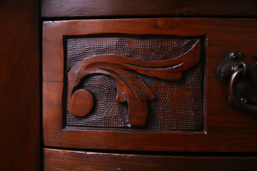 艶をおびた褐色と細かな彫りの装飾が