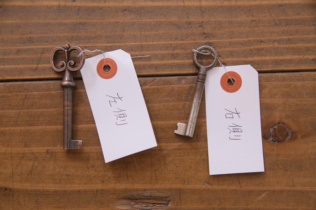 鍵は付属します。画像にありますように、袋に入れお付けします。スムーズに動くように調整していますが、あくまでも古いものや中古品ですので、長期の使用保証は出来かねます。ご購入後不具合が発生した場合は、当店でサポートさせていただきますので、お気軽にご相談くださいませ。