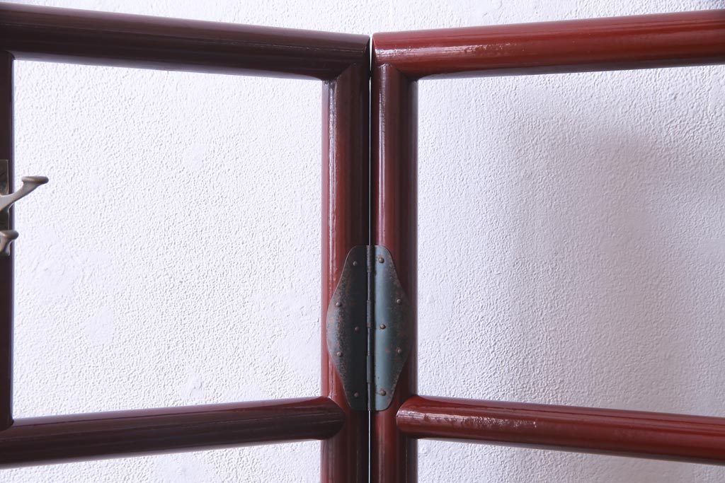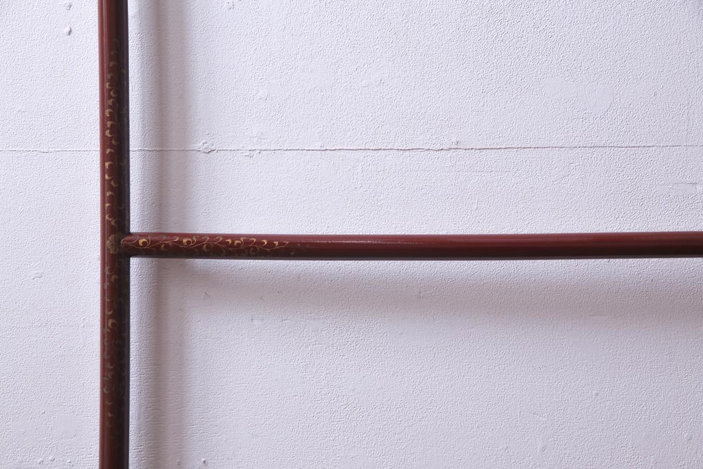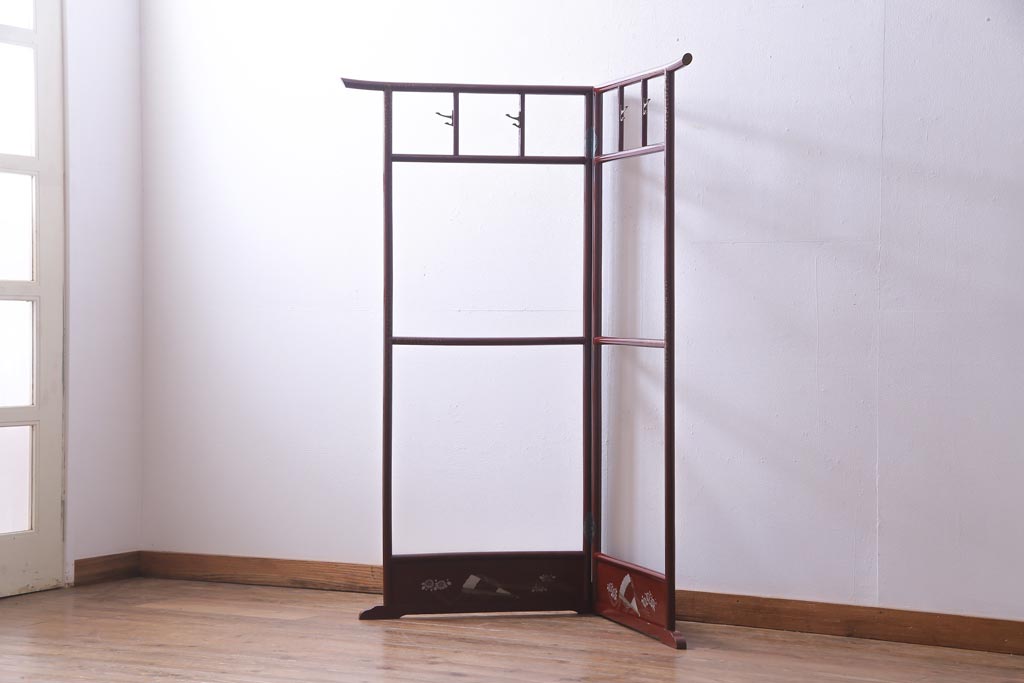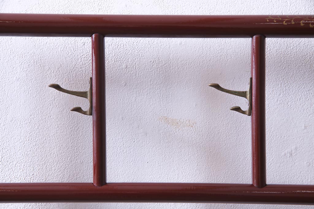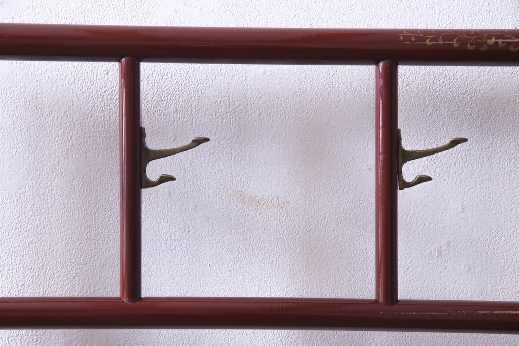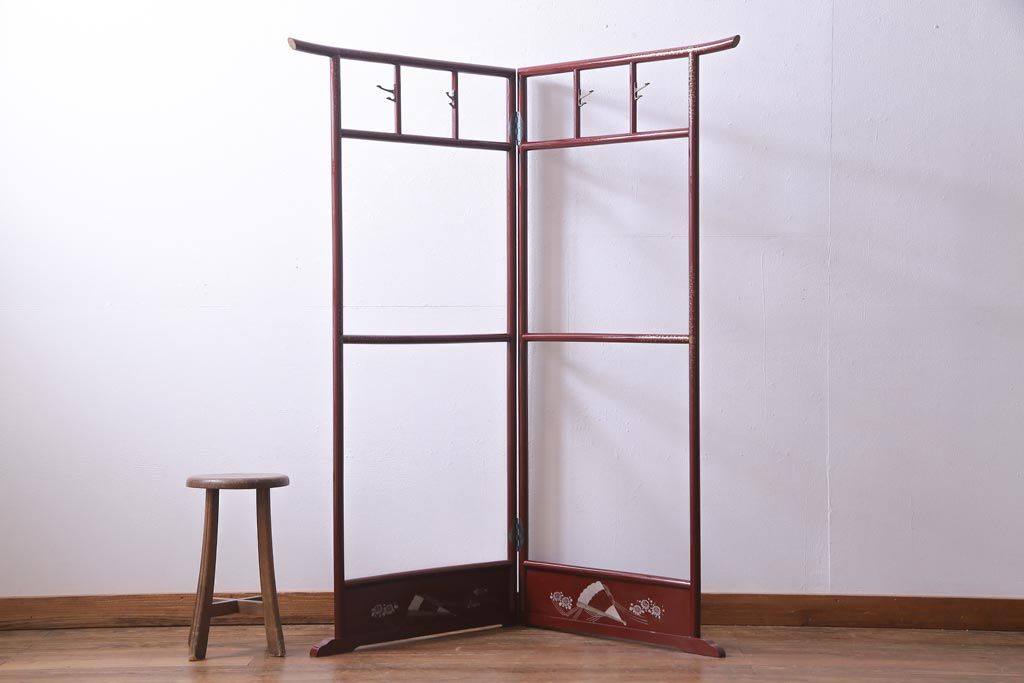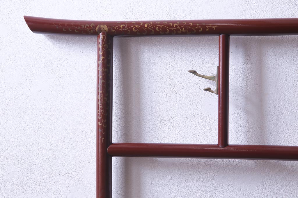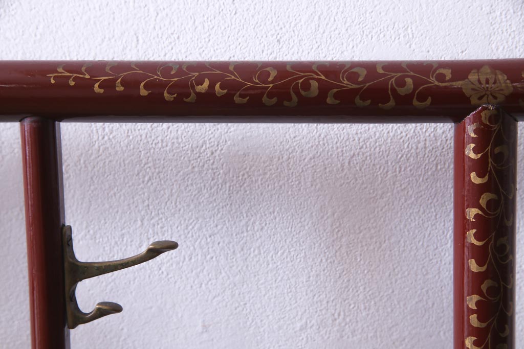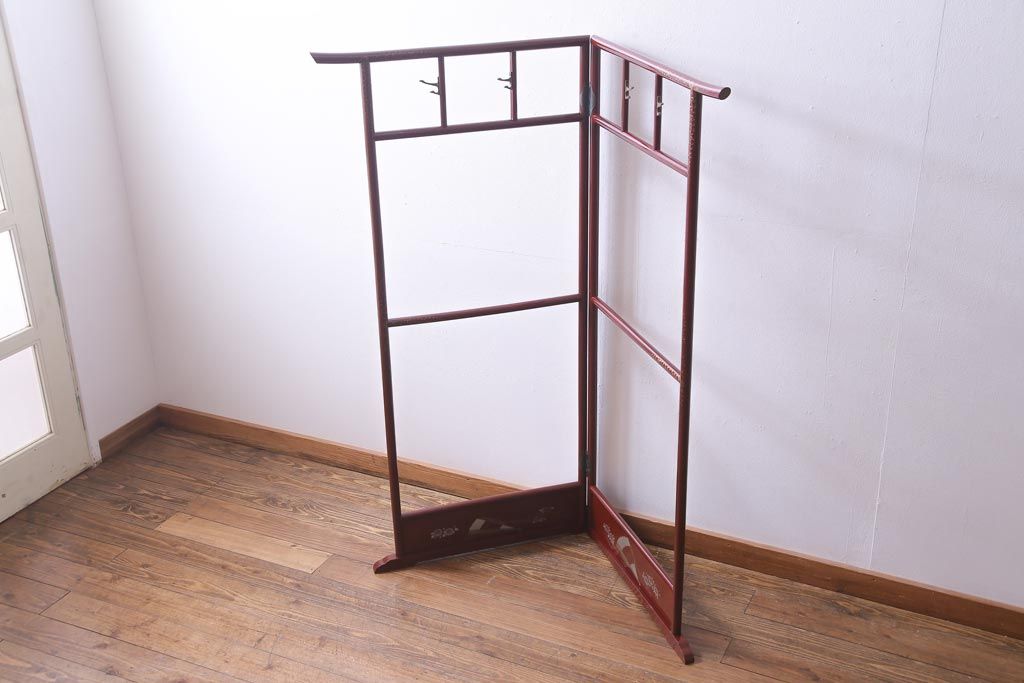 ラフジュ工房> ハンガーラック・衣桁> 衣桁 > アンティーク雑貨 昭和中期 漆塗り フック付き 扇の模様が和の雰囲気を引き立てる二つ折り衣桁