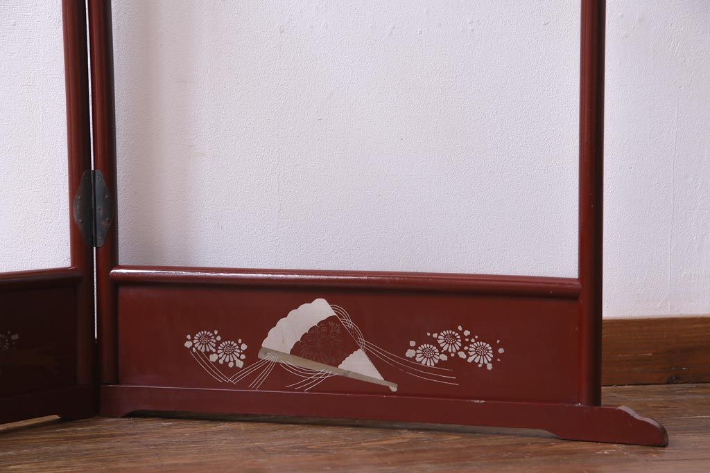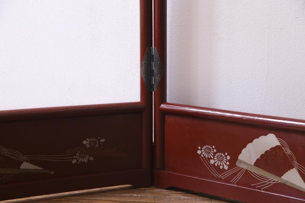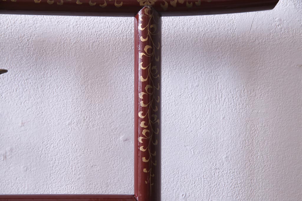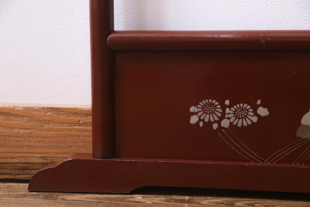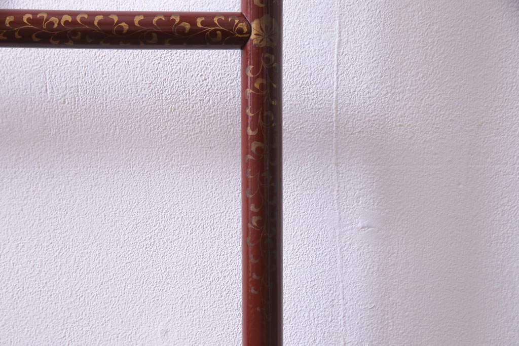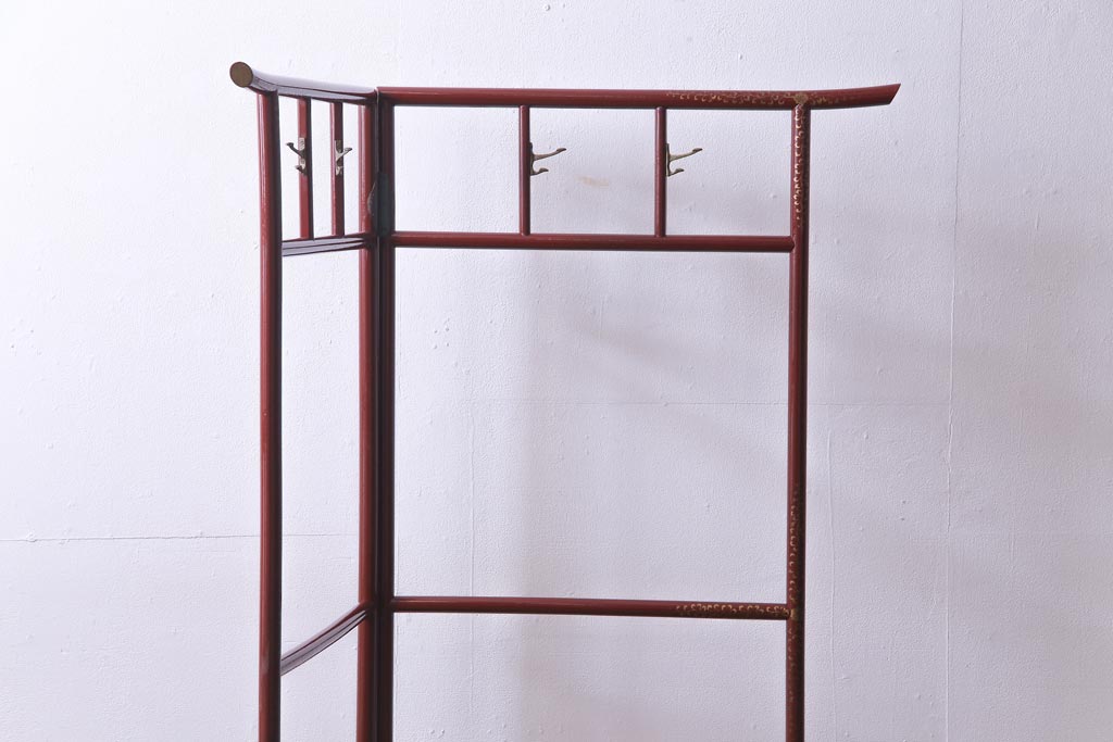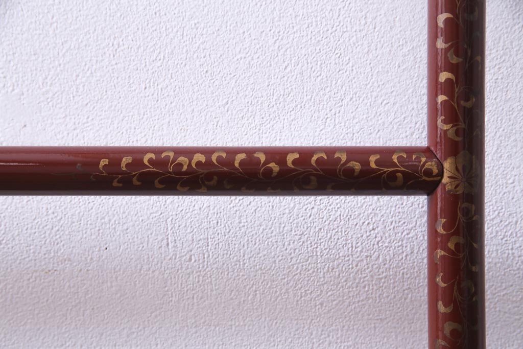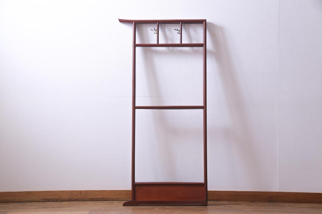 ラフジュ工房> ハンガーラック・衣桁> 衣桁 > アンティーク雑貨 昭和中期 漆塗り フック付き 扇の模様が和の雰囲気を引き立てる二つ折り衣桁