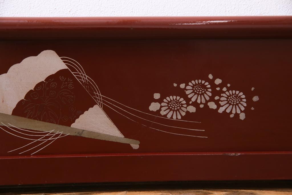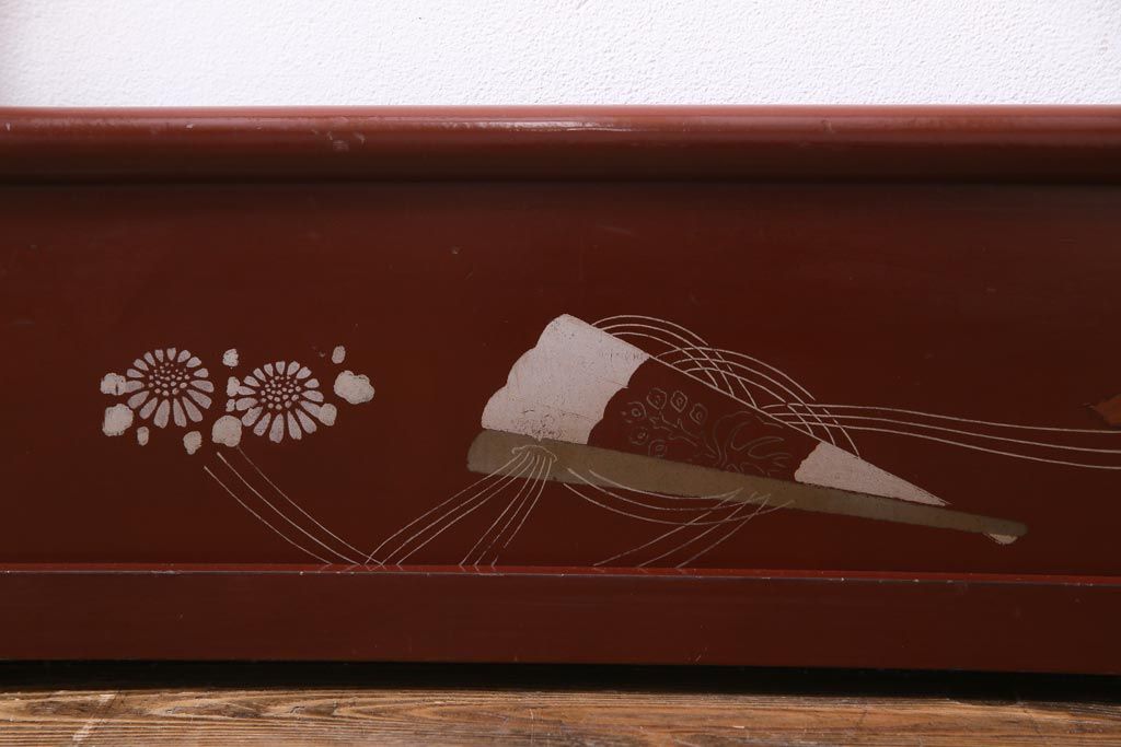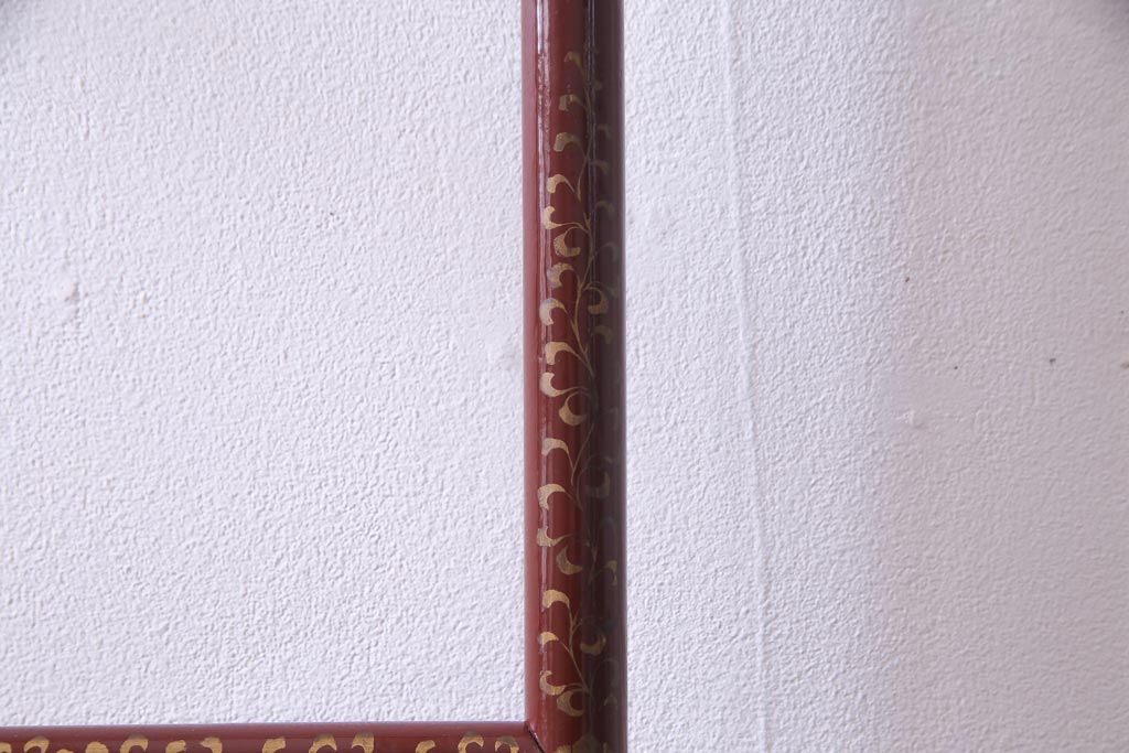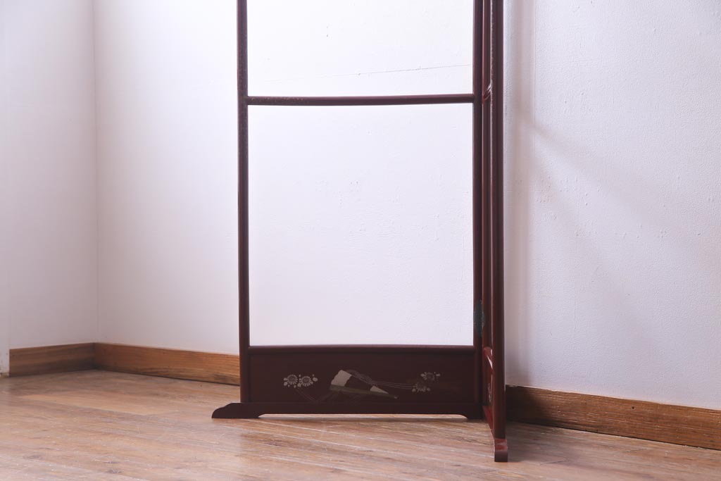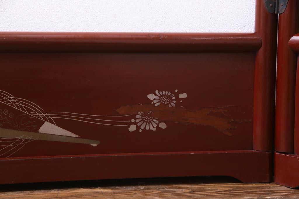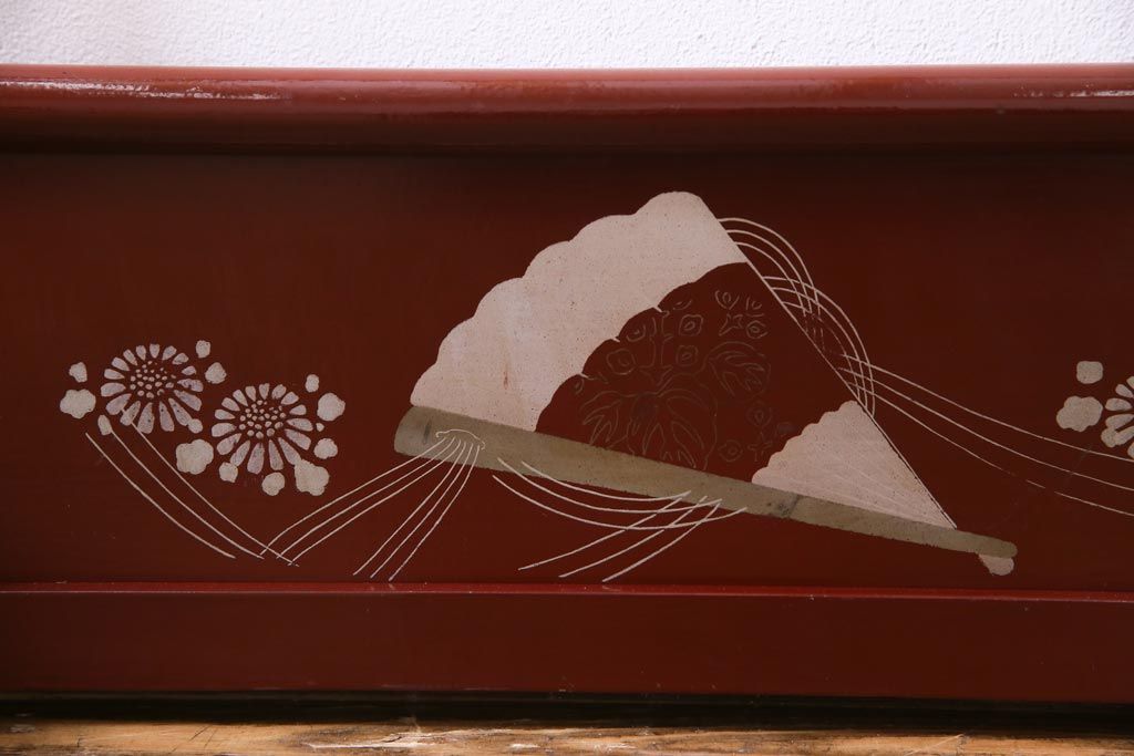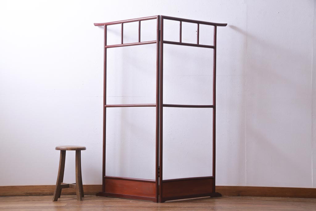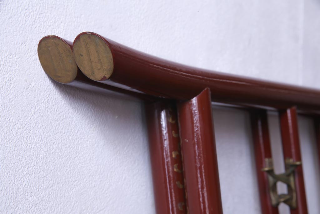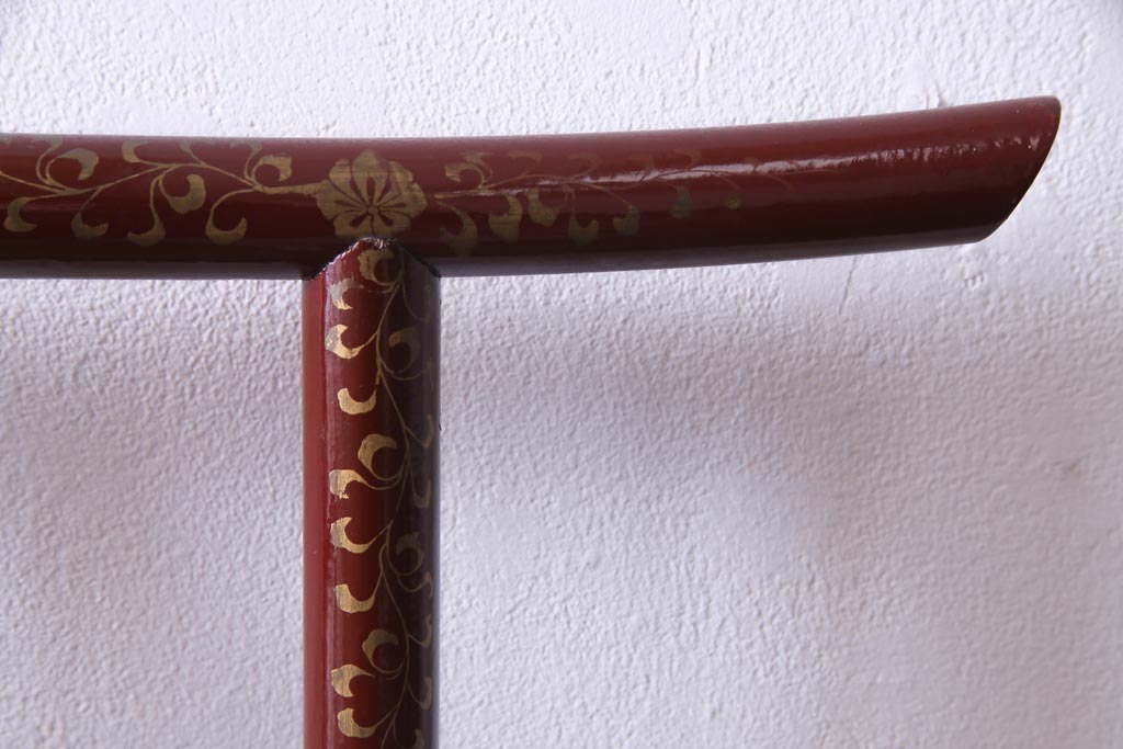 ラフジュ工房> ハンガーラック・衣桁> 衣桁 > アンティーク雑貨 昭和中期 漆塗り フック付き 扇の模様が和の雰囲気を引き立てる二つ折り衣桁