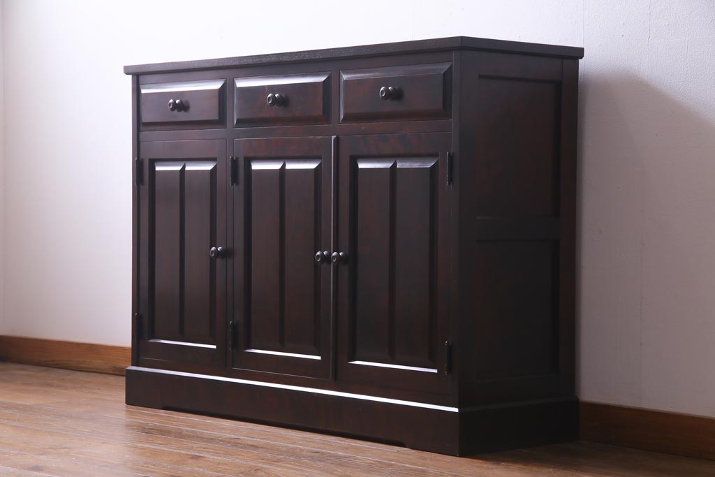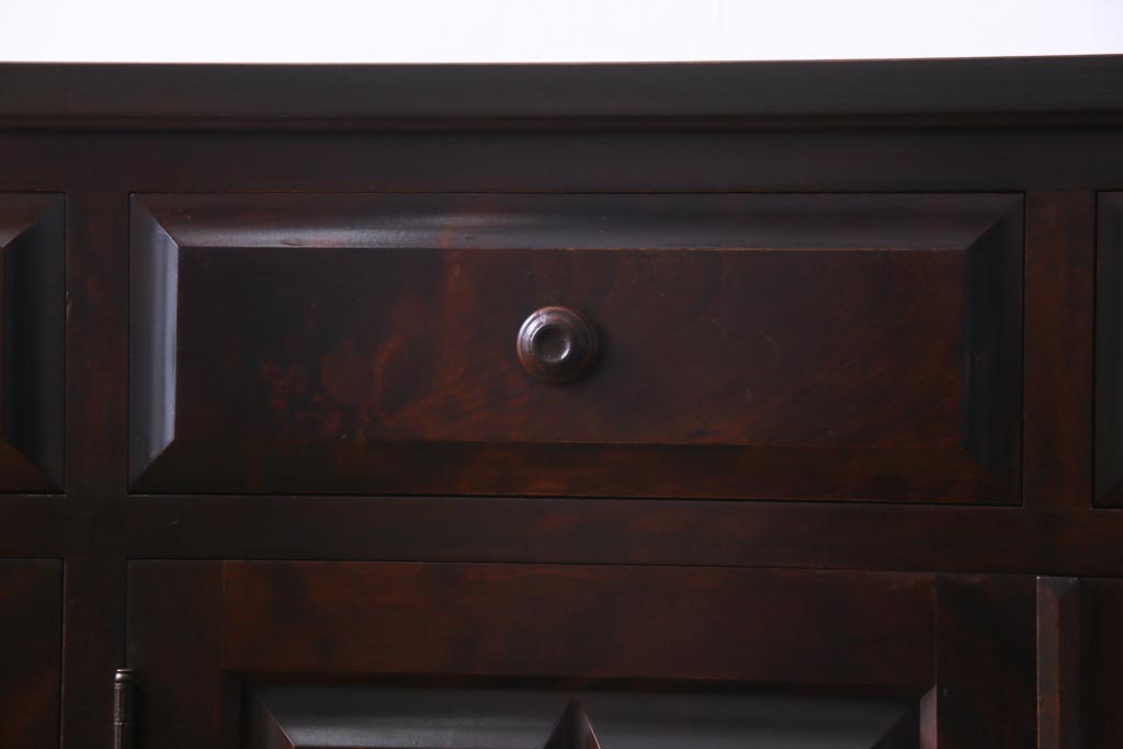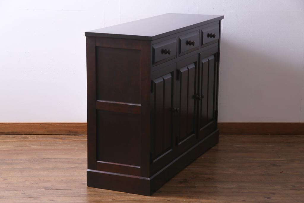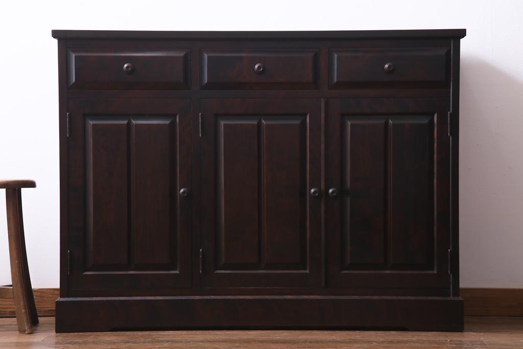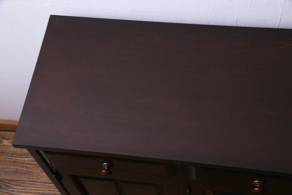 民芸家具 > 中古 北海道民芸家具 天板樺無垢材 使いやすいサイズへと生まれ変わったシックなリメイクサイドボード(食器棚、収納棚)(1)