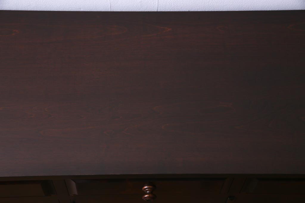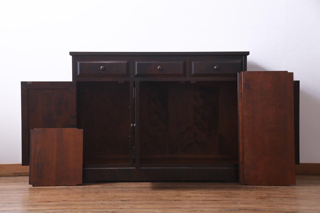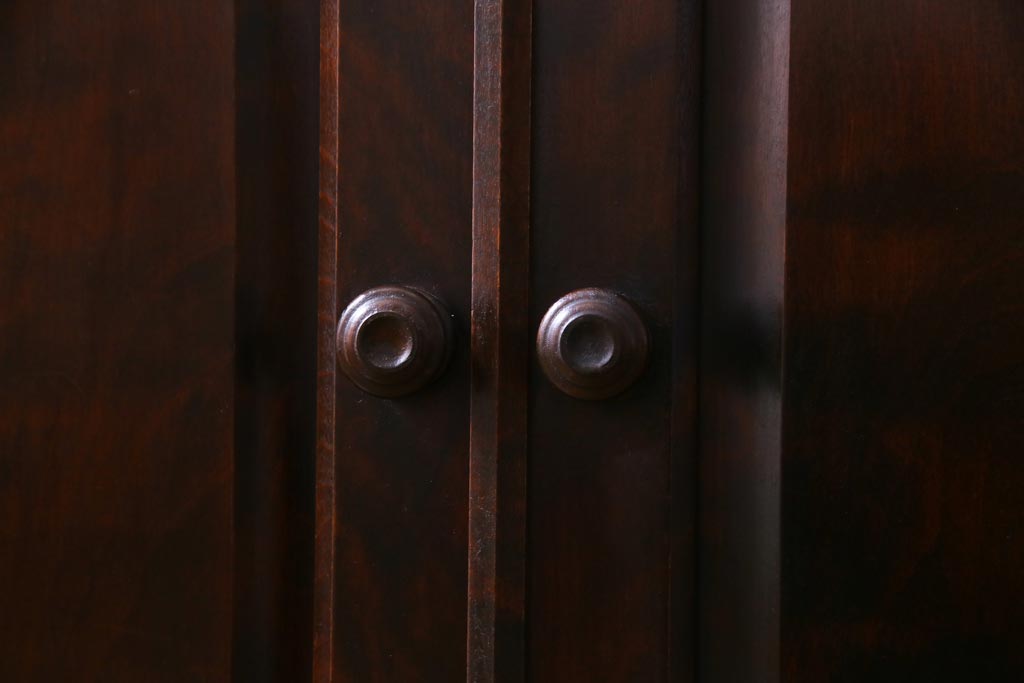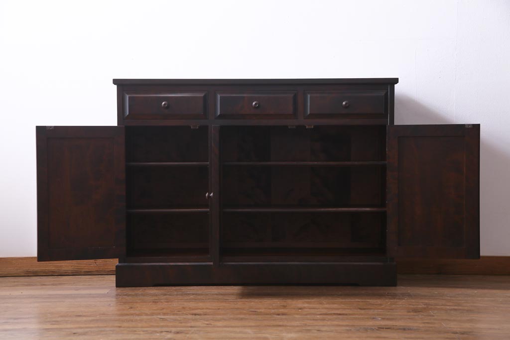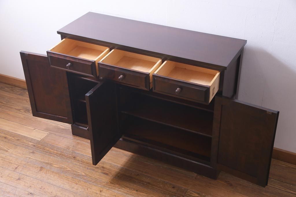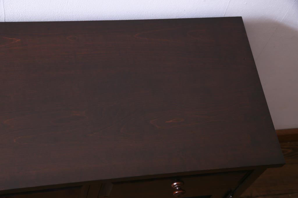 民芸家具 > 中古 北海道民芸家具 天板樺無垢材 使いやすいサイズへと生まれ変わったシックなリメイクサイドボード(食器棚、収納棚)(1)
