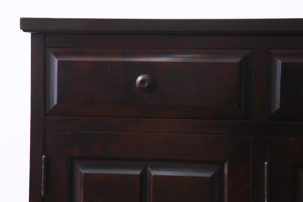 キャビネット・戸棚> サイドボード > 中古 北海道民芸家具 天板樺無垢材 使いやすいサイズへと生まれ変わったシックなリメイクサイドボード(食器棚、収納棚)(1)