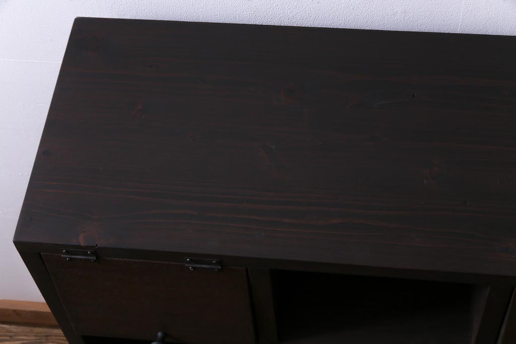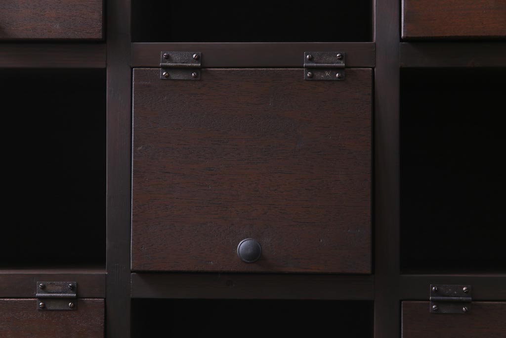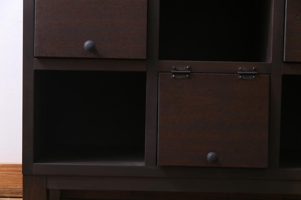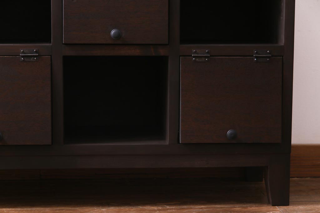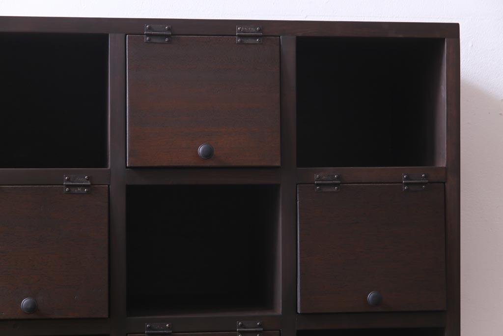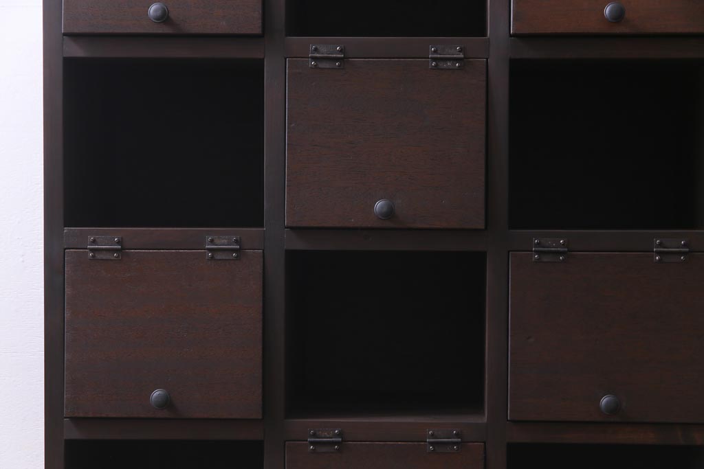 ラフジュ工房オリジナル 古材リメイク 4×4マス 互い違いのパタパタ扉がお洒落な脚付きマス目棚(収納棚)(1)