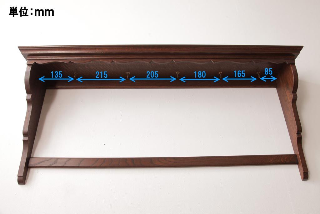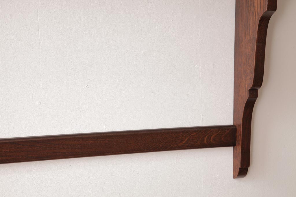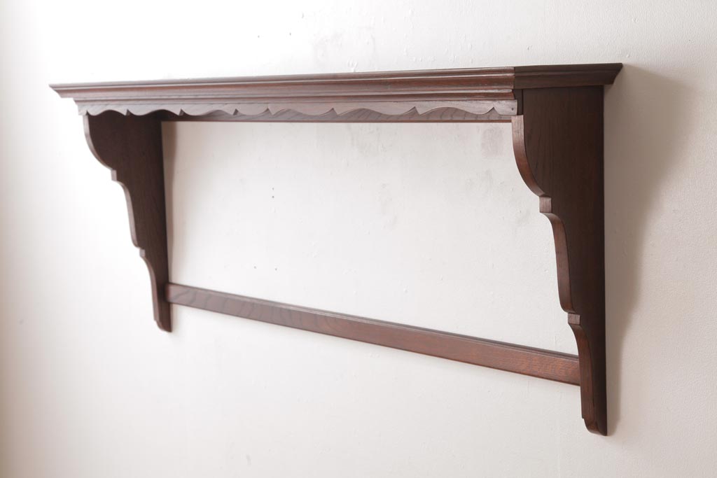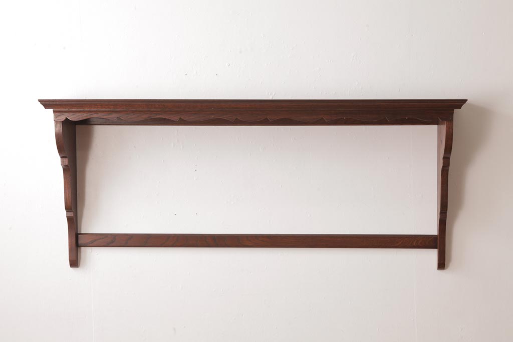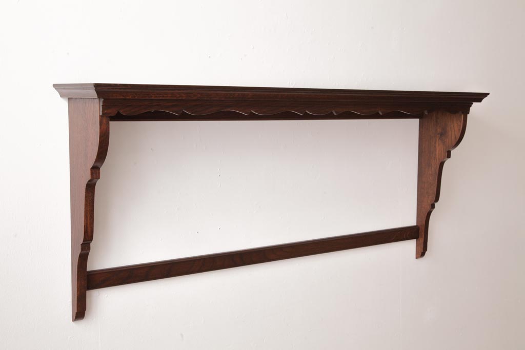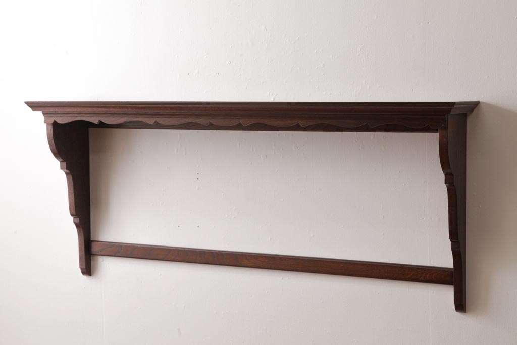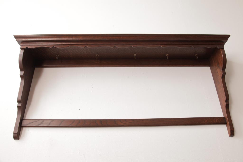 ラフジュ工房> オープンラック・シェルフ > アンティーク家具 イギリスアンティーク オーク材 上品なデザインのフック付きウォールシェルフ(ウォールラック、壁掛け棚)