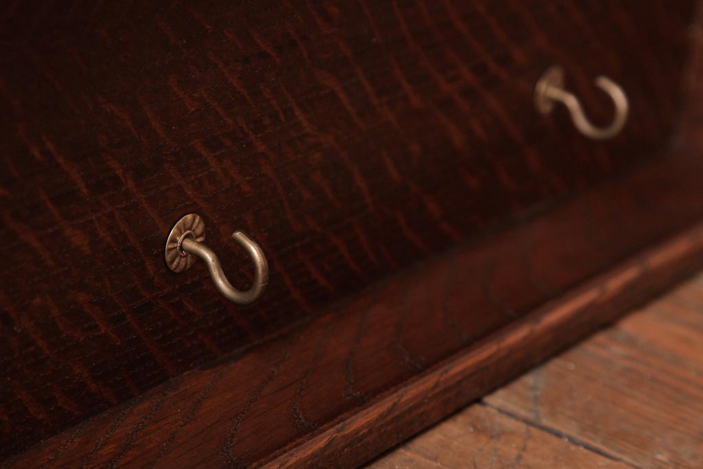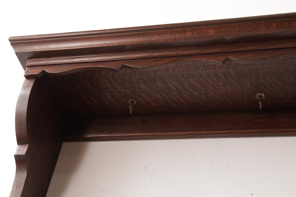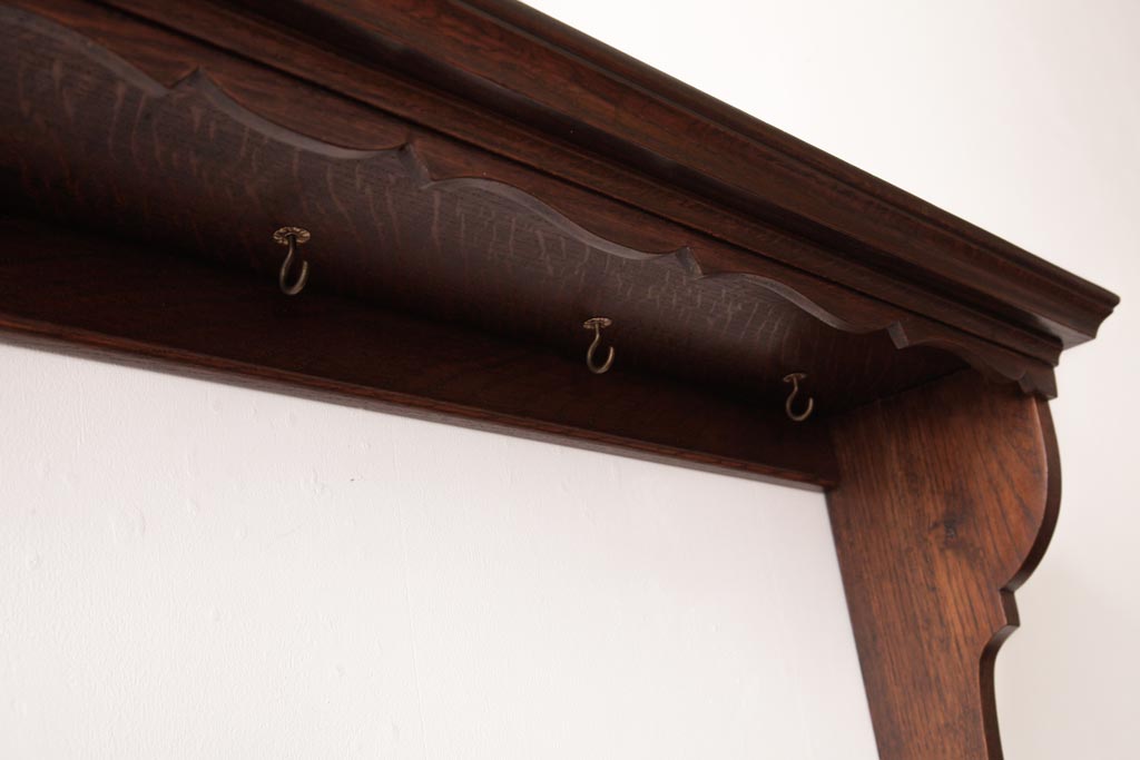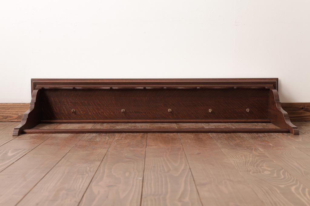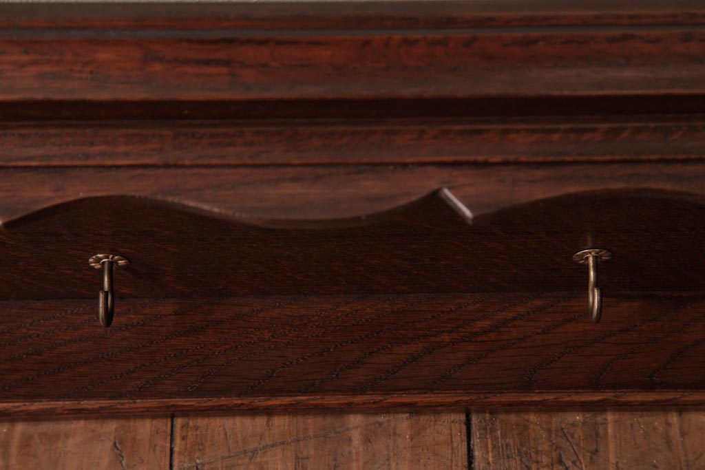 ラフジュ工房> オープンラック・シェルフ> ウォールシェルフ > アンティーク家具 イギリスアンティーク オーク材 上品なデザインのフック付きウォールシェルフ(ウォールラック、壁掛け棚)