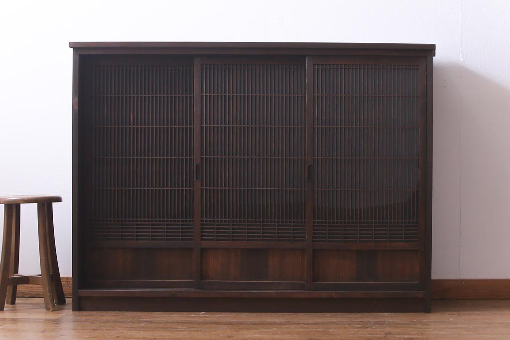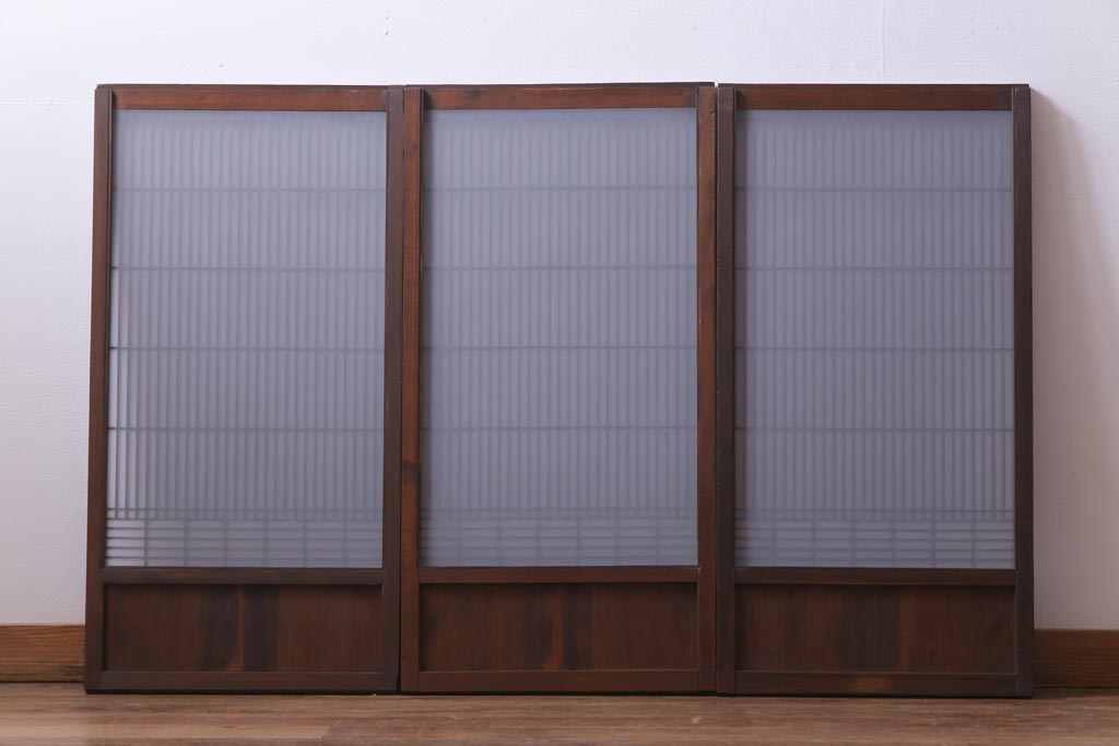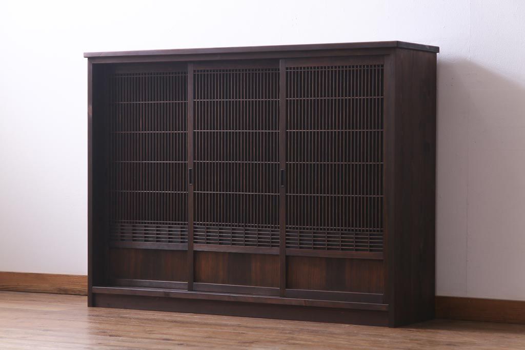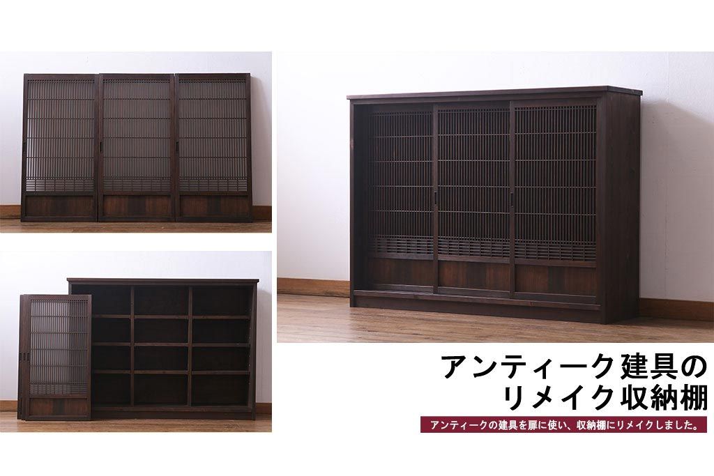 ラフジュ工房オリジナル リメイク すりガラス入り 使い勝手の良い3枚引き違い戸の収納棚(書院、組子、戸棚)です。