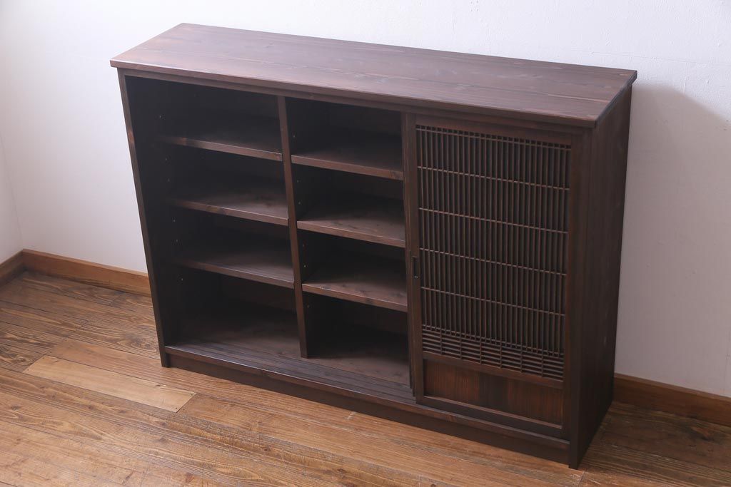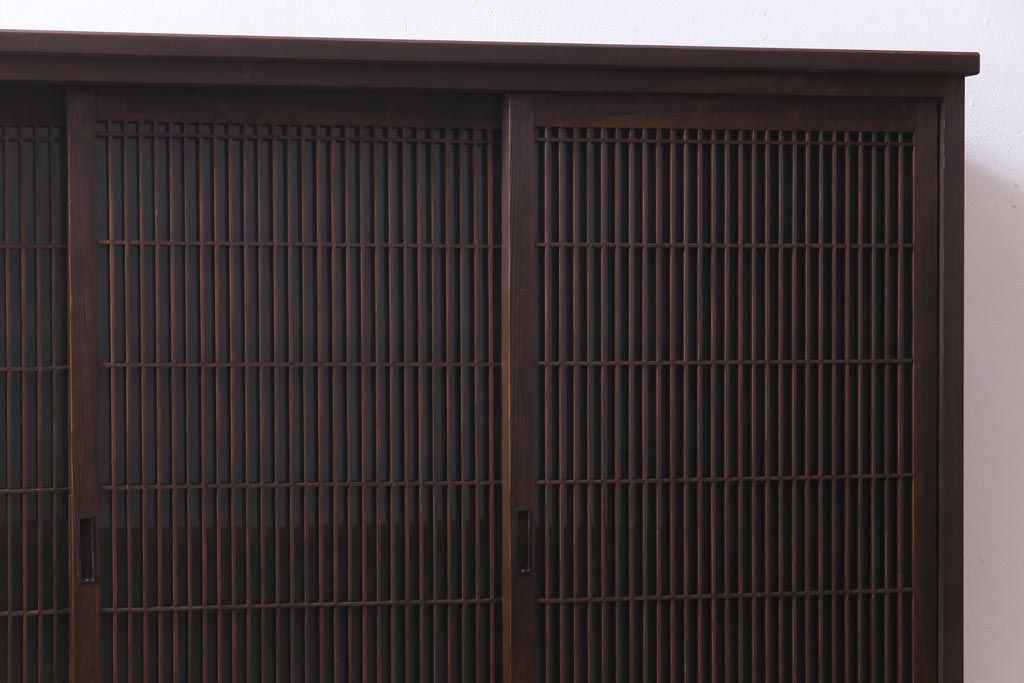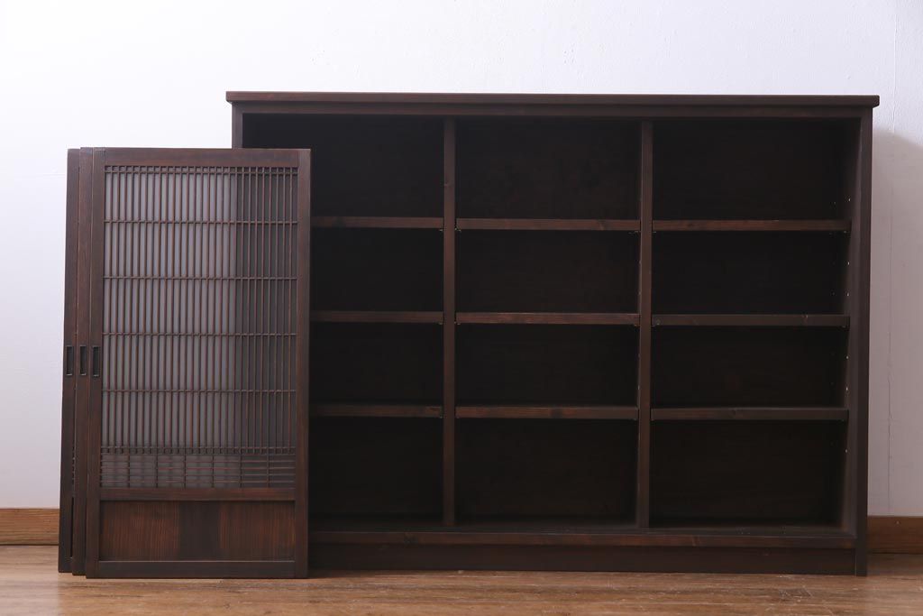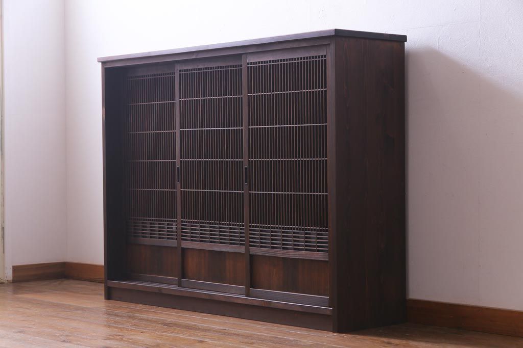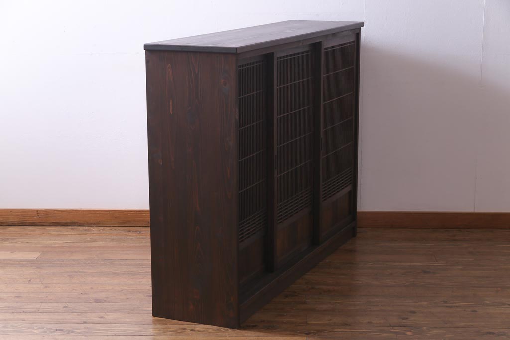 ラフジュ工房オリジナル リメイク すりガラス入り 使い勝手の良い3枚引き違い戸の収納棚(書院、組子、戸棚)です。