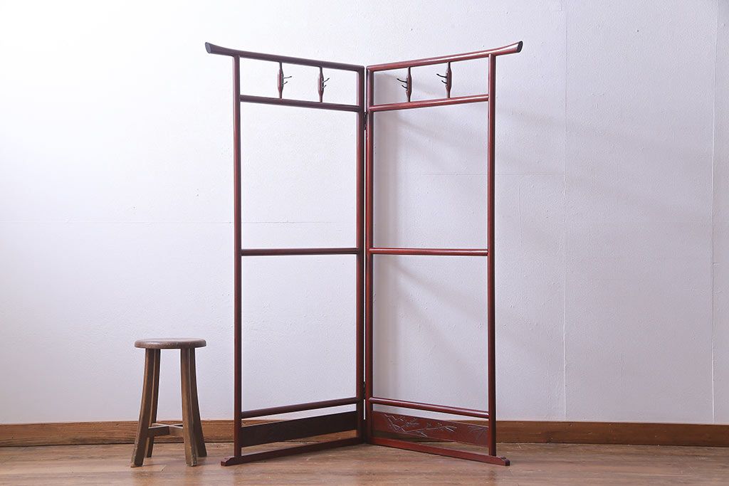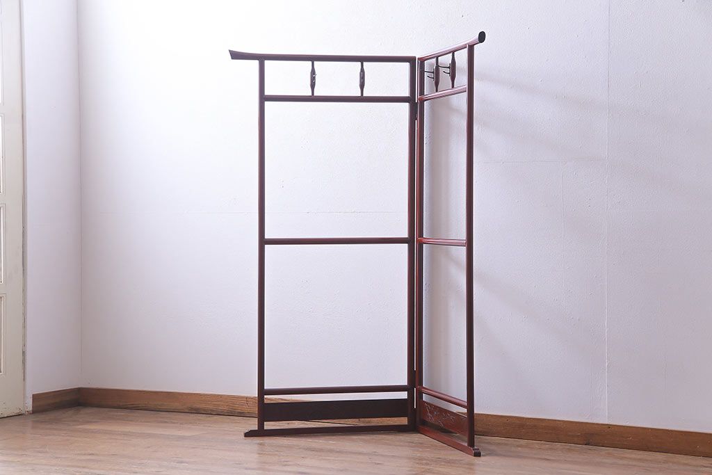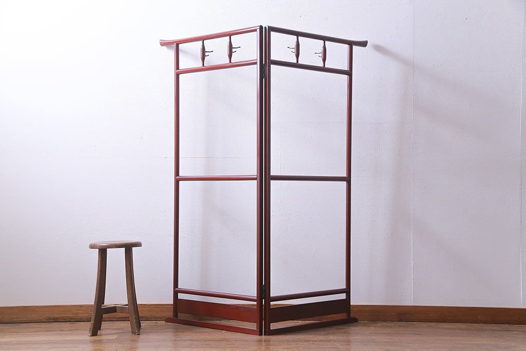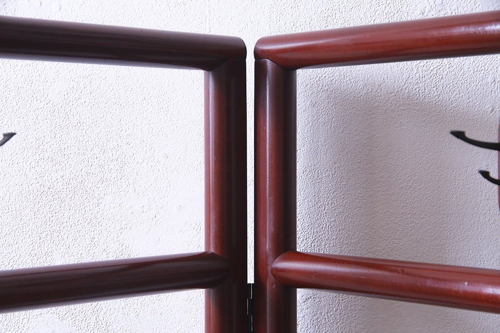アンティーク雑貨 昭和初期 二つ折り フック付 赤みがかった色合いが上品な衣桁(ハンガーラック、着物掛け)