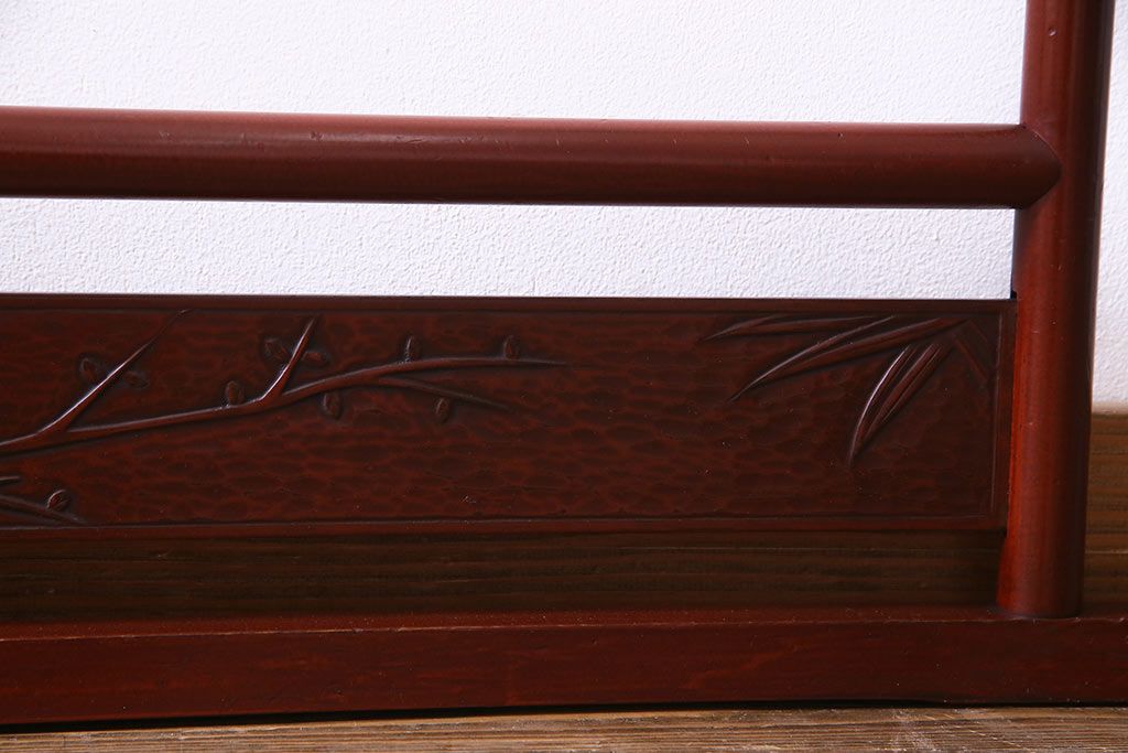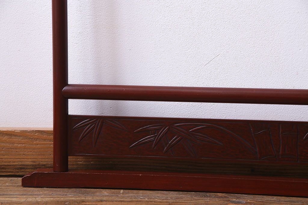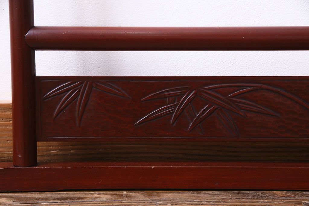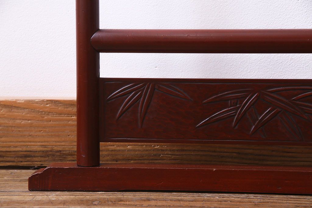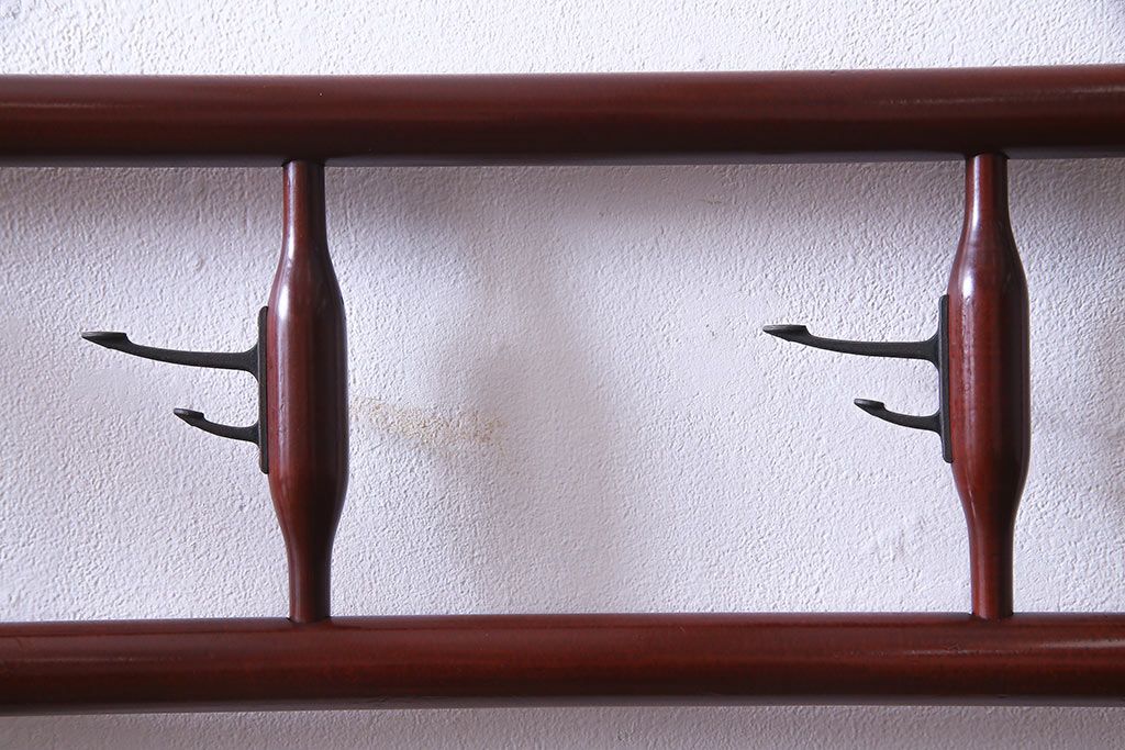 アンティーク雑貨 昭和初期 二つ折り フック付 赤みがかった色合いが上品な衣桁(ハンガーラック、着物掛け)