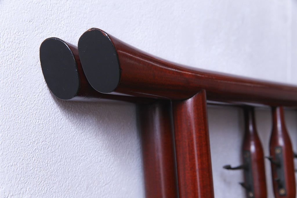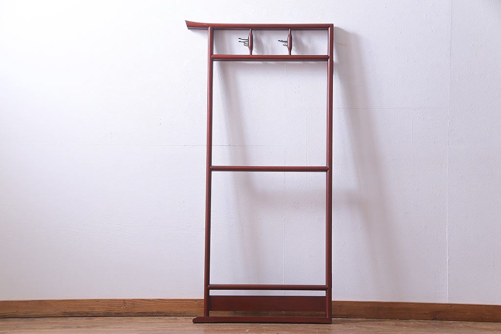 昭和初期 二つ折り フック付 赤みがかった色合いが上品な衣桁(ハンガーラック、着物掛け)です。