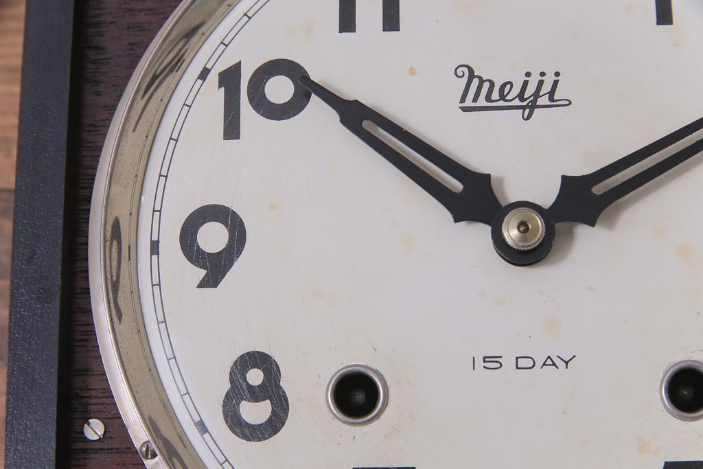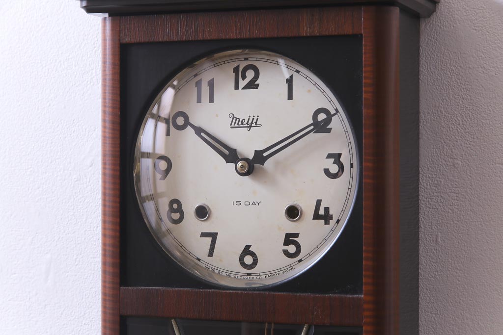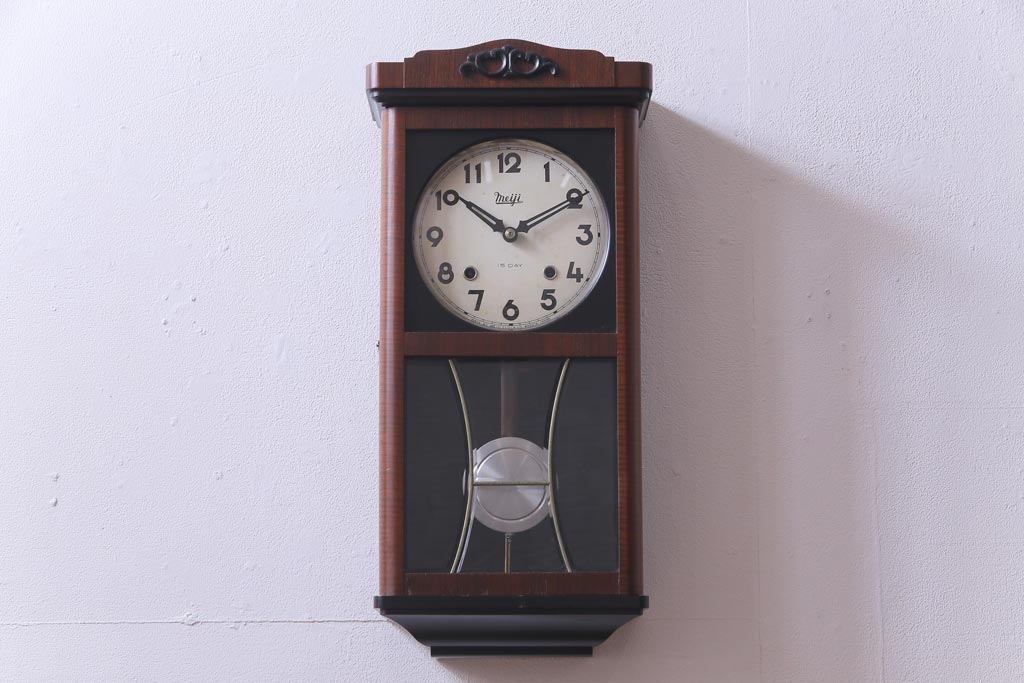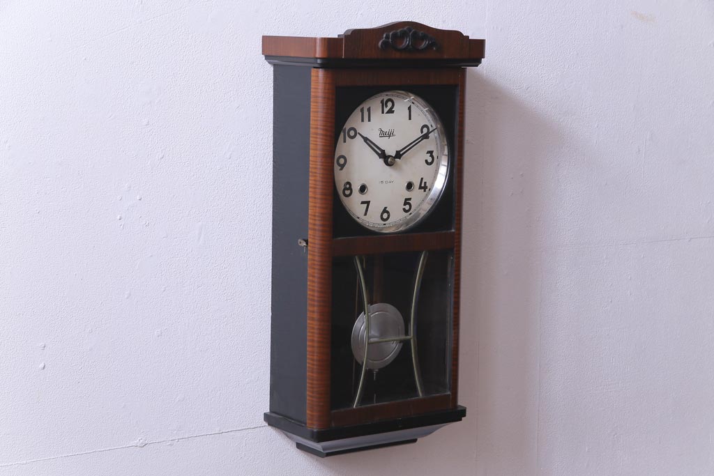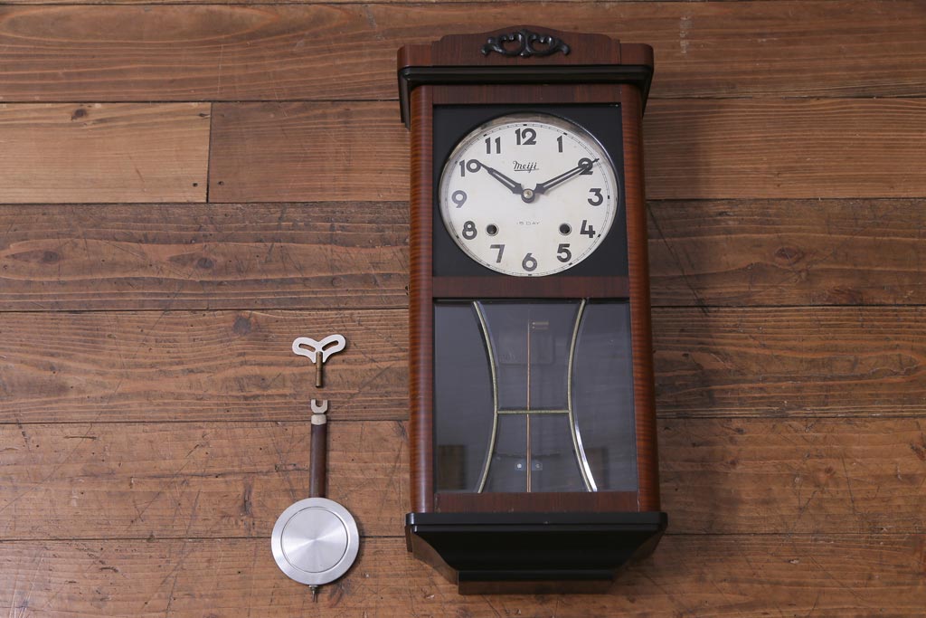アンティーク雑貨 昭和レトロ Meiji(明治時計社) 15DAY ゼンマイ 手巻き式柱時計(振り子時計、掛け時計)