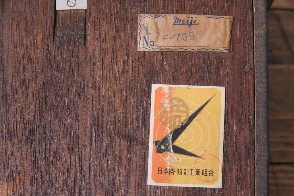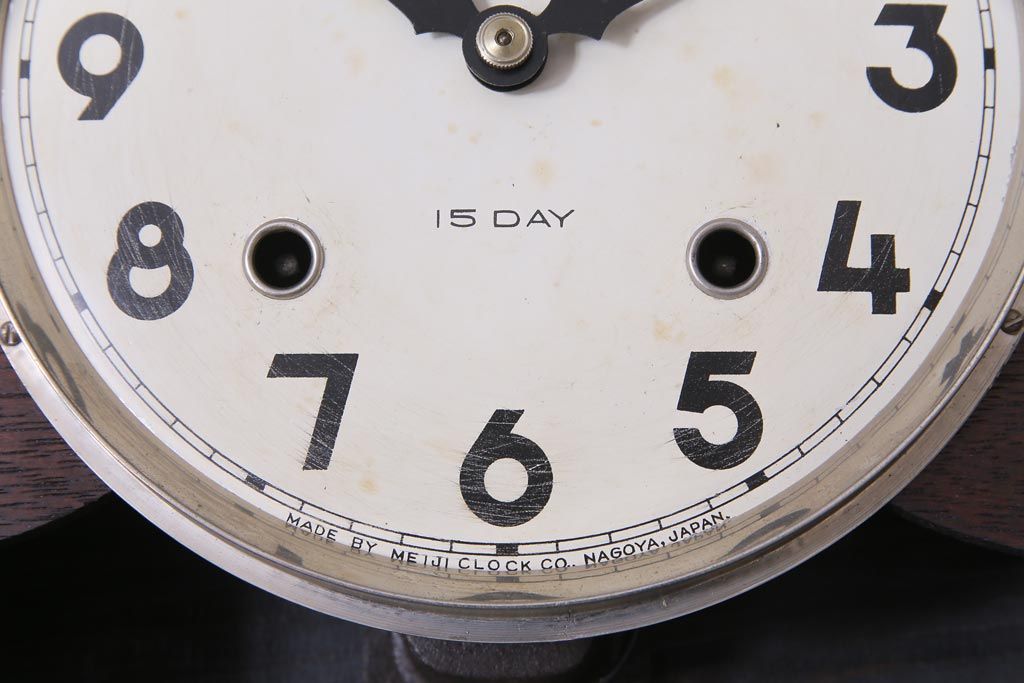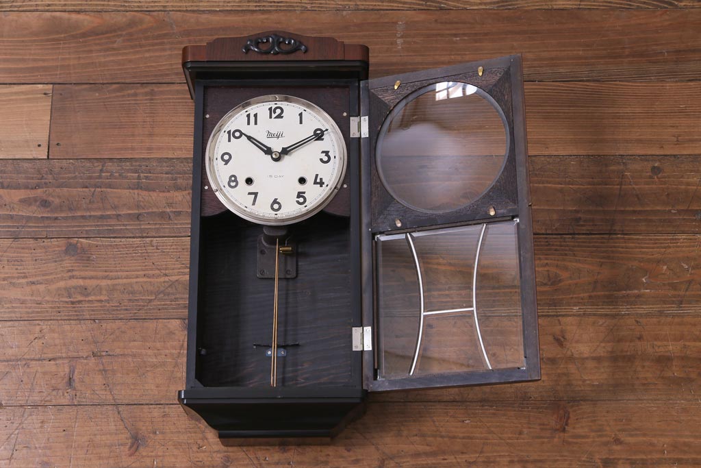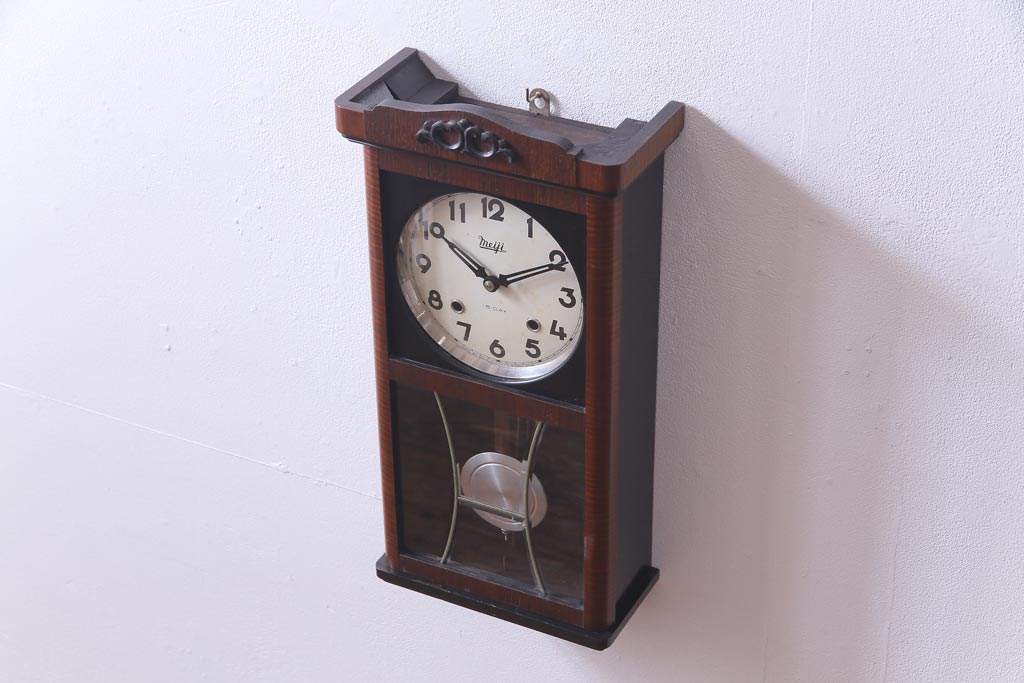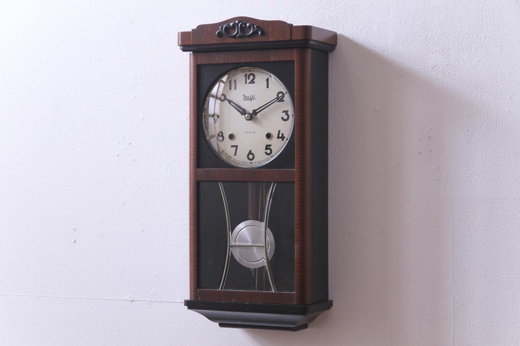 アンティーク雑貨 昭和レトロ Meiji(明治時計社) 15DAY ゼンマイ 手巻き式柱時計(振り子時計、掛け時計)