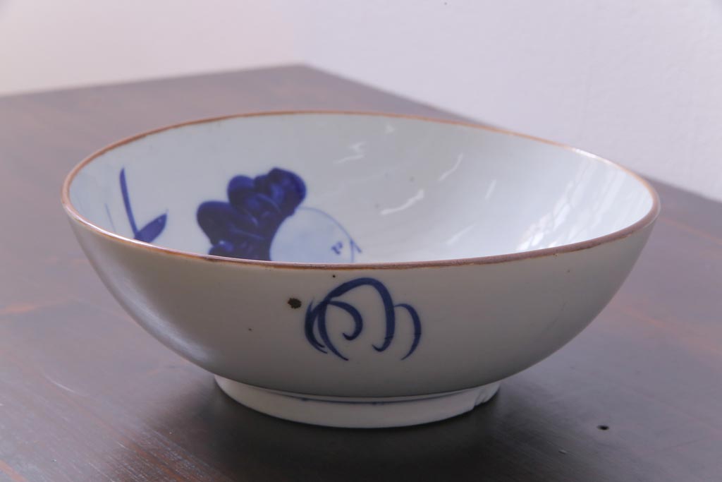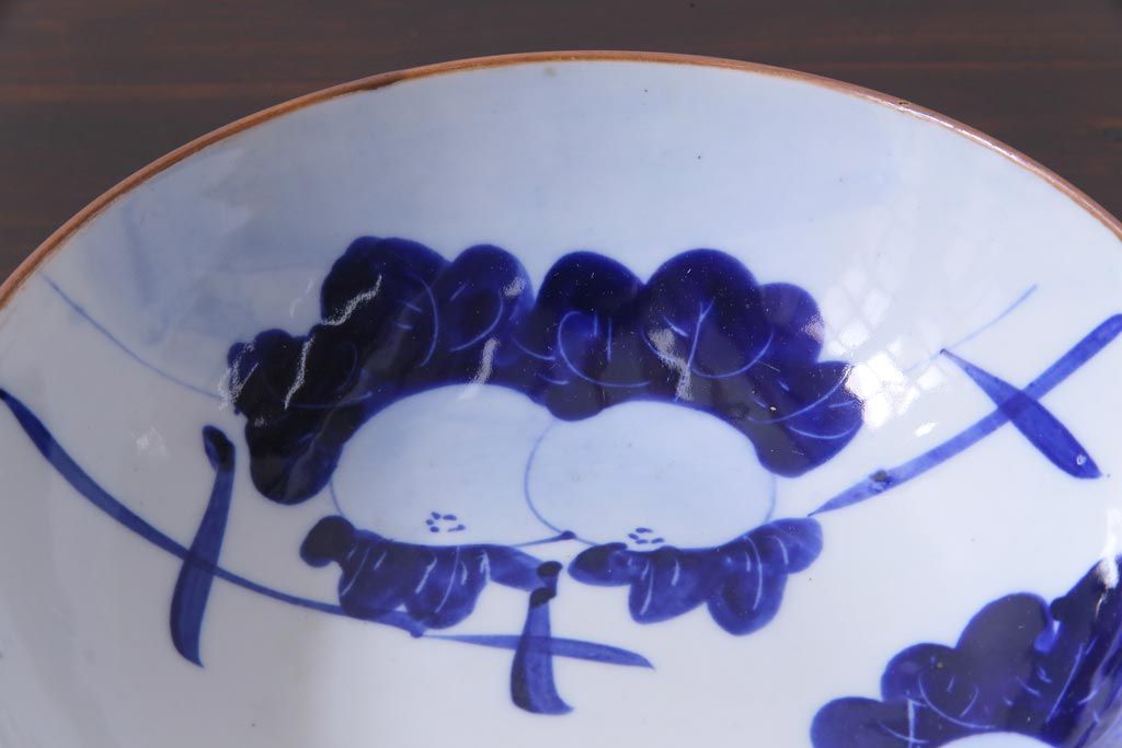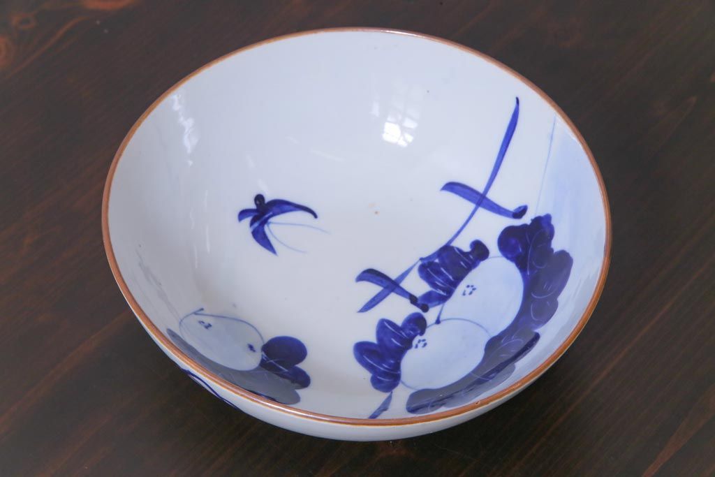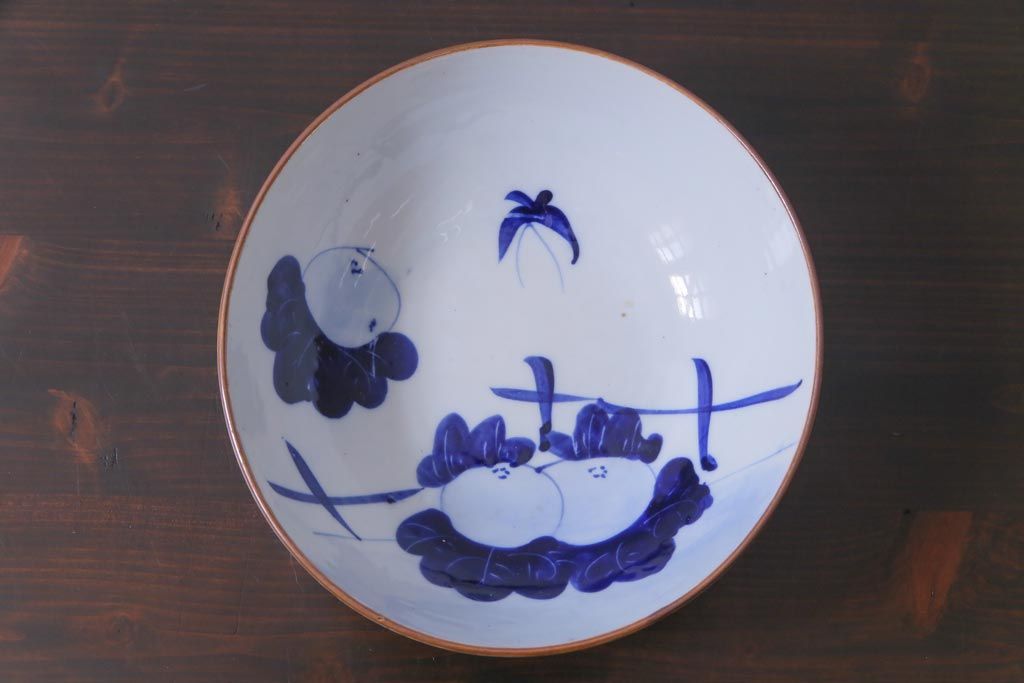 大正昭和初期 染付 蕪紋が味わいのある鉢(深皿)