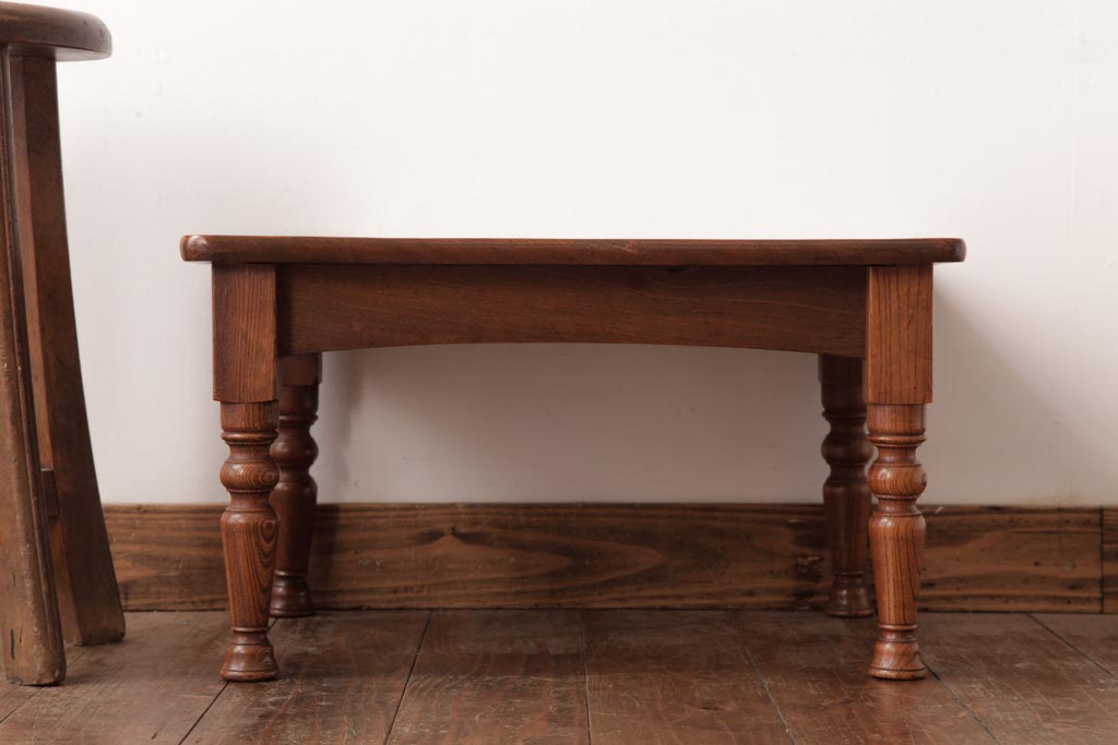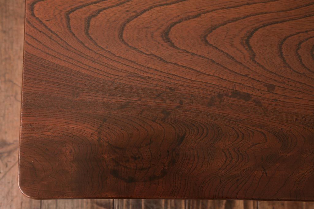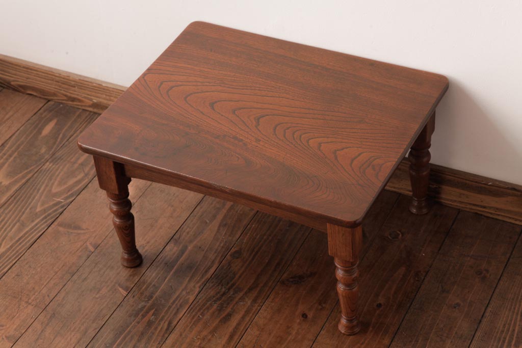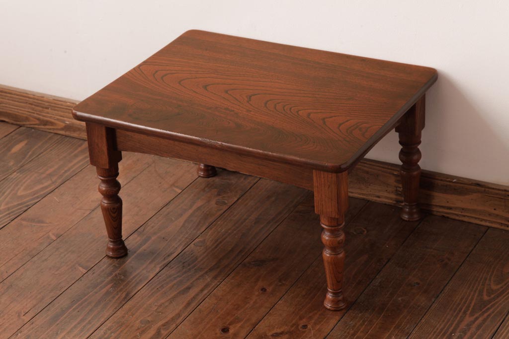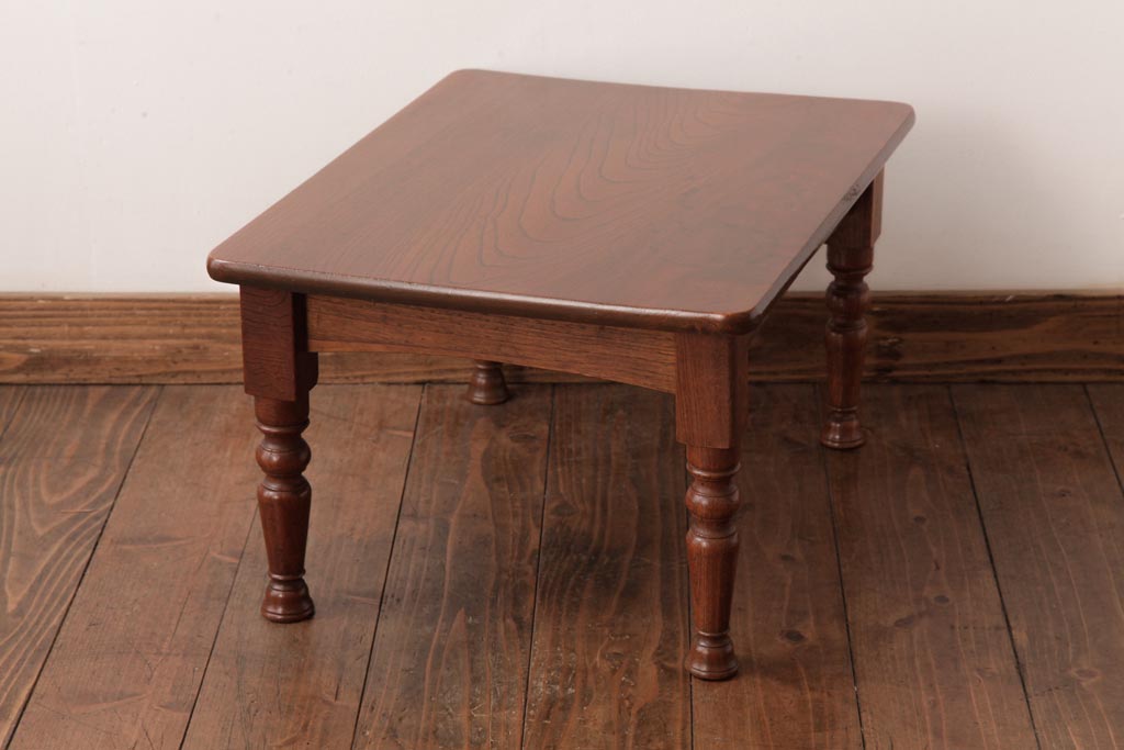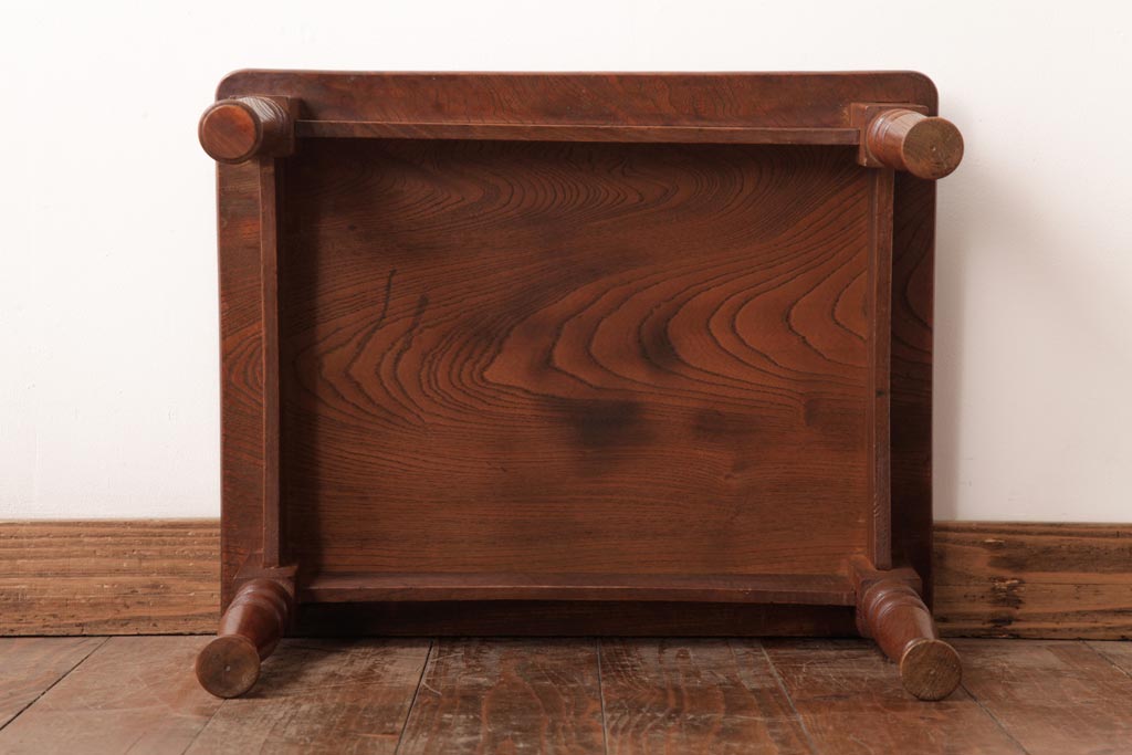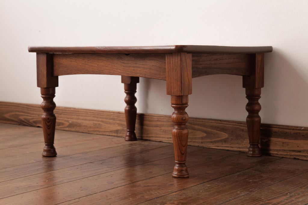 アンティーク家具 和製アンティーク 総ケヤキ材 天板一枚板 挽き物の脚が上品なローテーブル(座卓)