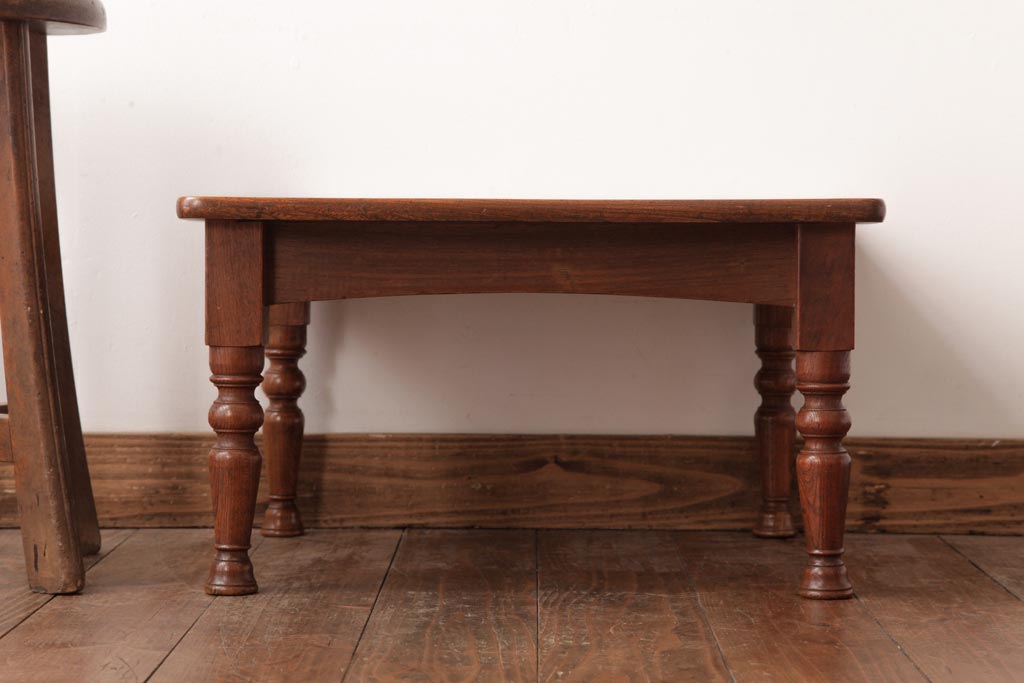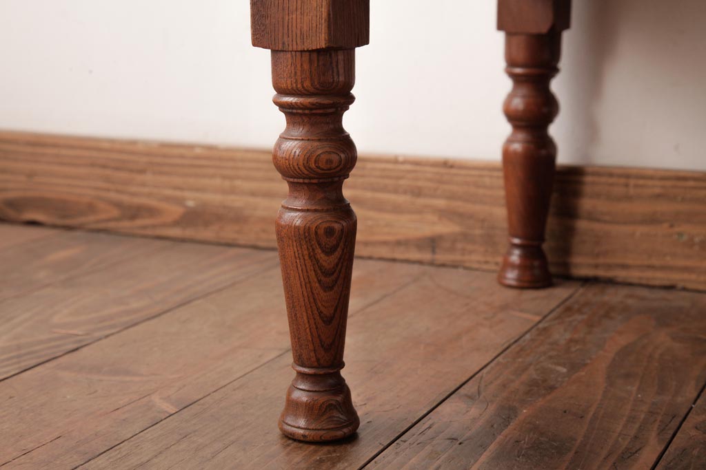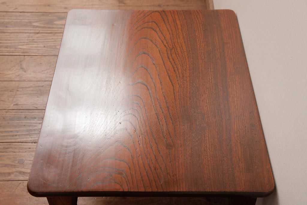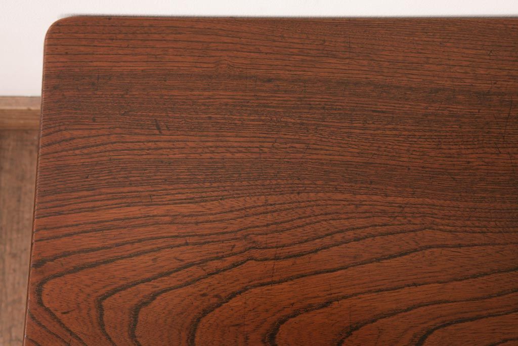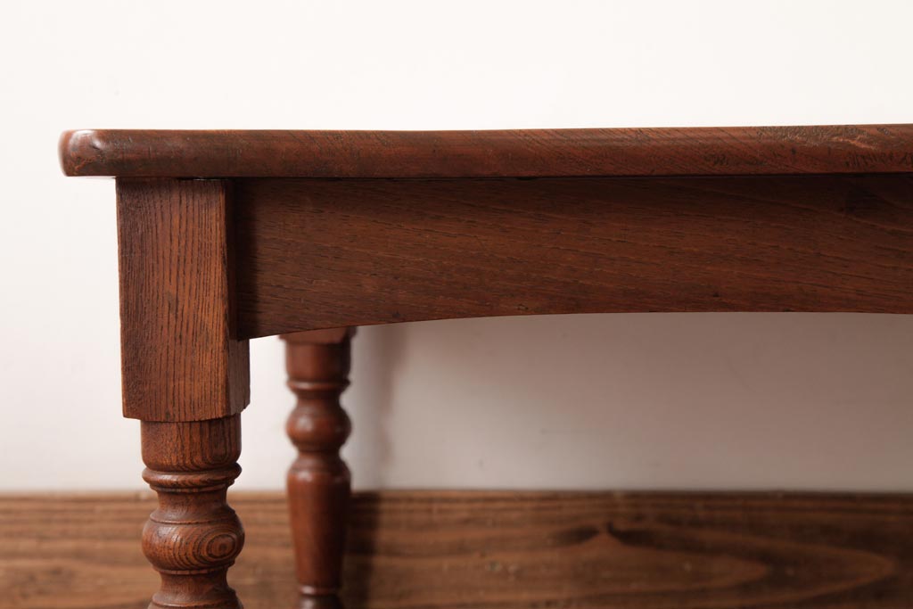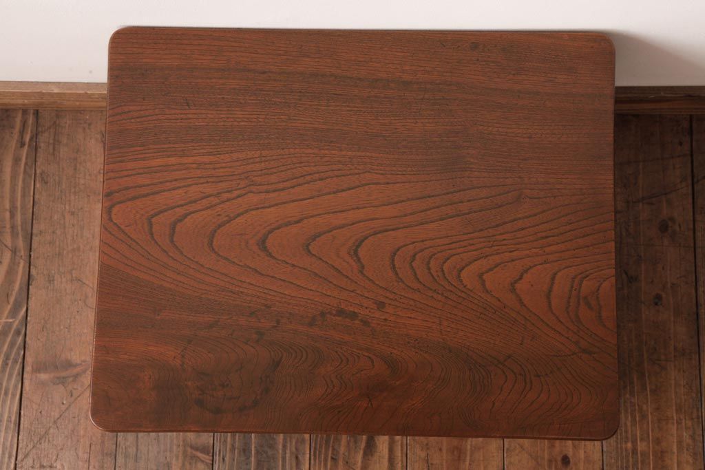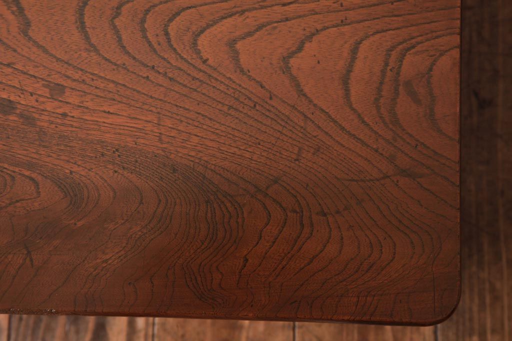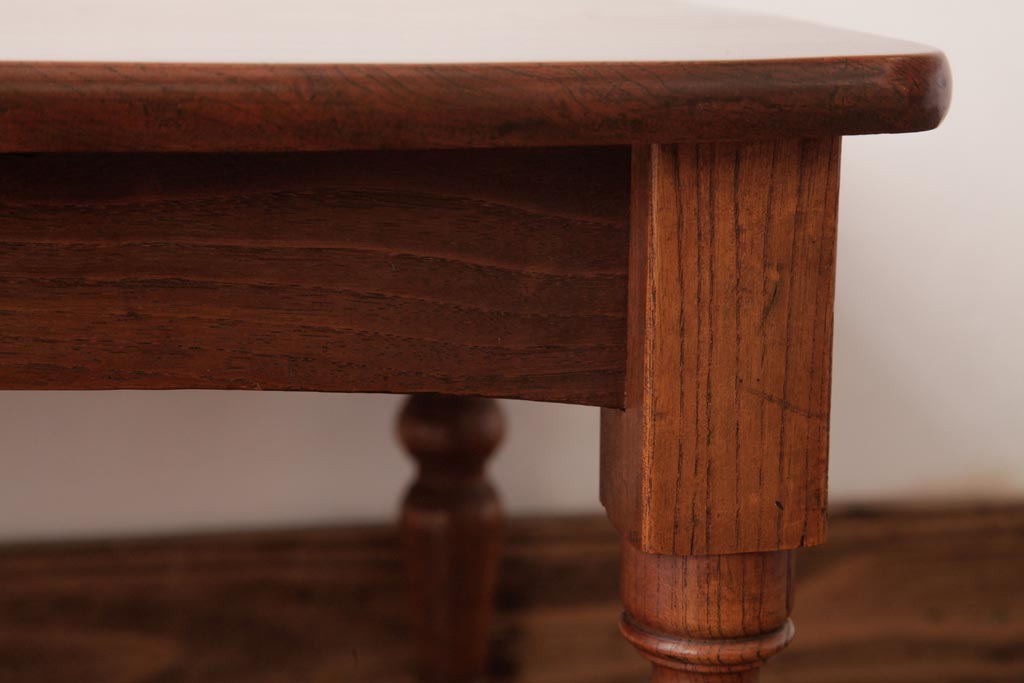 アンティーク家具 和製アンティーク 総ケヤキ材 天板一枚板 挽き物の脚が上品なローテーブル(座卓)