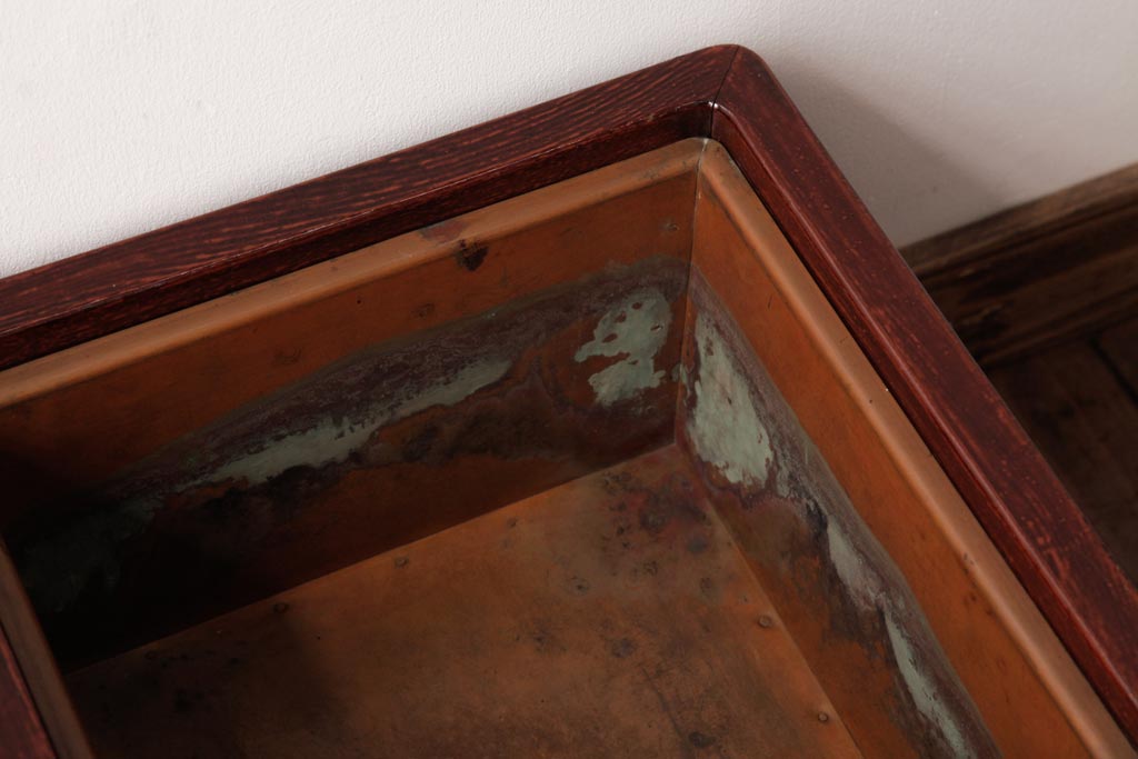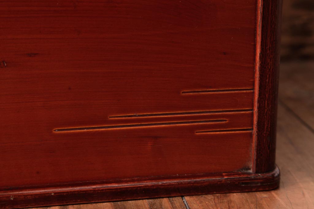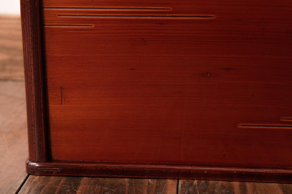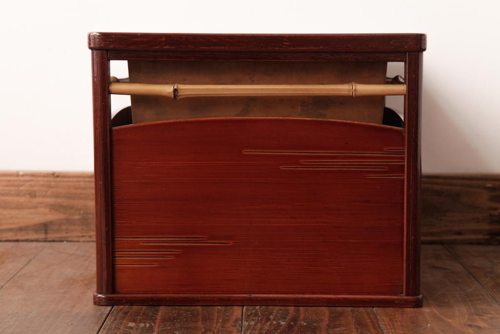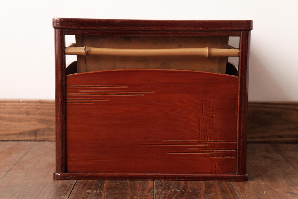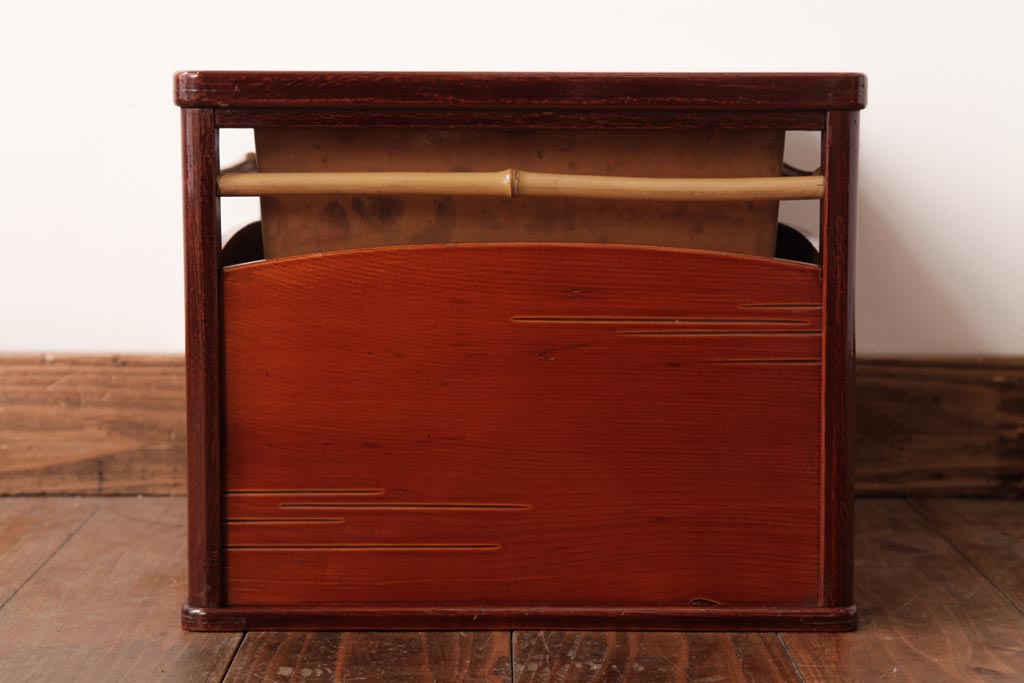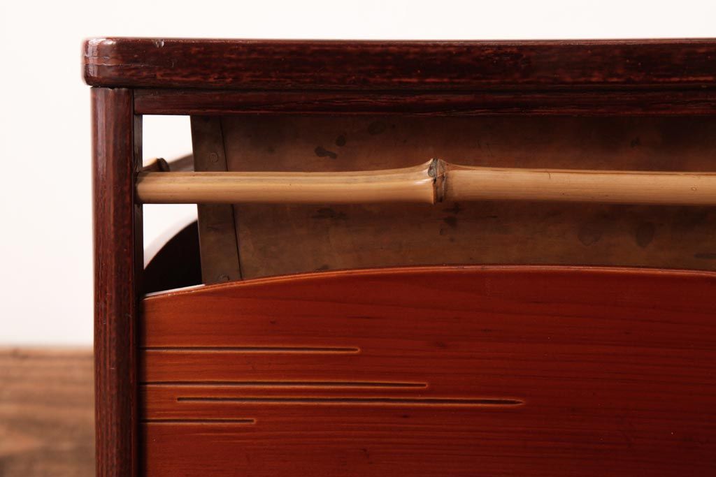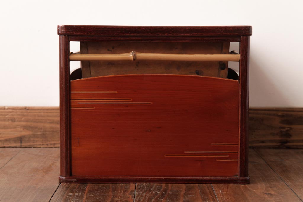 火鉢> 木製火鉢 > アンティーク雑貨 古民具 春慶塗 節竹の入ったデザインが魅力的な箱火鉢(木製火鉢、角火鉢)(3)
