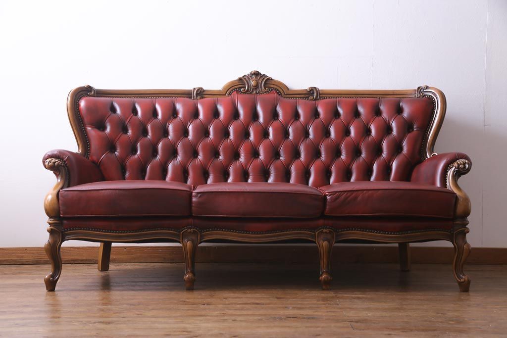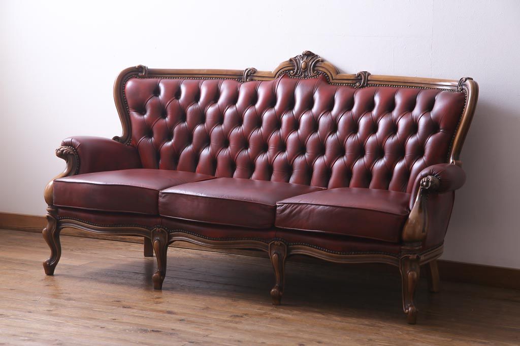 中古 イタリア Orsi Angelo社 本革 抜群の存在感を放つエレガントな3人掛けソファ