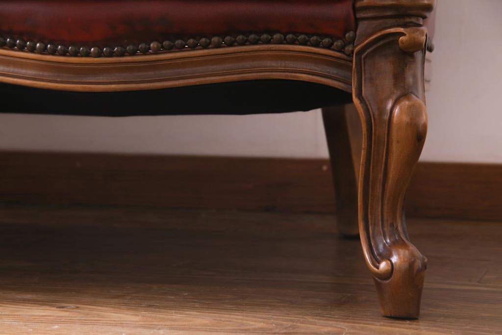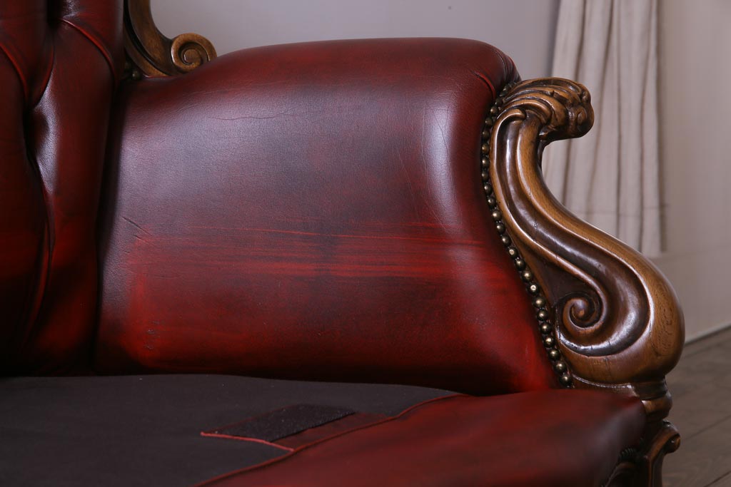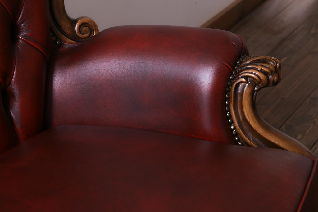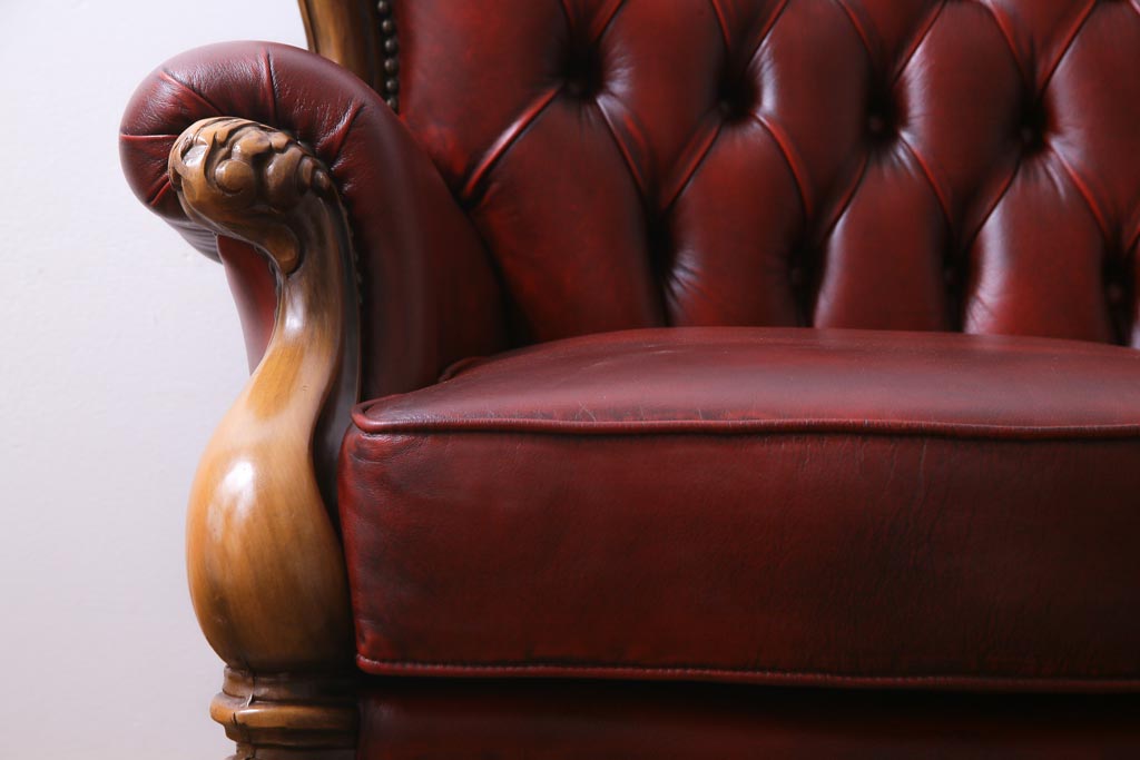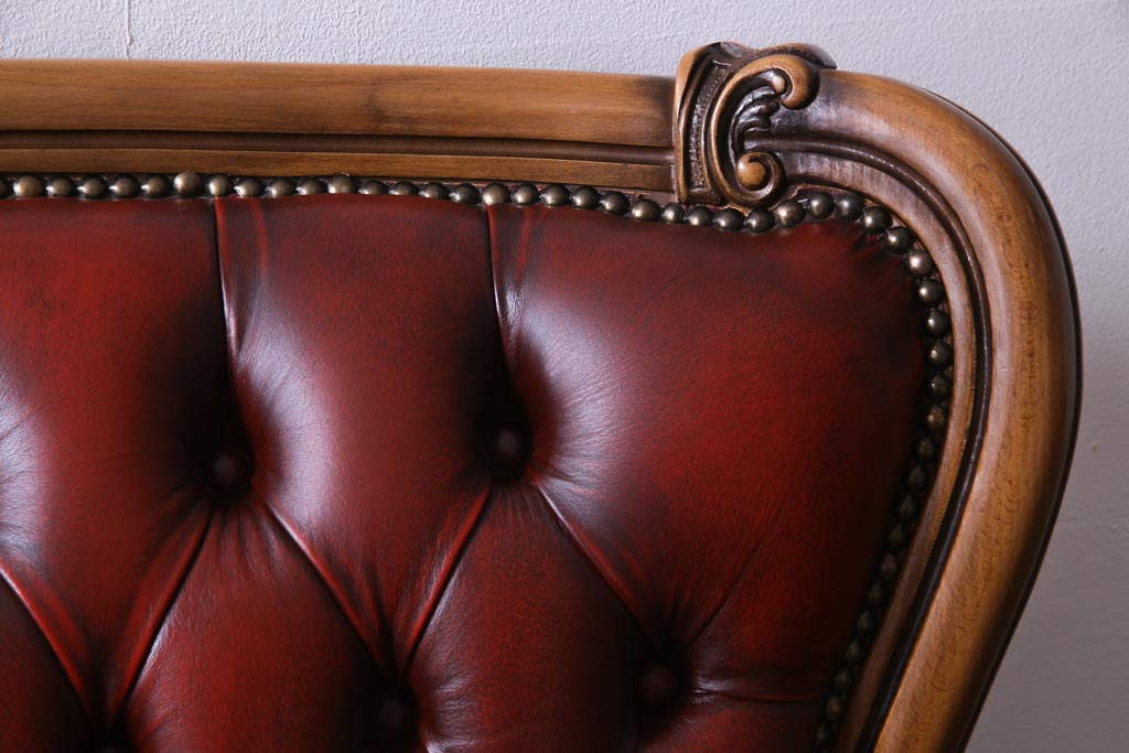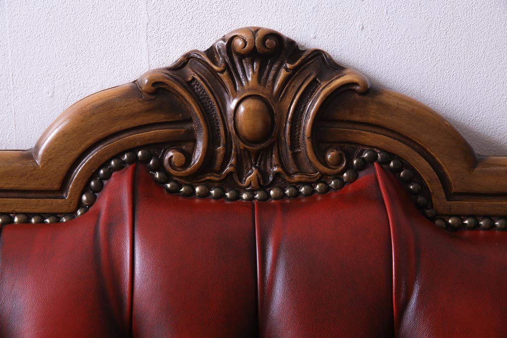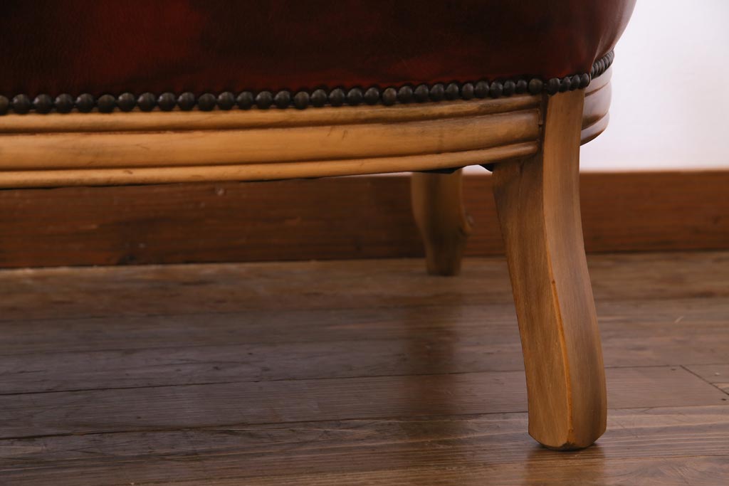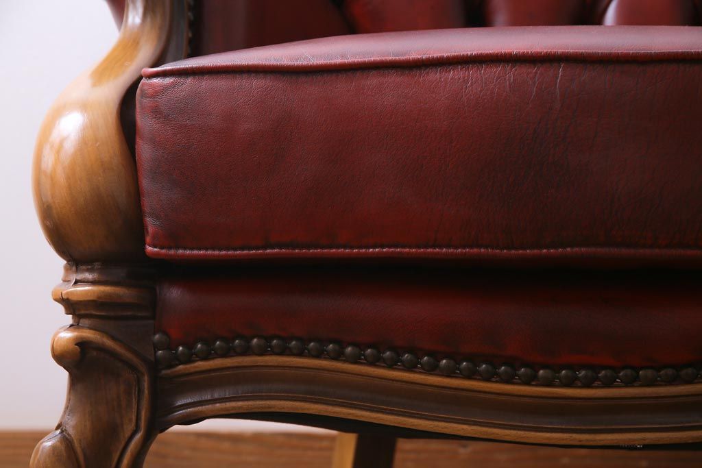 中古 イタリア Orsi Angelo社 本革 抜群の存在感を放つエレガントな3人掛けソファです。 落ち着いた赤いレザーの風合いが魅力的な イタリア、Orsi Angelo社製の3人掛けソファです。 生地に本革が使われており、 使い込んでからも味わいが楽しめます。 クラシカルな装飾性たっぷりで堂々としながらも 重厚感だけでなく品のある雰囲気が漂いますね。 エレガントな家具との相性の良い色合いの本革座面は、 イギリスアンティークでまとめたお部屋はもちろん、 ジャンクテイストやエキゾチックスタイルなど、 クールなお部屋作りにも活躍します。 存在感のあるインテリアとしていかがでしょうか。 【椅子の座り心地について】(身長161cmの女性スタッフの場合) クッションの硬さ:普通 座面の高さ:丁度いい 座面の広さ:広い アームの位置:丁度いい 背もたれの位置:背中全体 座面までの高さは座っていない状態の一番高い部分を測定しています。 弊社工房にて専門の職人が品質チェック・補修を行い、強度を高めていますので、ぐらつきもなく、安心してお使いいただけます。 座面生地は、オリジナルのままです。 使用感も少なく、中古品としてはとても状態の良いきれいなお品です。 使用上問題のあるダメージはありません。 ■アームまでの高さ 590mm ■座面の高さ 460mm ■重量 約38kg