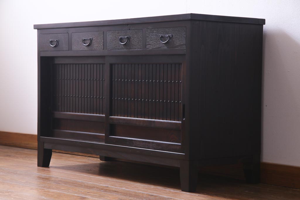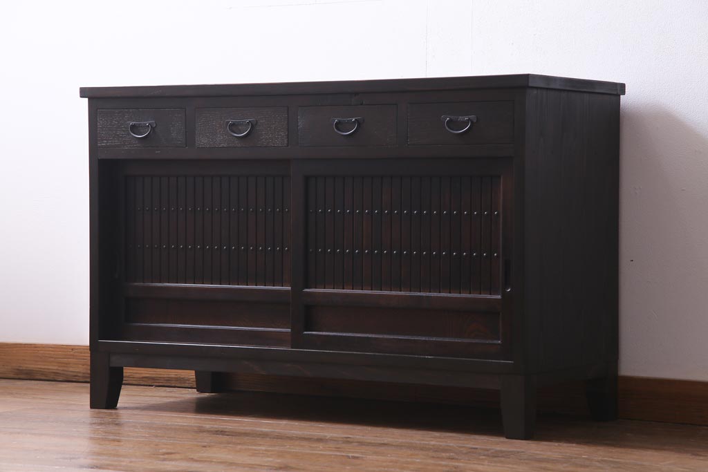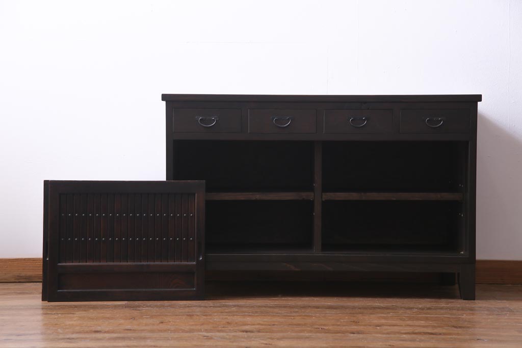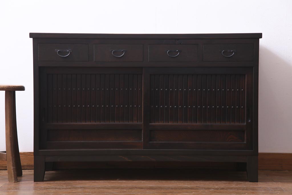 ラフジュ工房オリジナル 古建具リメイク 鎧戸を活かした立派な佇まいのリビングボード(戸棚、収納棚)