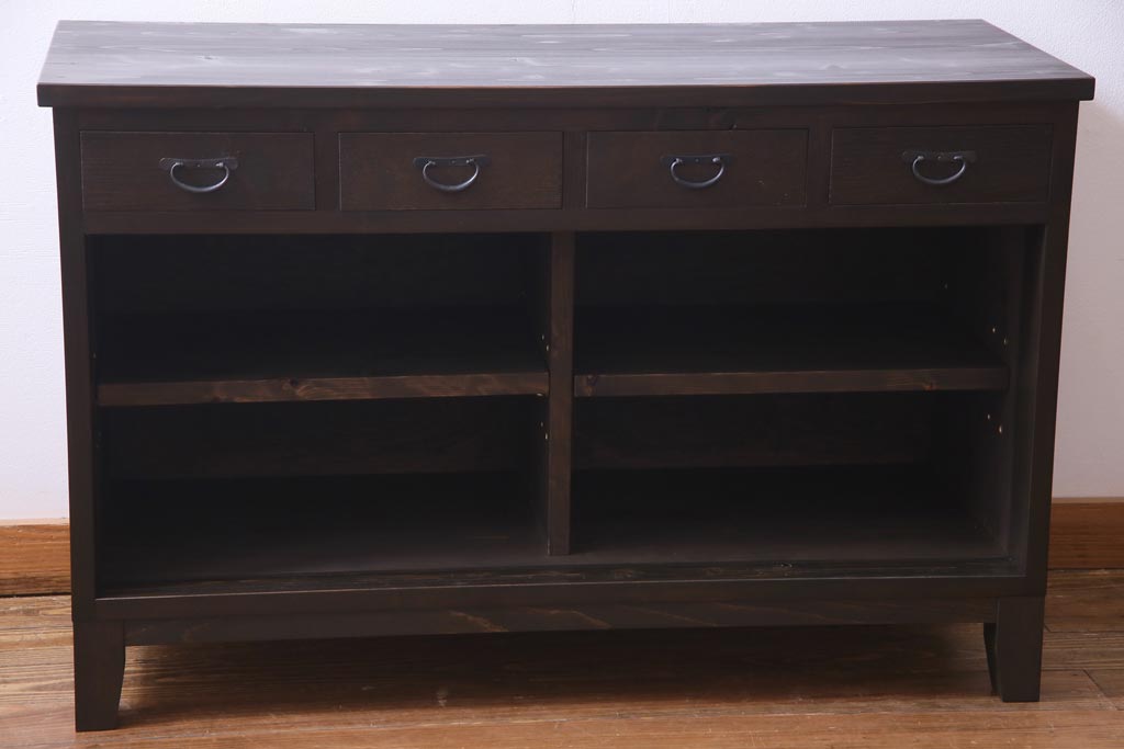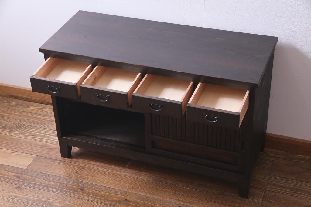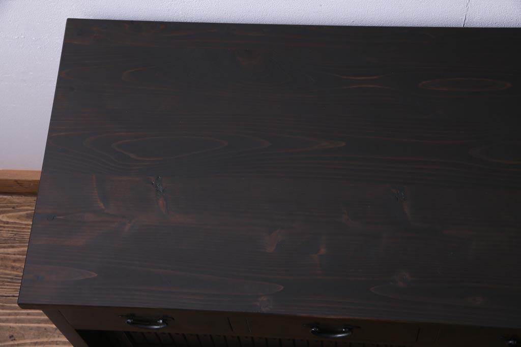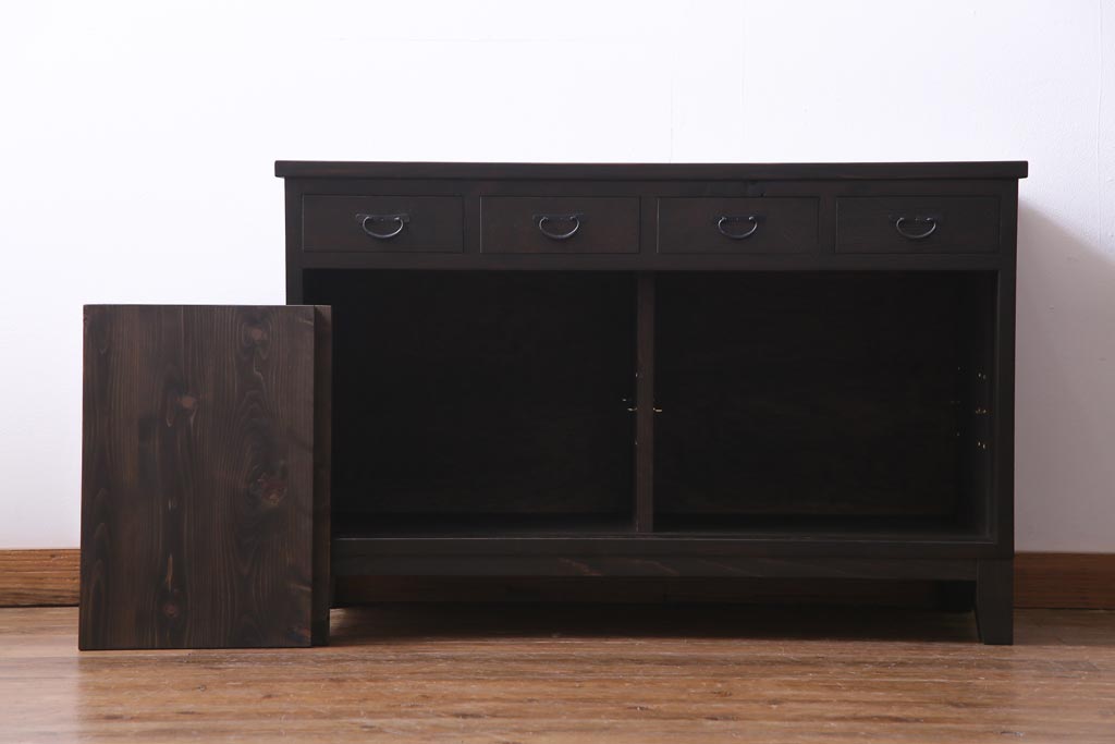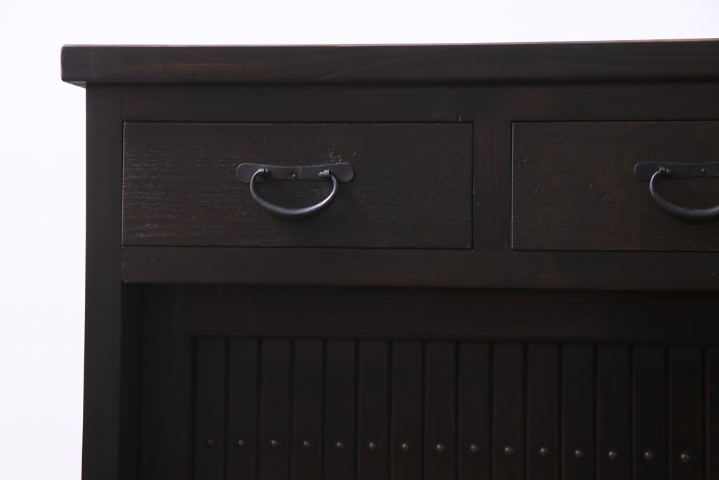 ラフジュ工房オリジナル 古建具リメイク 鎧戸を活かした立派な佇まいのリビングボード(戸棚、収納棚)