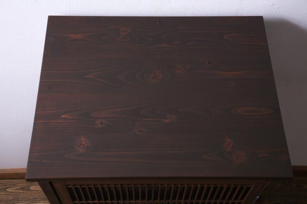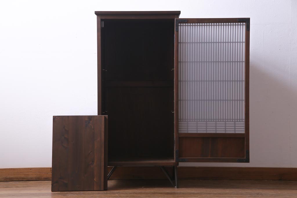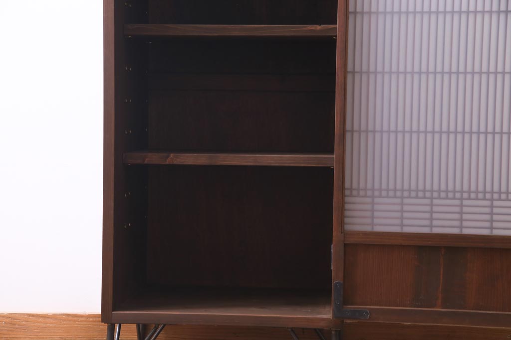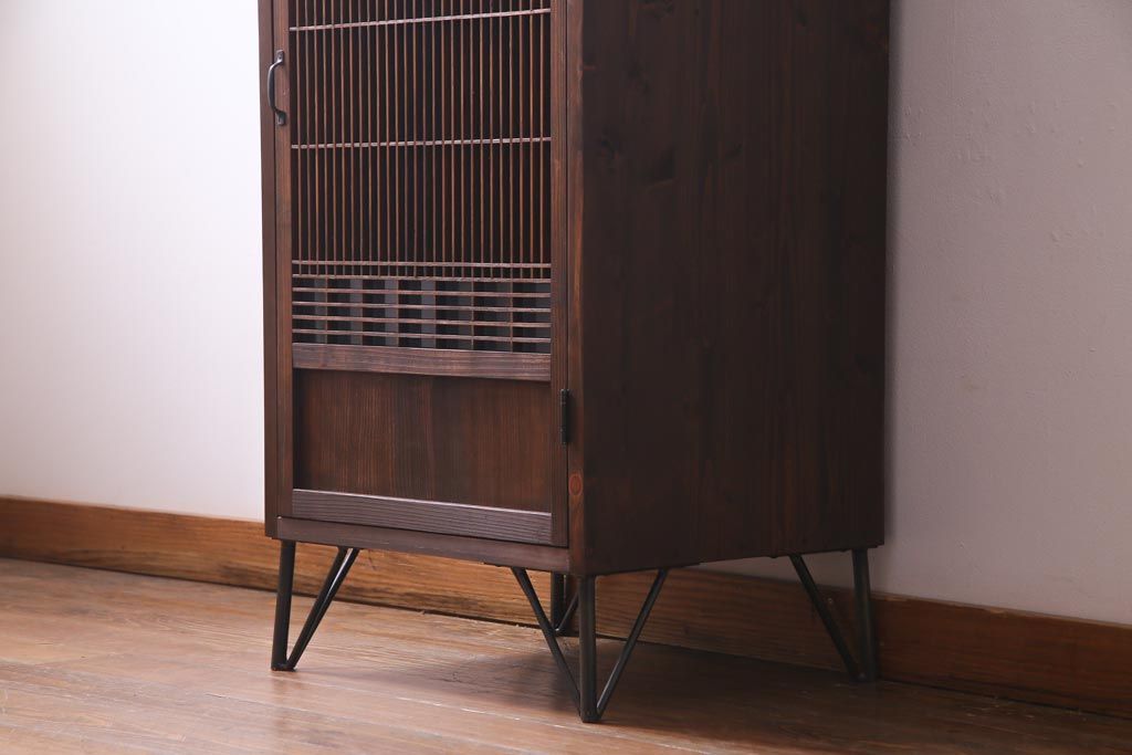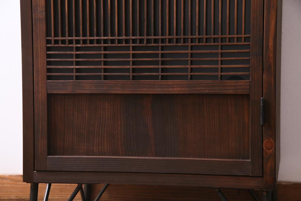 ラフジュ工房オリジナル 古建具リメイク 一味違った和モダンの空間づくりにおすすめな鉄脚戸棚(組子、書院戸、収納棚)
