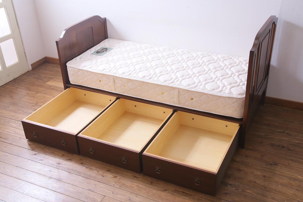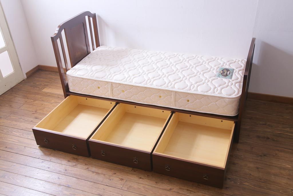 シーツやお洋服の収納に便利な引き出しが3杯付き、
