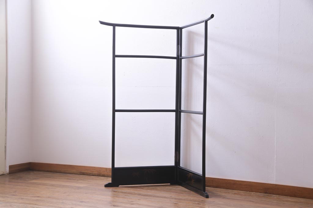 アンティーク雑貨 和製アンティーク 竹図柄 和の風情あふれる二つ折り衣桁(ハンガーラック、着物掛け)