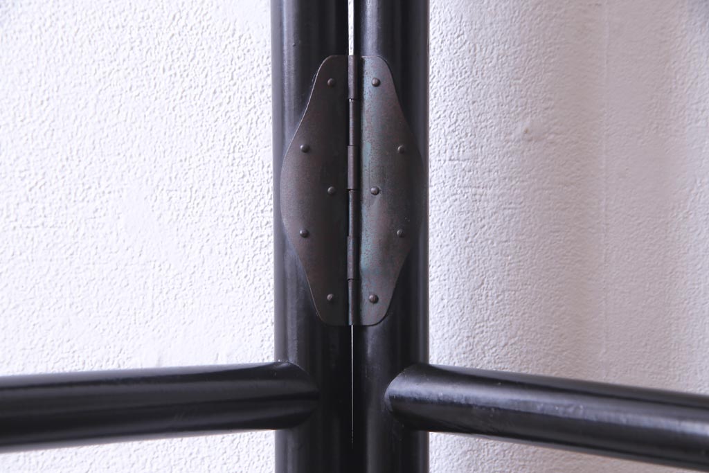 和製アンティーク 竹図柄 和の風情あふれる二つ折り衣桁(ハンガーラック、着物掛け)です。