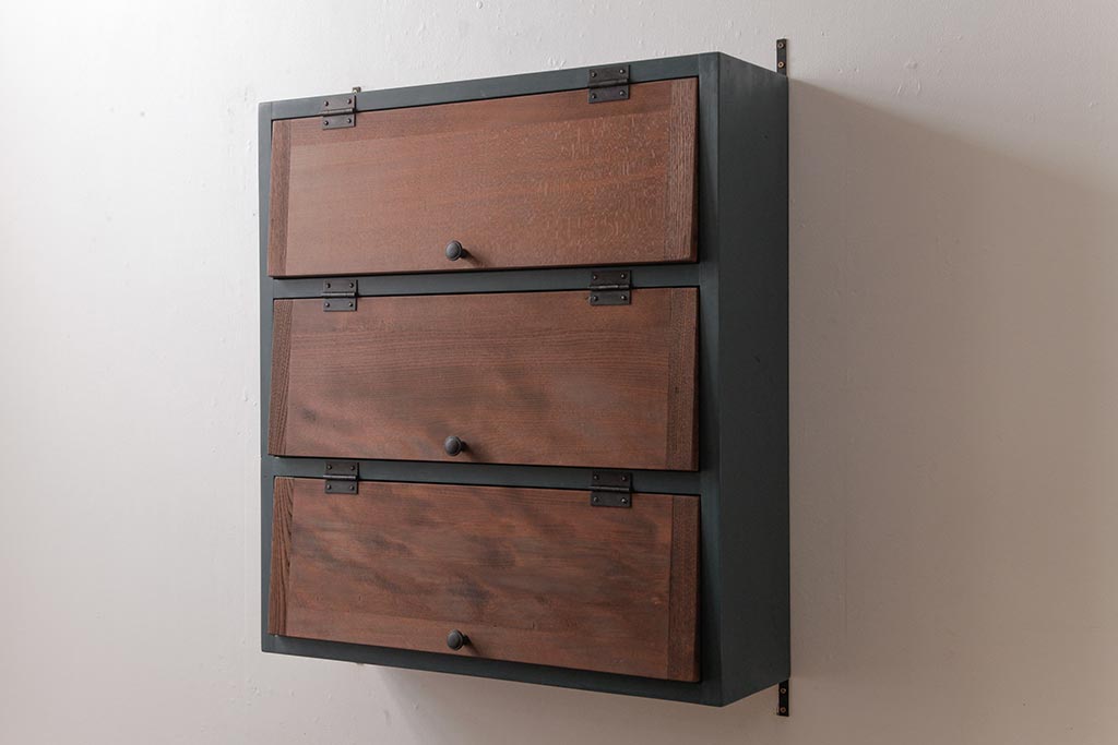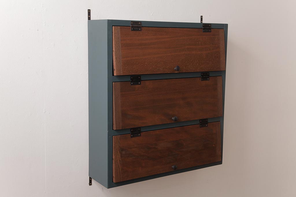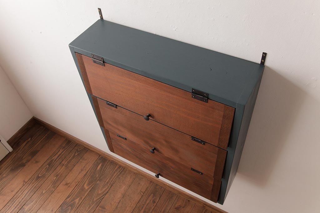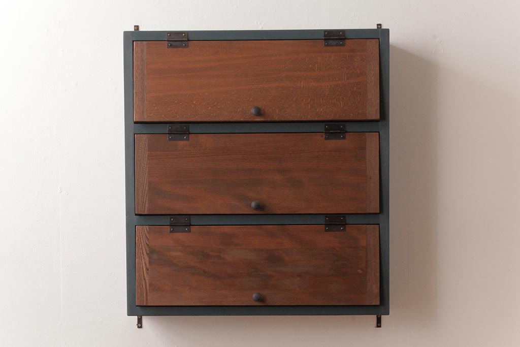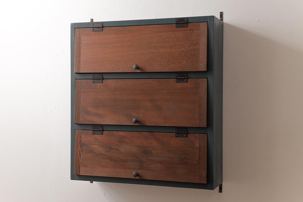 当店オリジナルのパタパタ扉の壁掛け収納棚です。