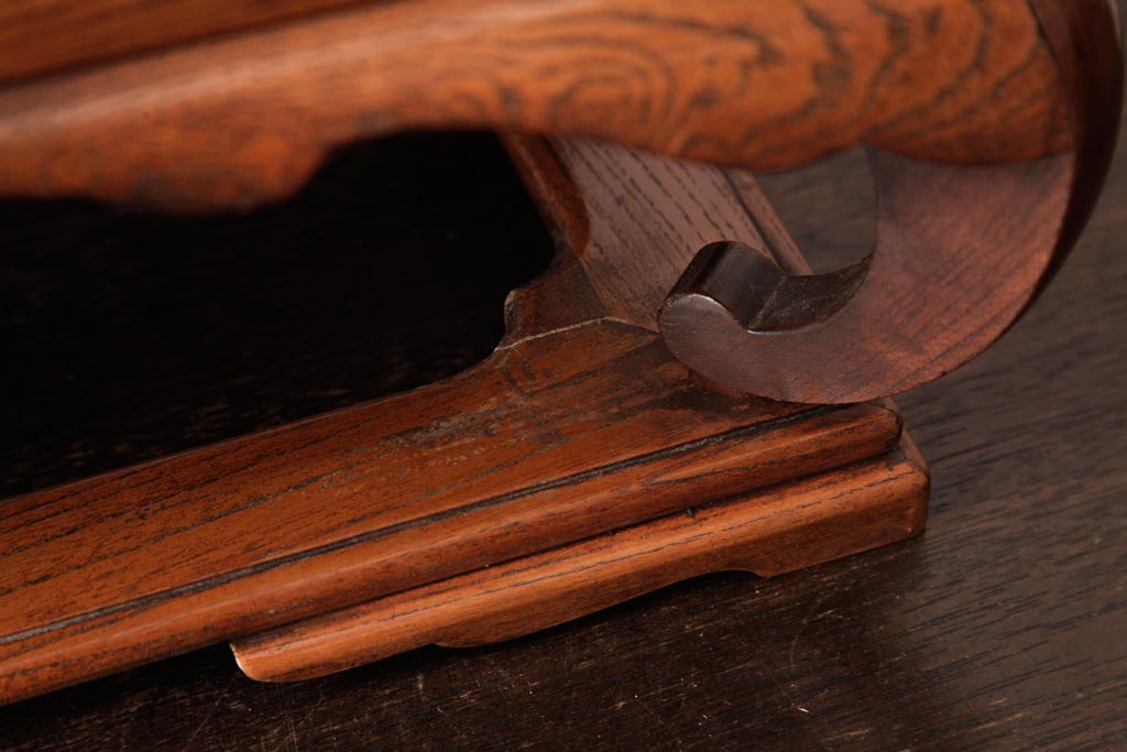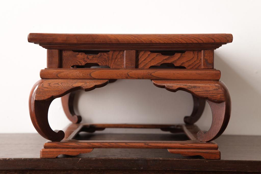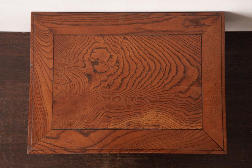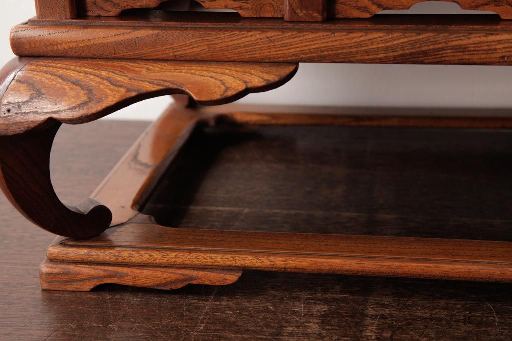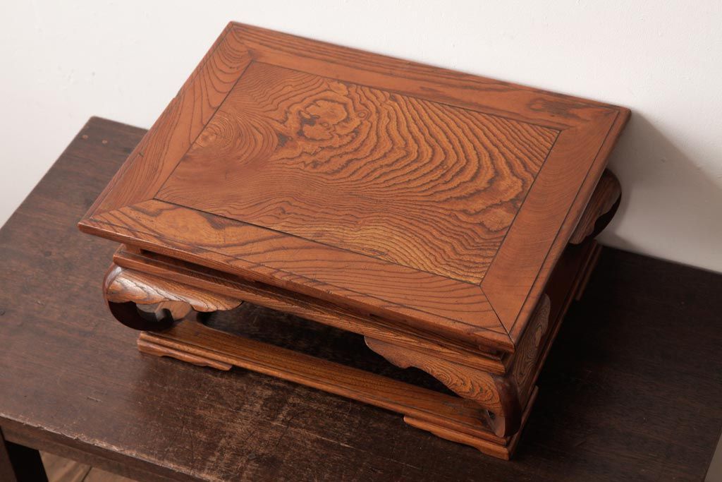 アンティーク雑貨 和製アンティーク 総ケヤキ材 漆塗り 杢目が魅力的な二重天の花台(飾り台)