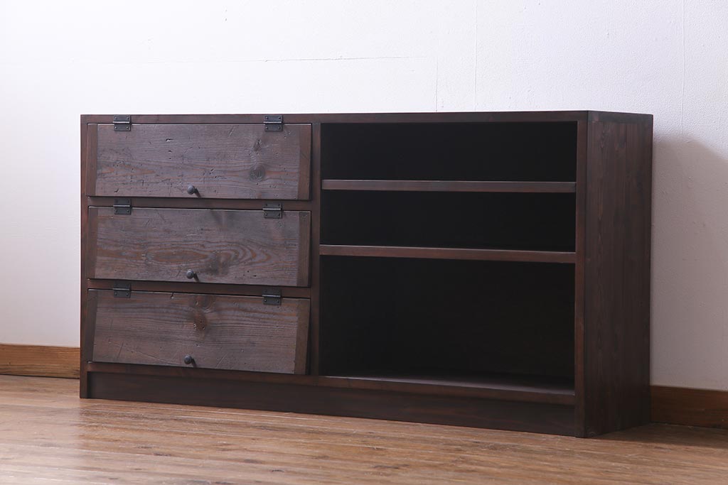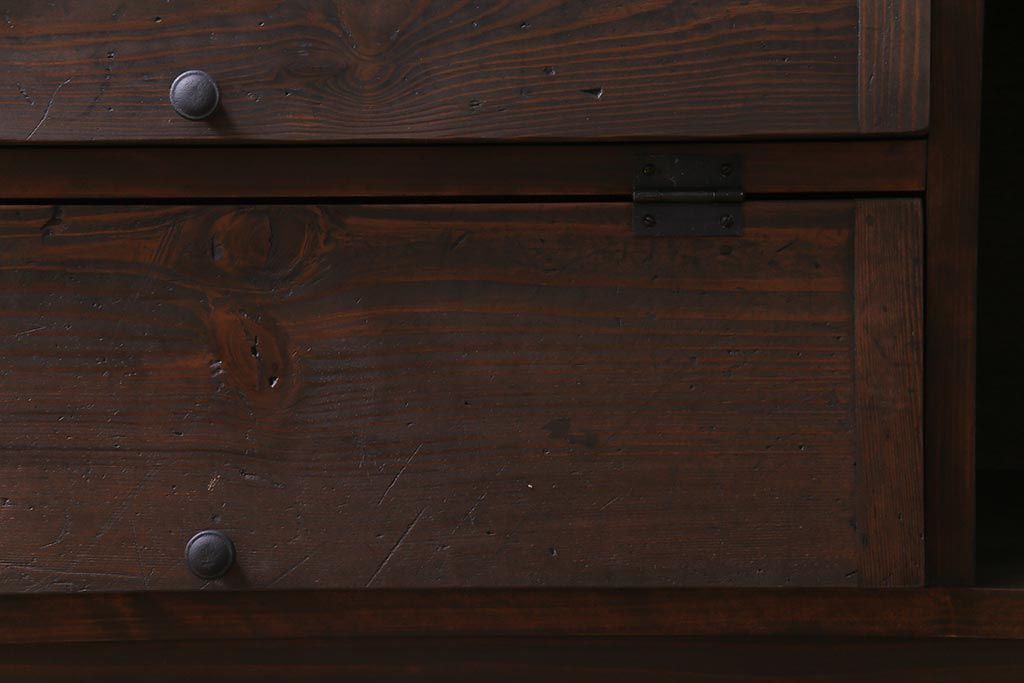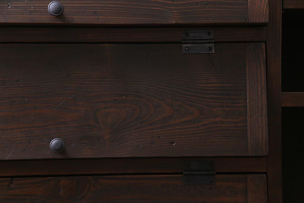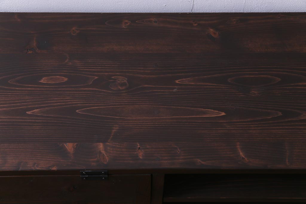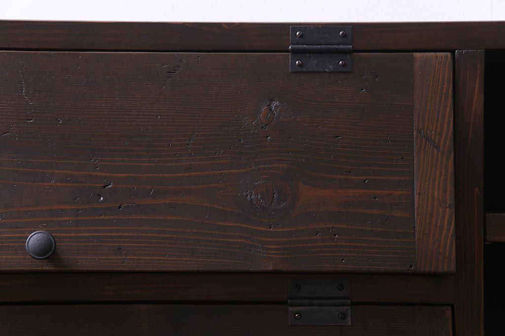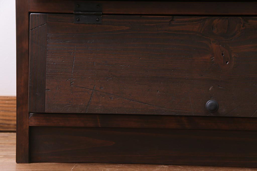 ラフジュ工房オリジナル リメイク家具 明治期の松材が味わい深いパタパタ扉のリビングボード(下駄箱、収納棚、サイドボード)(2)