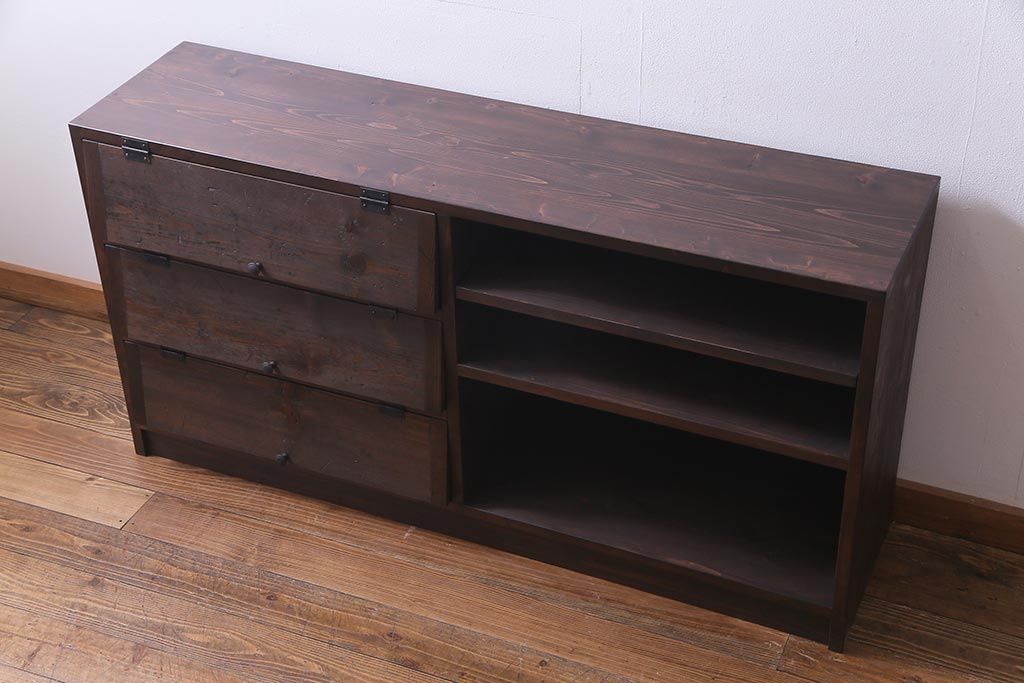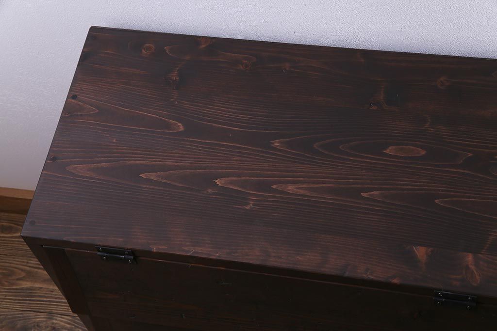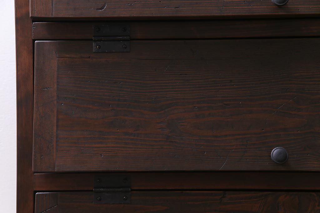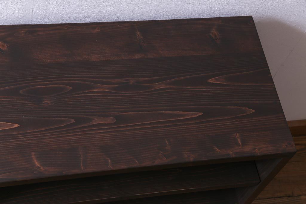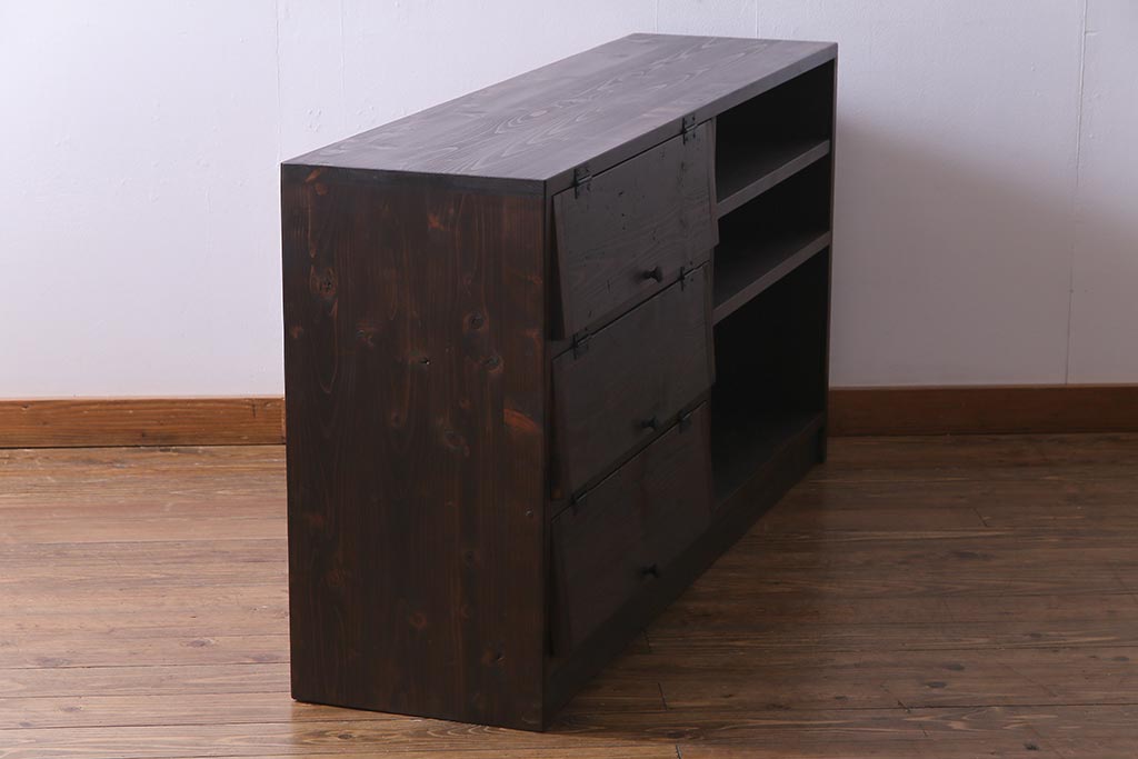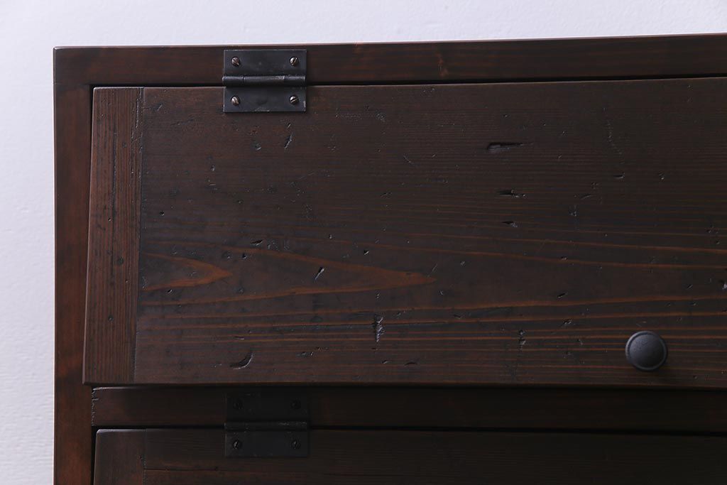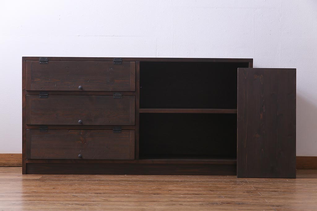 ラフジュ工房オリジナル リメイク家具 明治期の松材が味わい深いパタパタ扉のリビングボード(下駄箱、収納棚、サイドボード)(2)