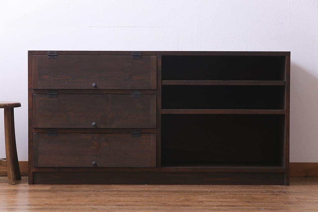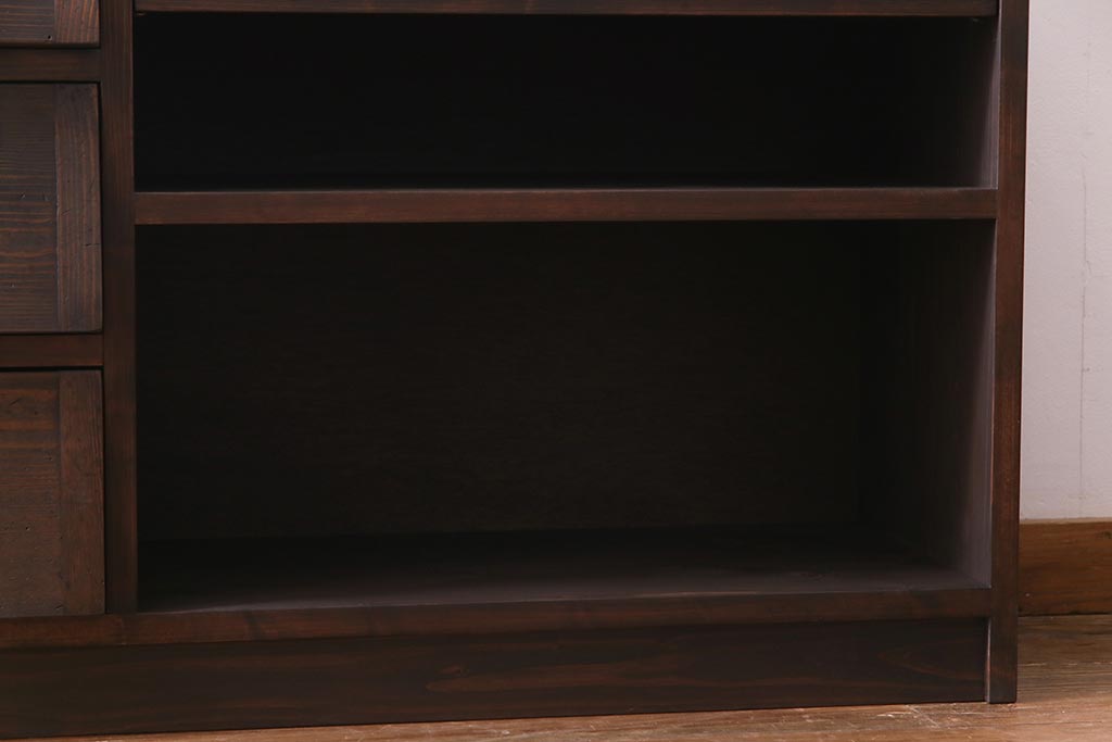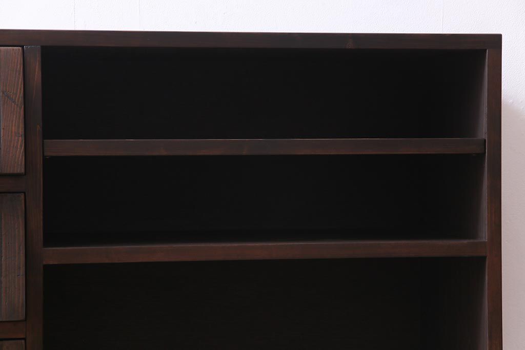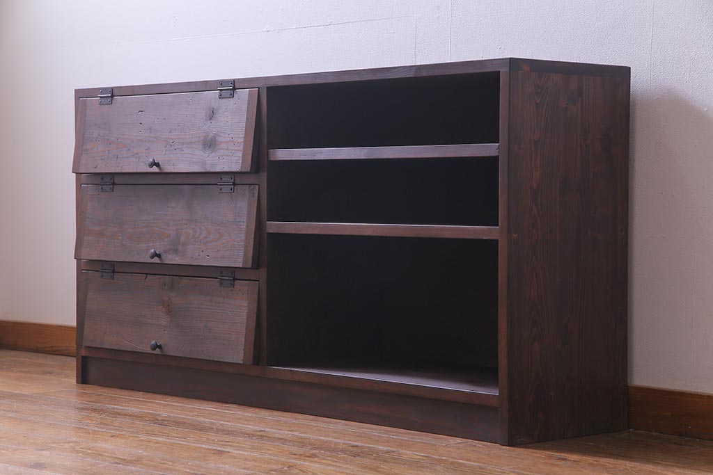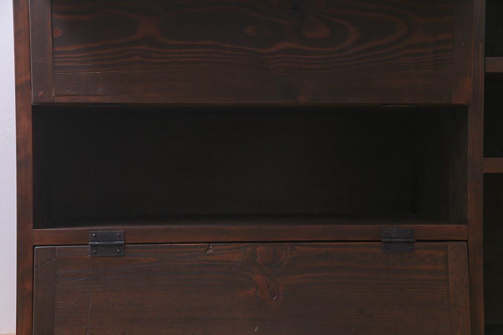 ラフジュ工房> オープンラック・シェルフ > ラフジュ工房オリジナル リメイク家具 明治期の松材が味わい深いパタパタ扉のリビングボード(下駄箱、収納棚、サイドボード)(2)