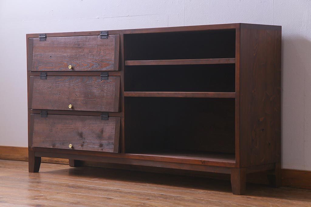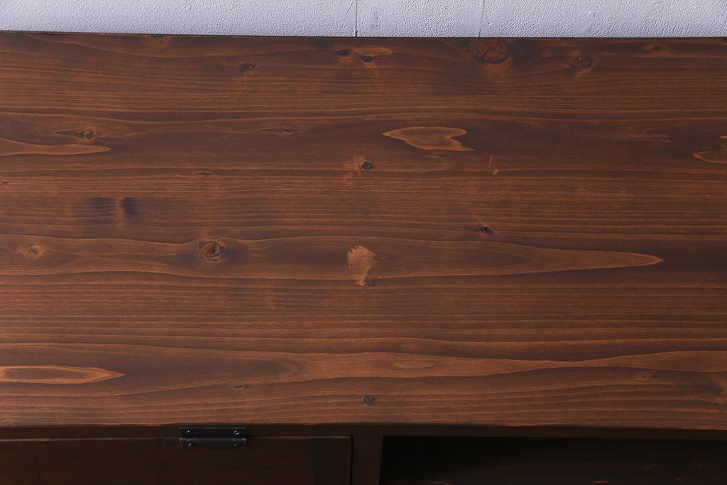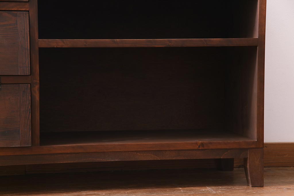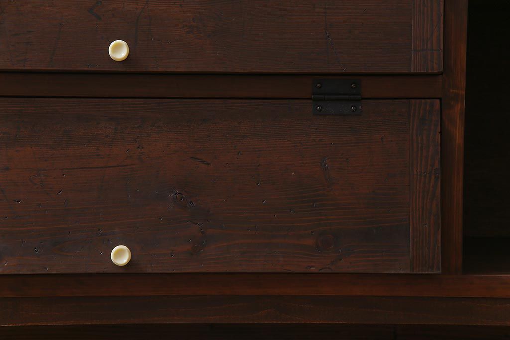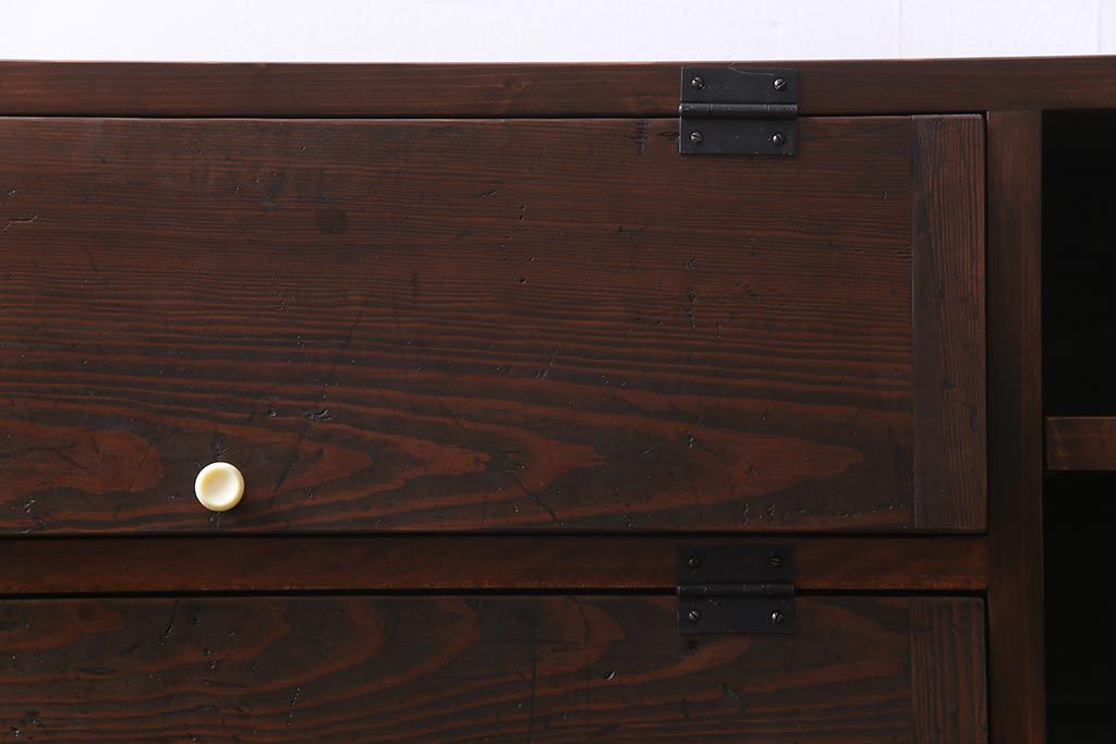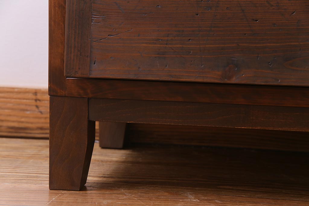 ラフジュ工房オリジナル リメイク家具 脚付き 明治期の松材が味わい深いパタパタ扉のリビングボード(下駄箱、収納棚、サイドボード)(1)
