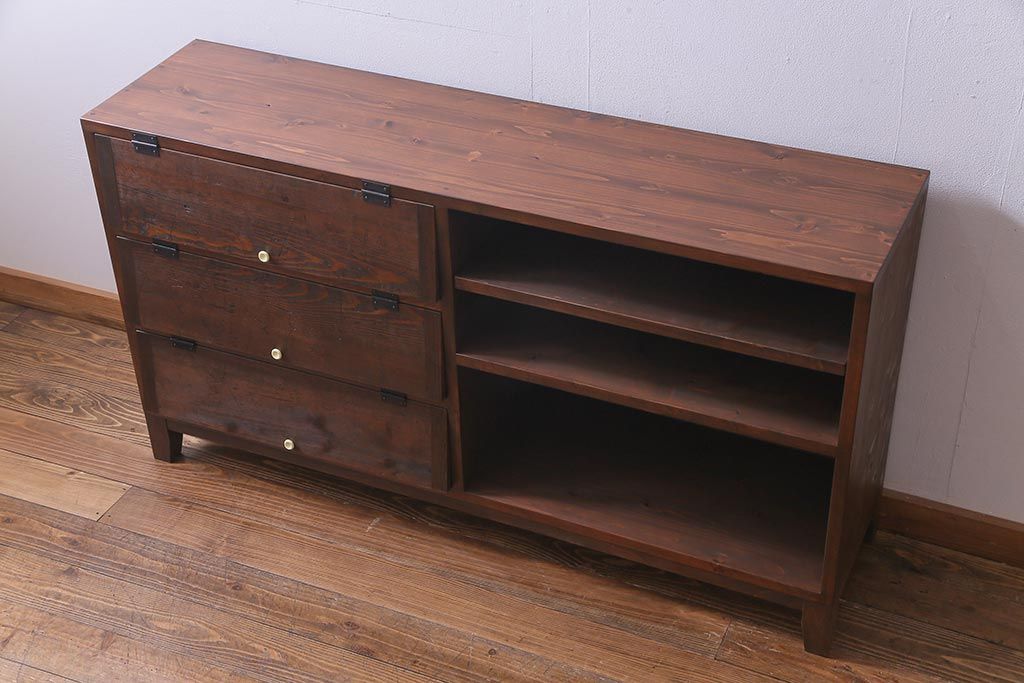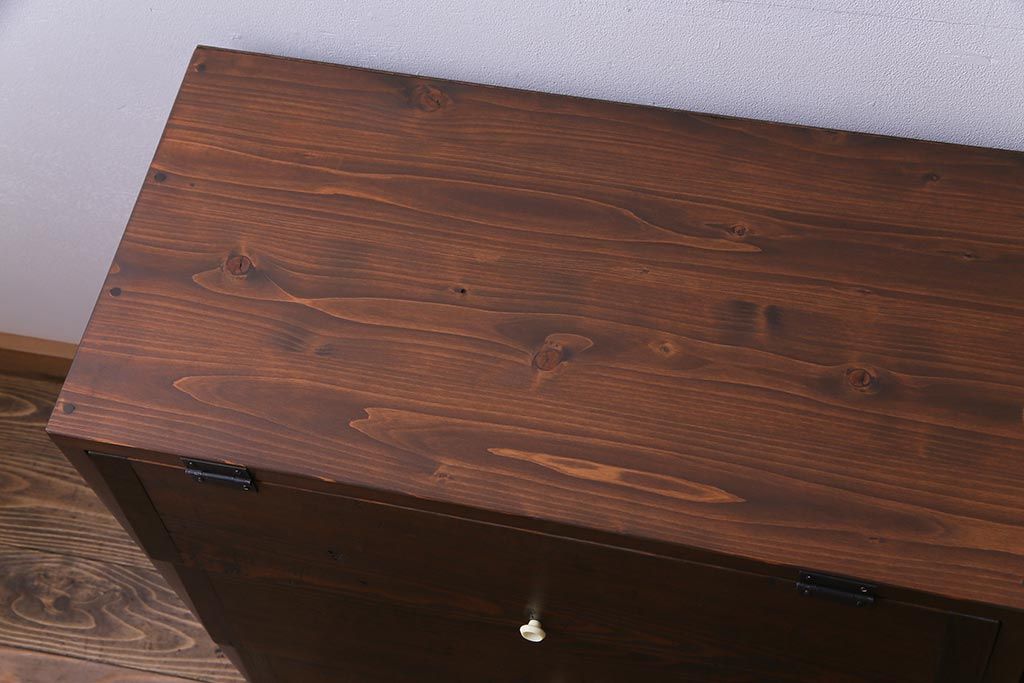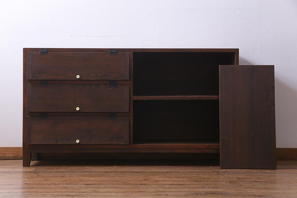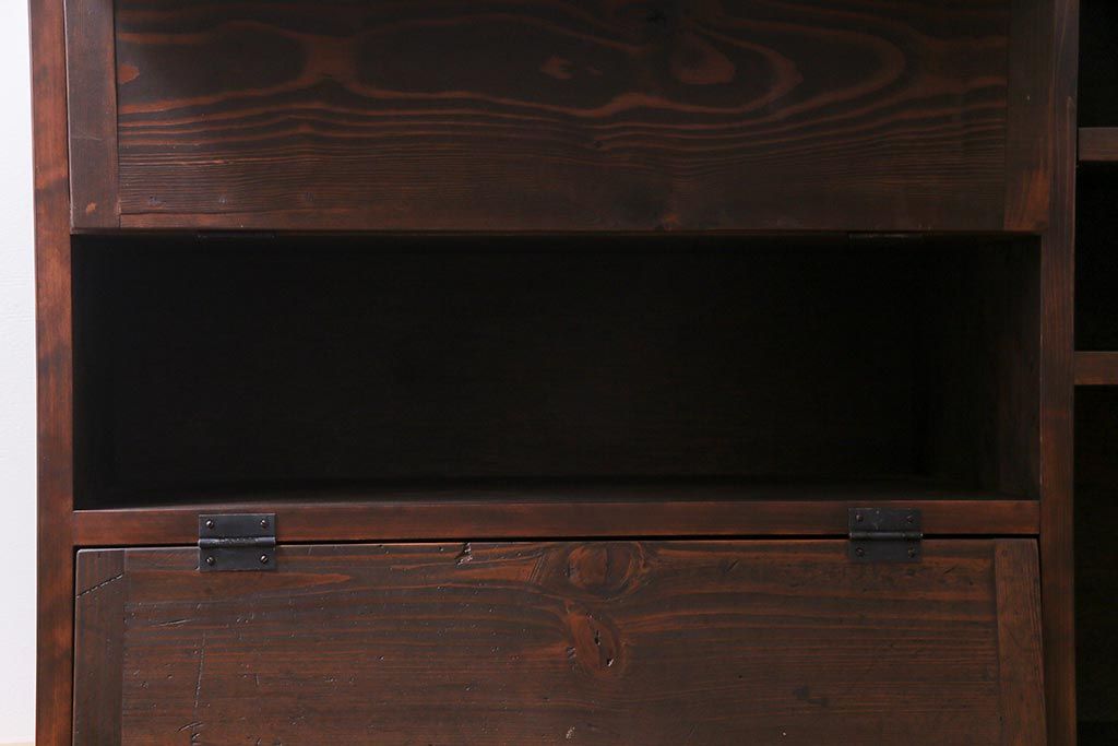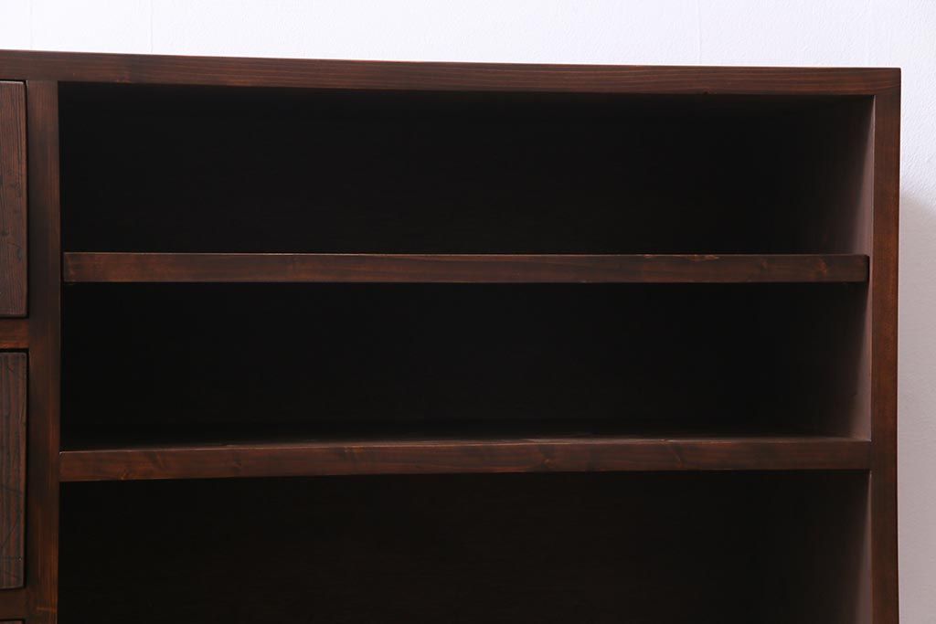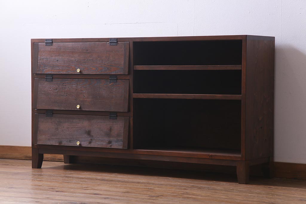 ラフジュ工房オリジナル リメイク家具 脚付き 明治期の松材が味わい深いパタパタ扉のリビングボード(下駄箱、収納棚、サイドボード)(1)