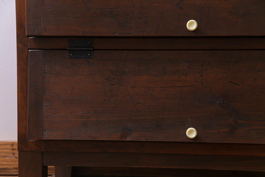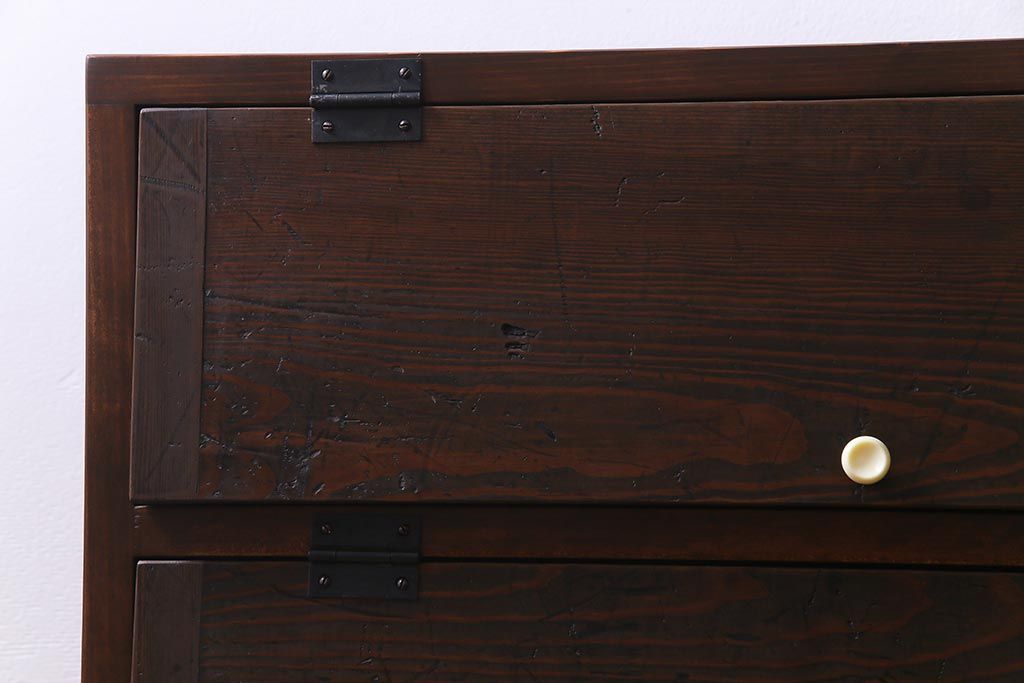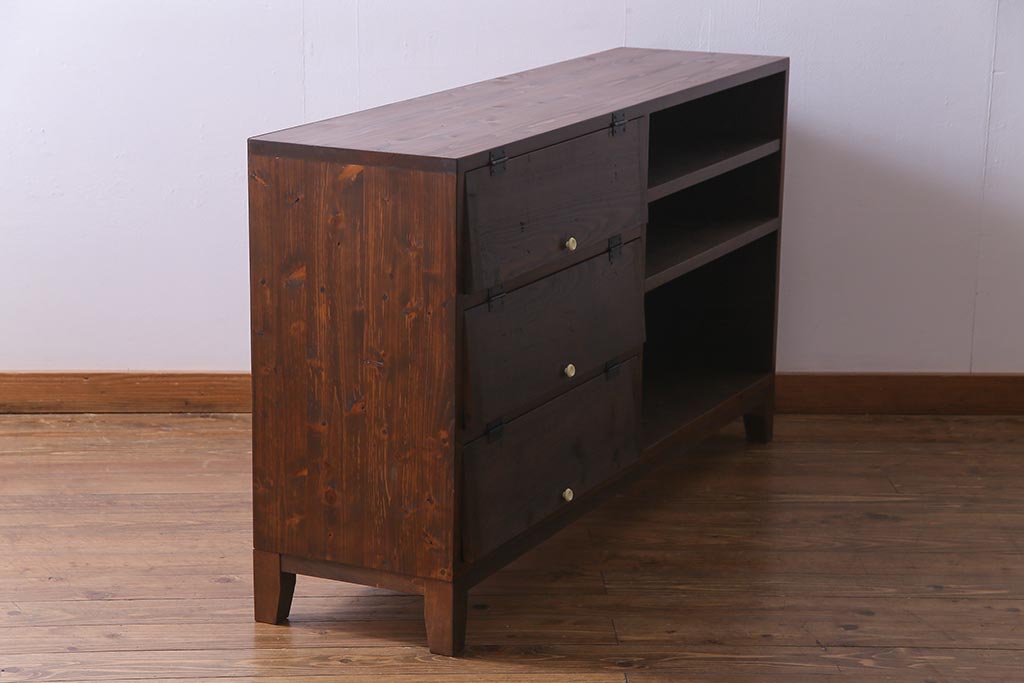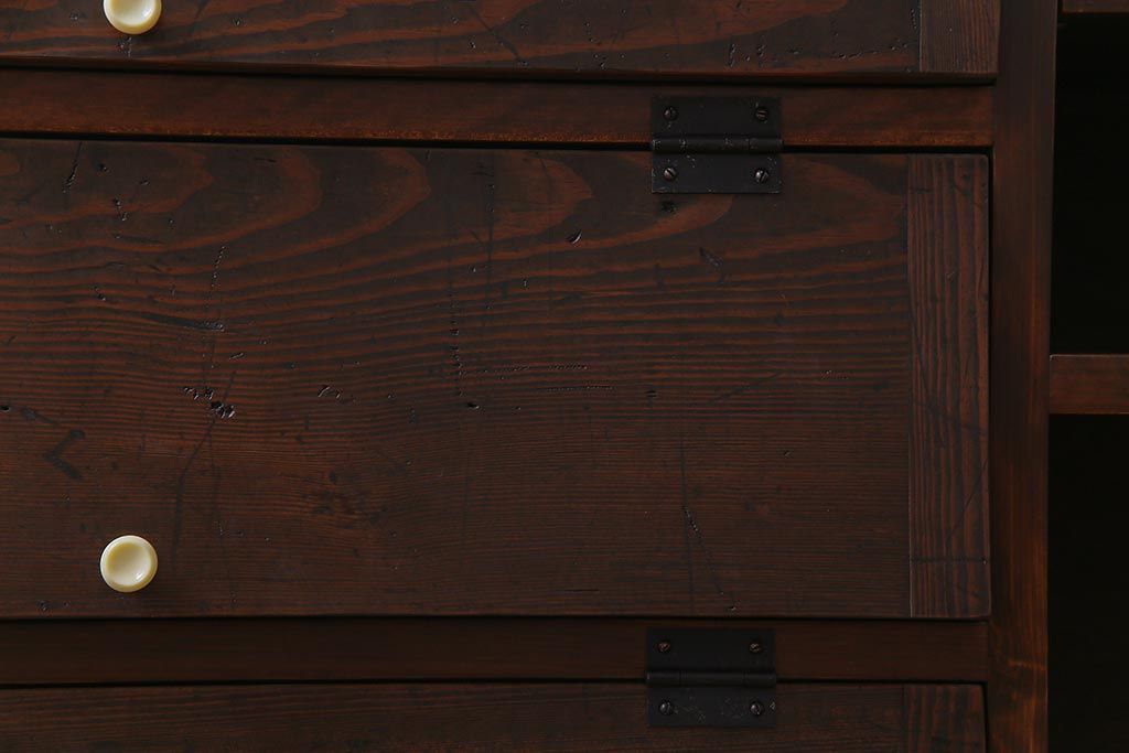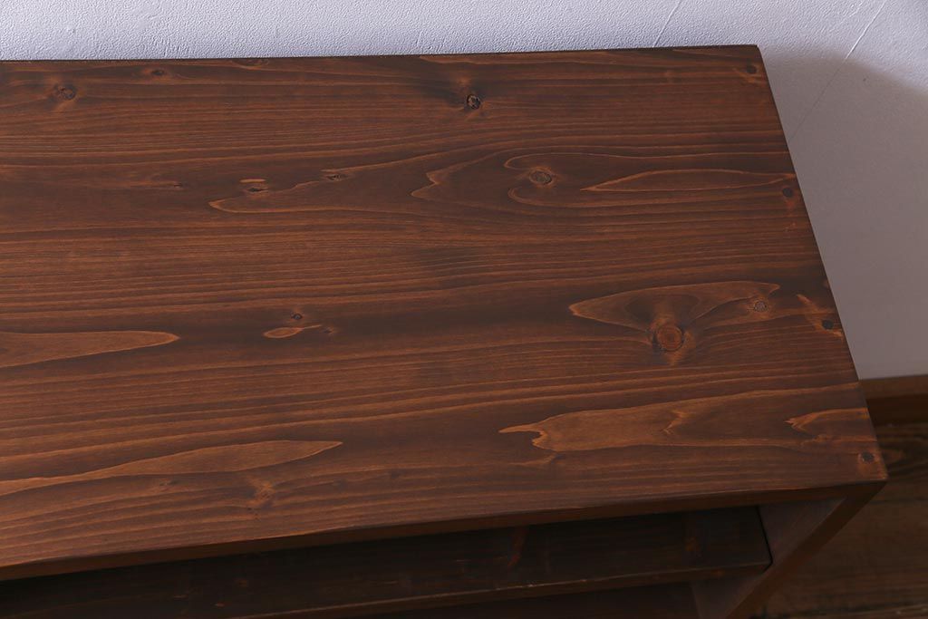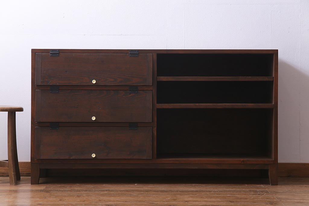 ラフジュ工房オリジナル リメイク家具 脚付き 明治期の松材が味わい深いパタパタ扉のリビングボード(下駄箱、収納棚、サイドボード)(1)