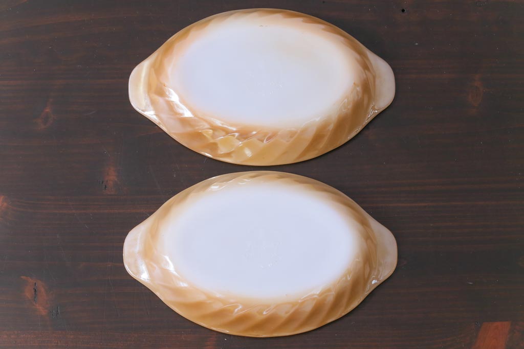 ビンテージ ファイヤーキング(FireKing) コッパーティント グラタン皿2枚セット(2)