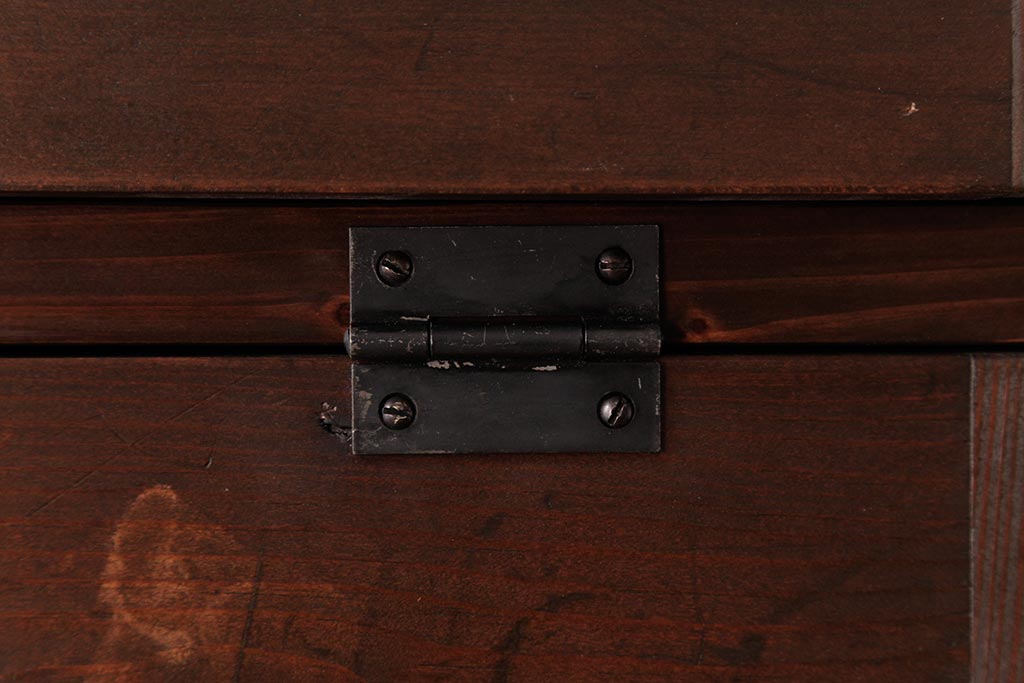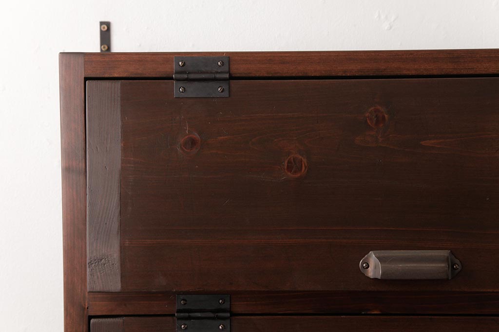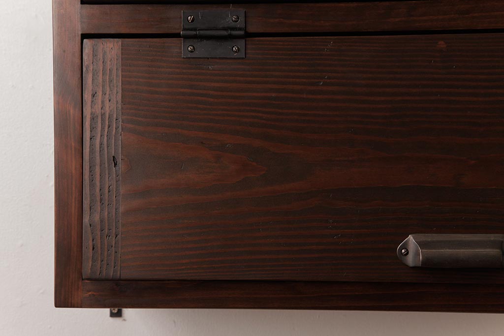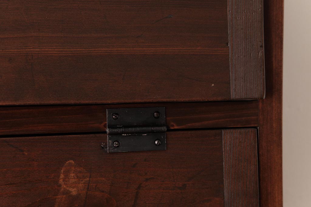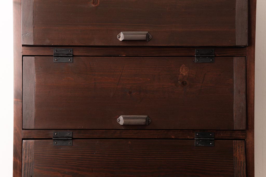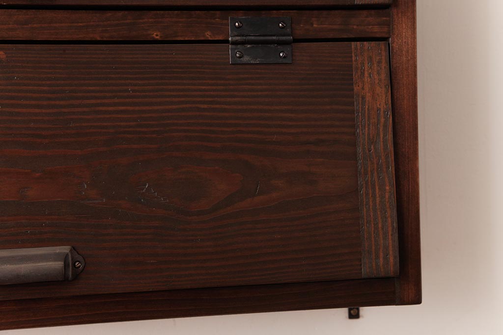 ラフジュ工房オリジナル 古い木の味わいが楽しめるパタパタ扉の壁掛け収納棚(ウォールシェルフ)(1)です。