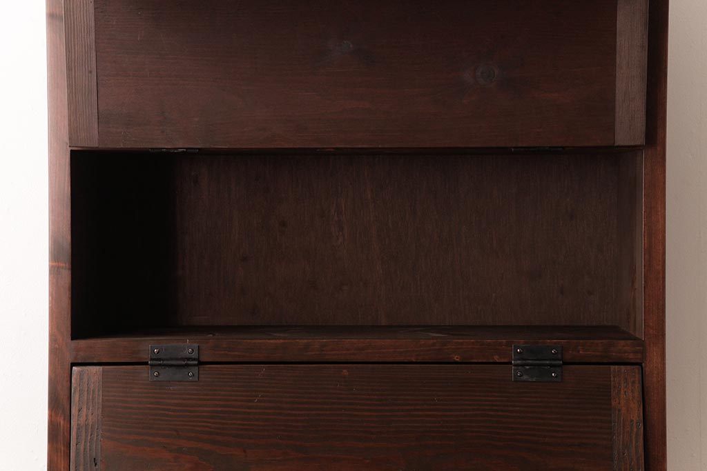 ラフジュ工房オリジナル 古い木の味わいが楽しめるパタパタ扉の壁掛け収納棚(ウォールシェルフ)(1)